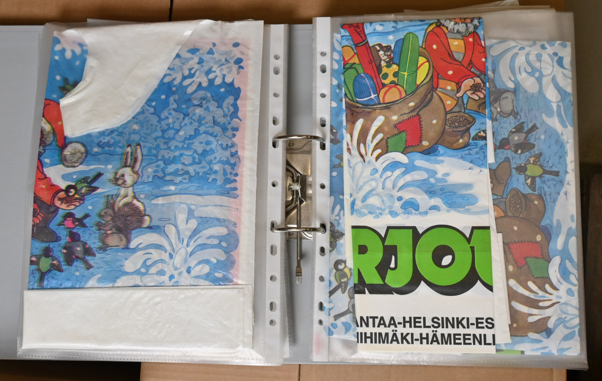 Marjaliisa Pitkäranta iso kokoelma 33 kansiossa + kirjoja, julisteita, kangasmerkkejä, etikettejä ym. Valtava kokonaisuus! Yhteensä yli 100 KG!!!