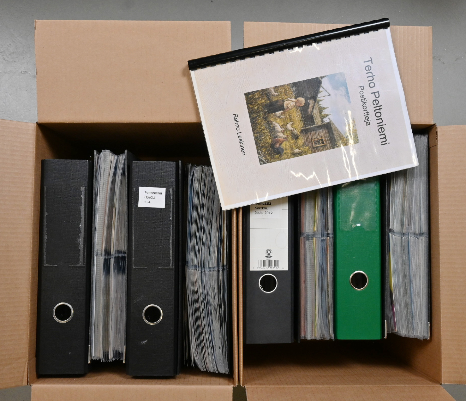 Terho Peltoniemi kokoelma kahdeksassa kansiossa + luettelo yht. noin 18 KG! Paljon materiaalia!