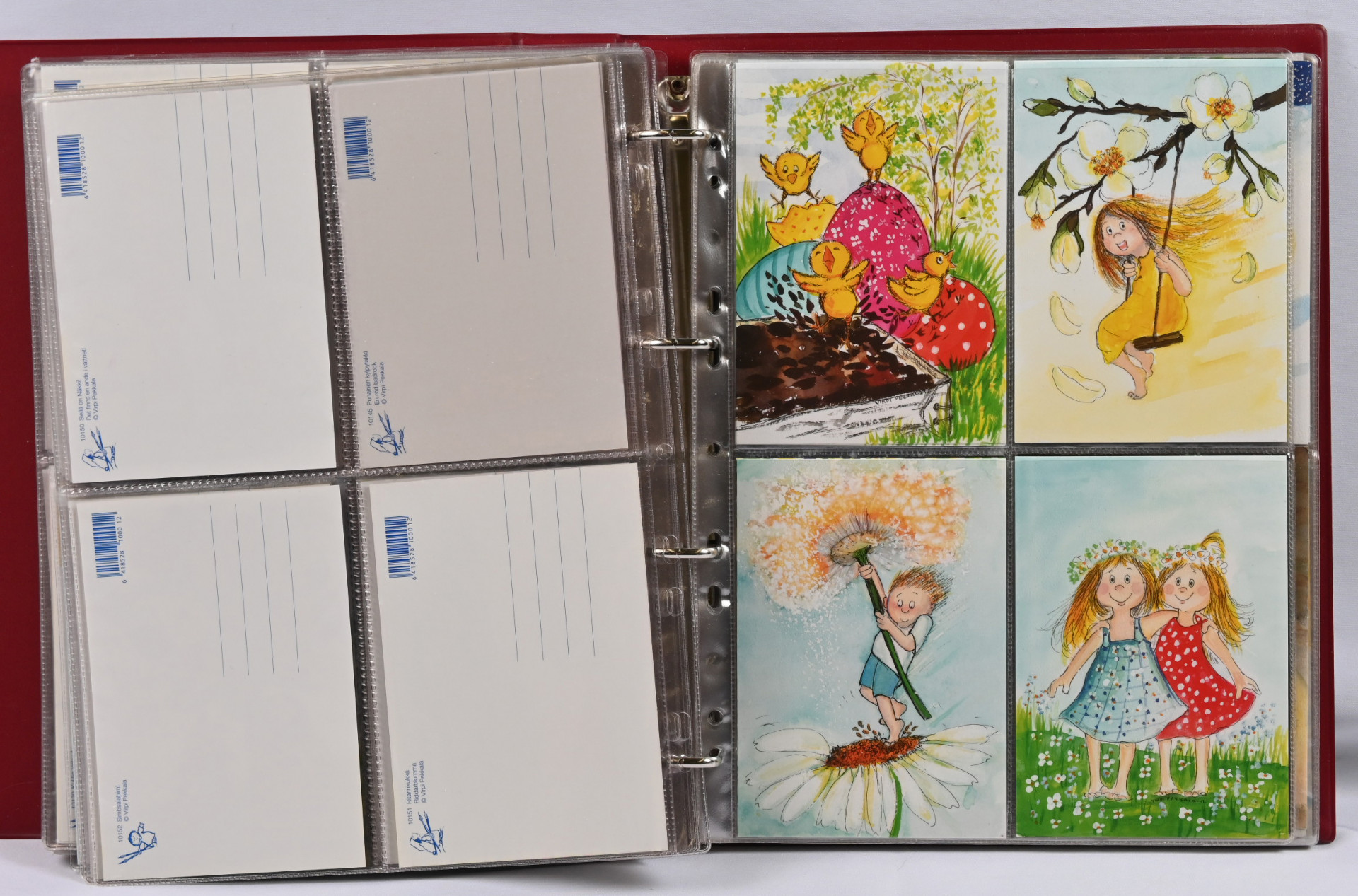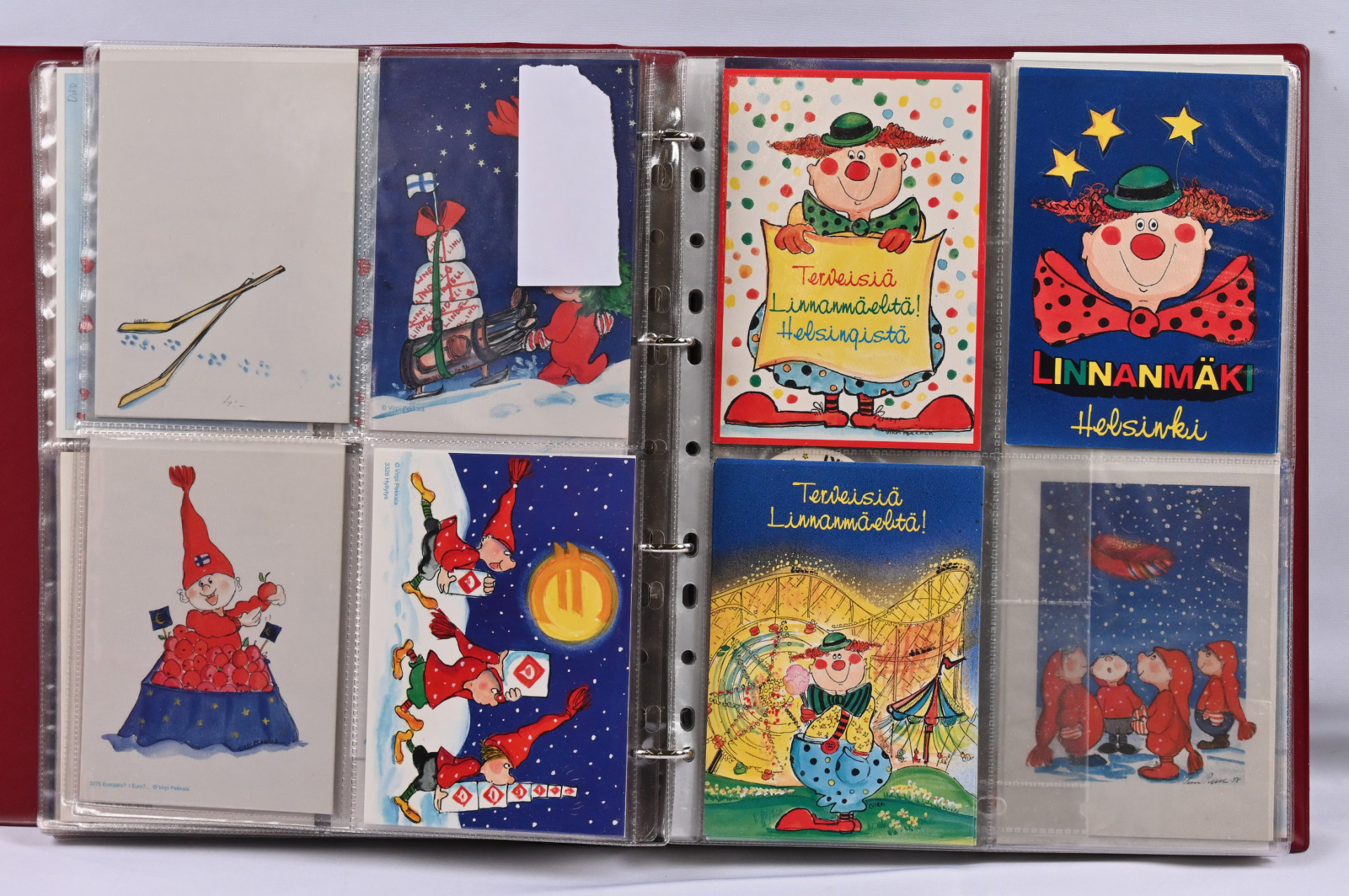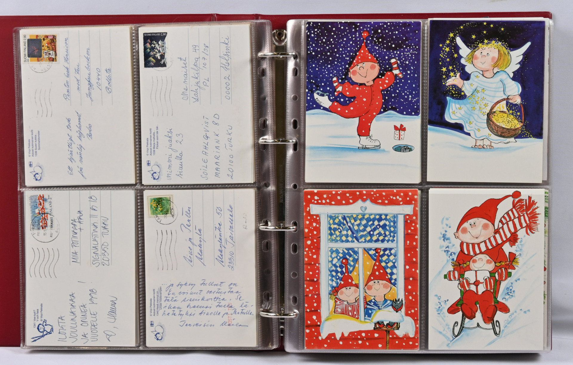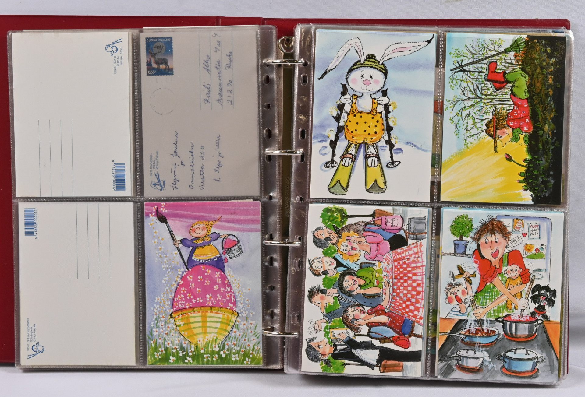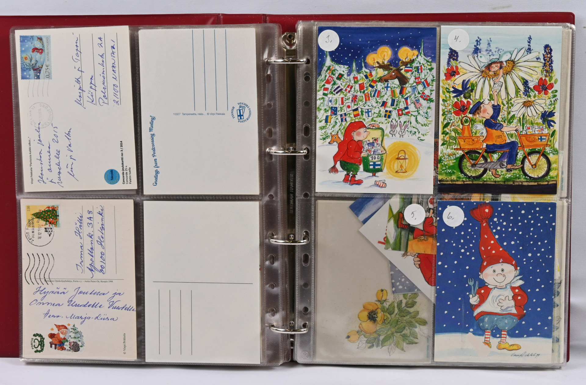 Virpi Pekkala kokoelma 13 kansiossa. Satoja ja satoja kortteja, lisäksi kolme luetteloa kyseisistä korteista