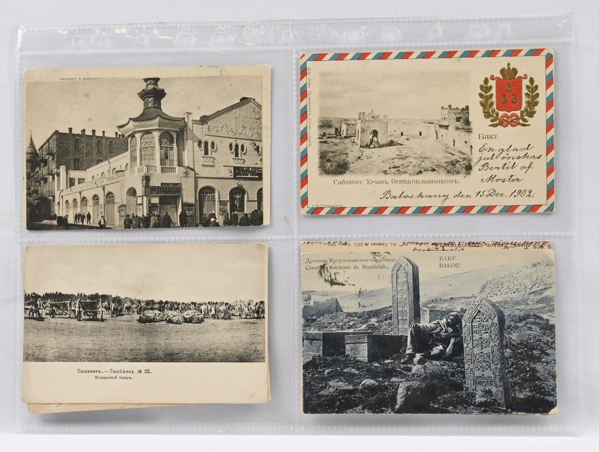 Venäjä, mielenkiintoinen pieni korttierä eri alueilta: Baku (6 kappaletta), Taskent (9), Tbilisi (7), Samarkand (9) ja Buhara (1). Yhteensä 32 korttia. Vaihteleva laatu