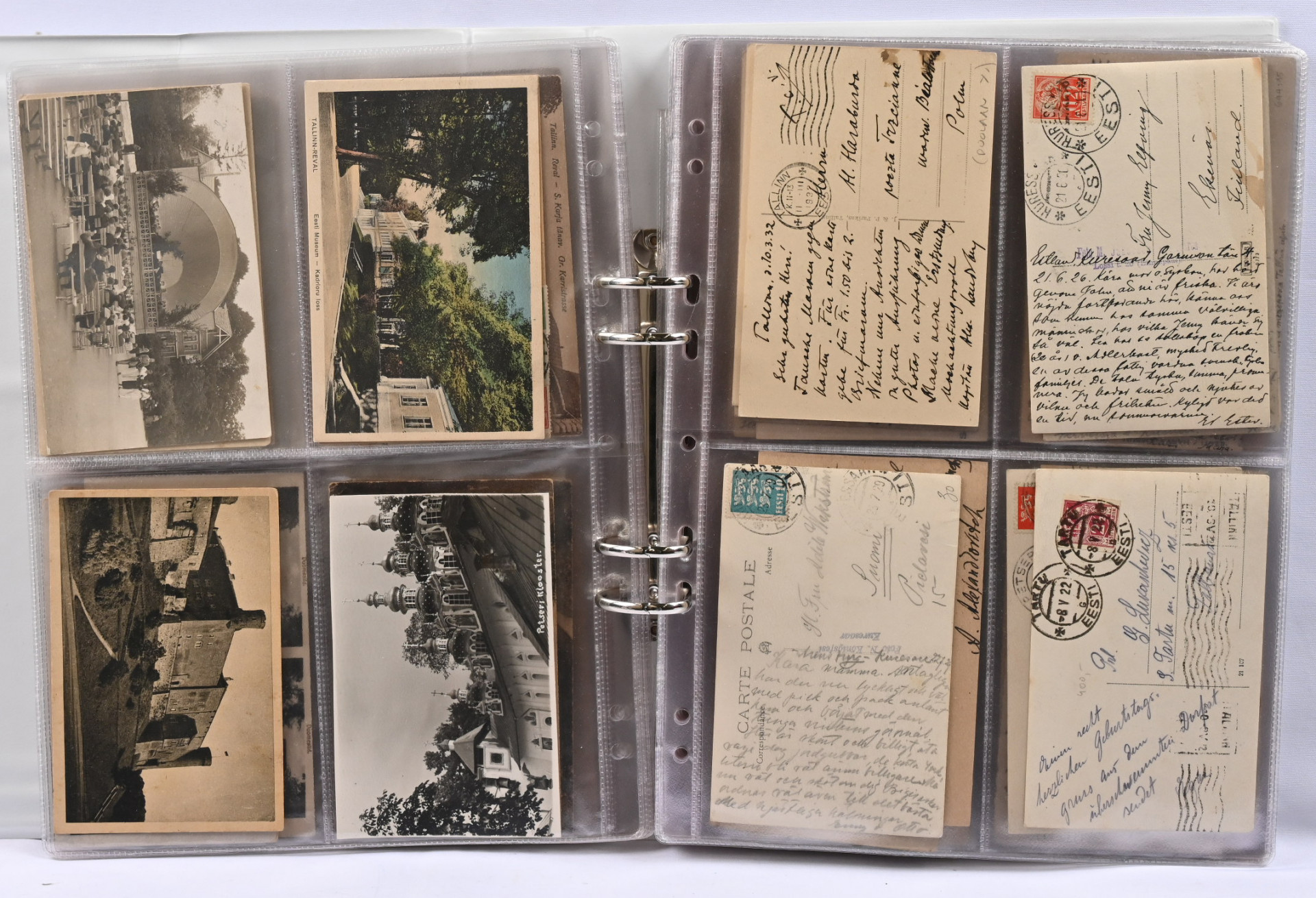 Viro, vanhoja paikkakuntakortteja kansiossa noin 140 kappaletta, vaihteleva laatu