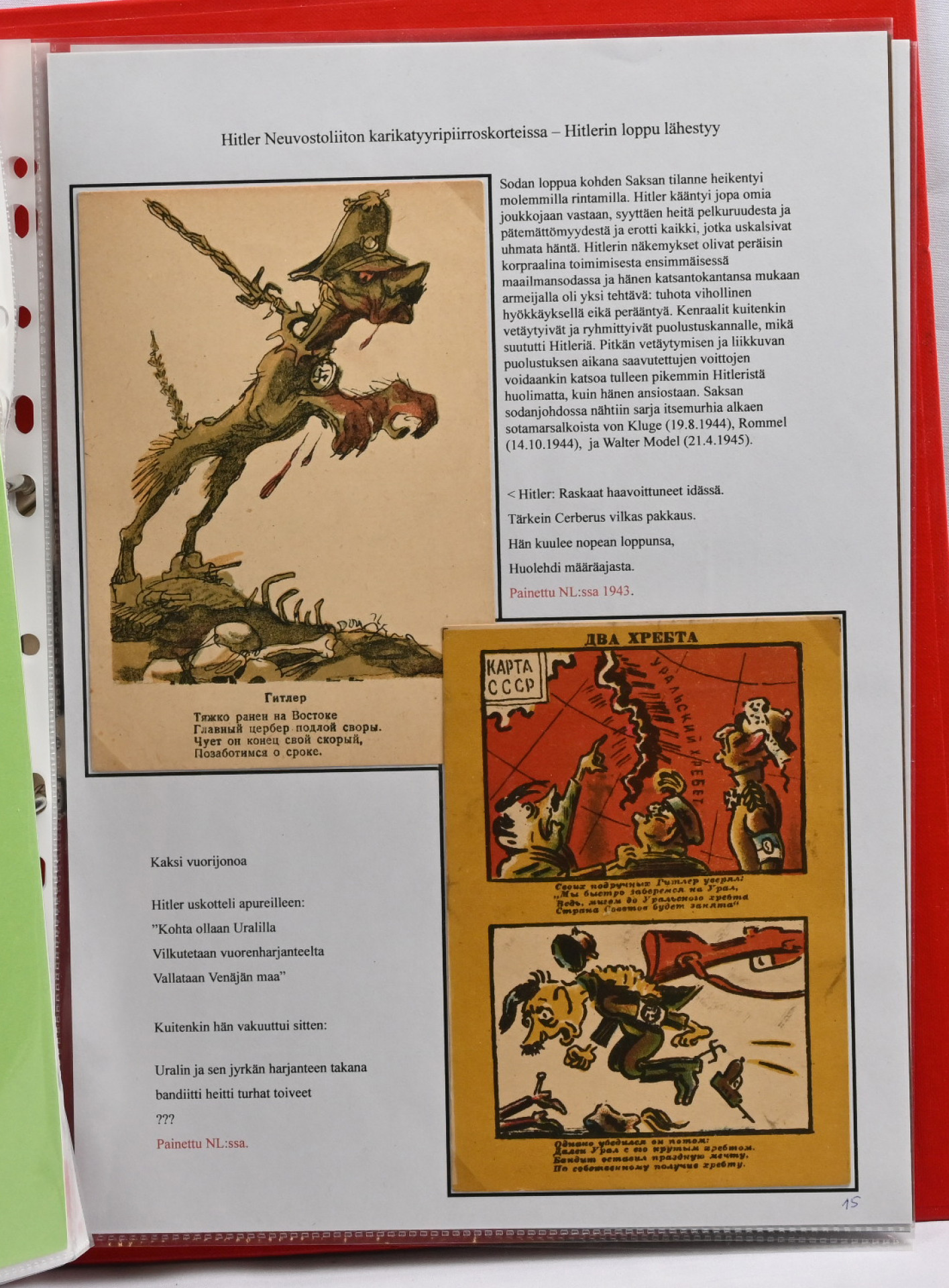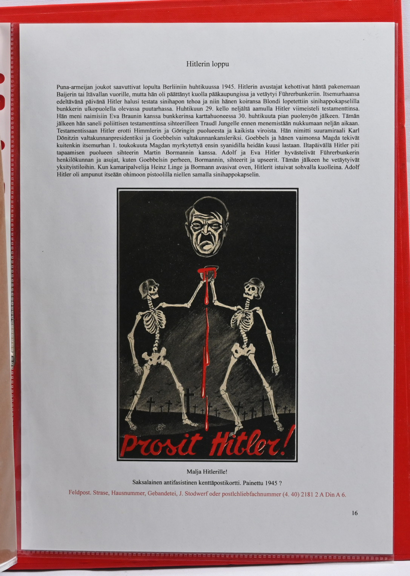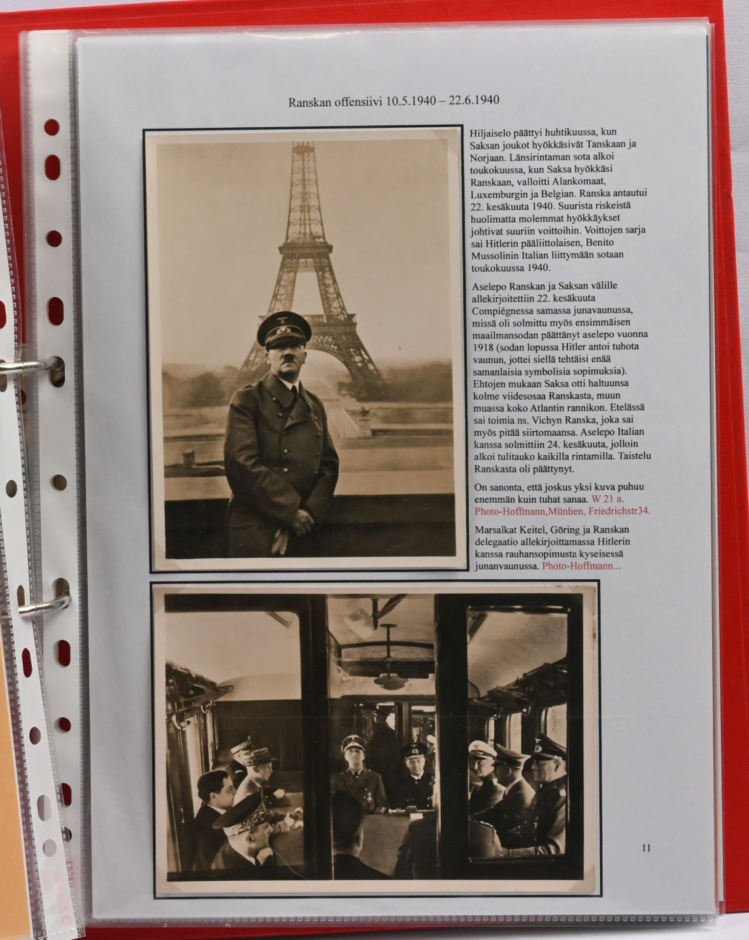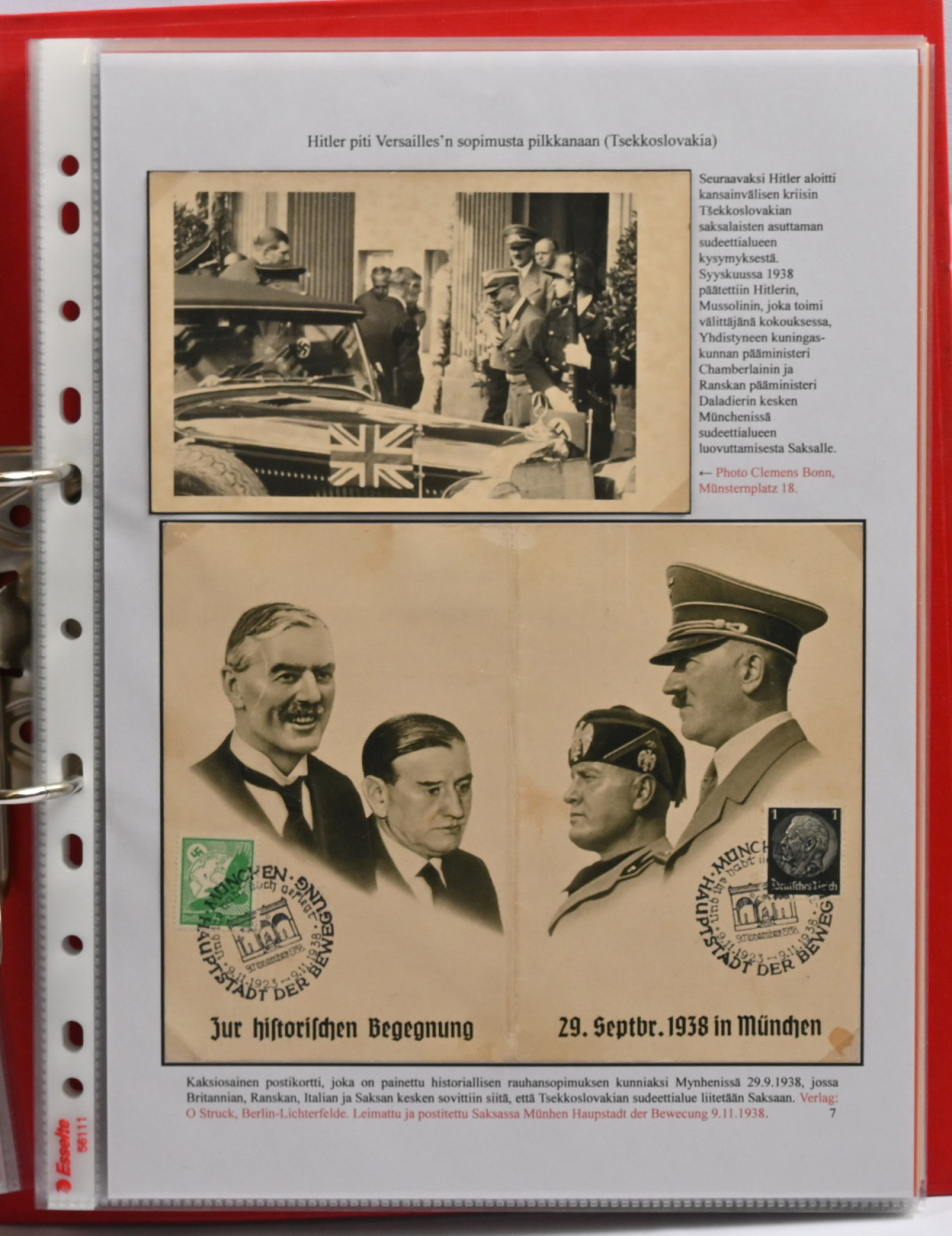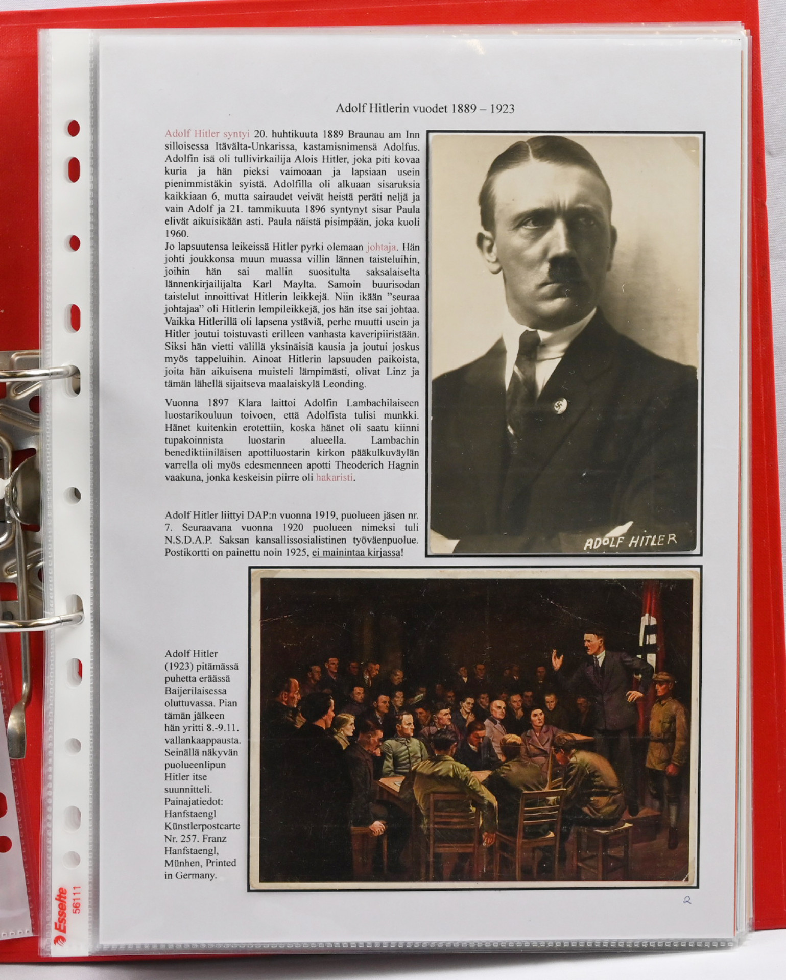 Adolf Hitler postikorteissa. Hieno yhden kehyksen (16 sivua) korttiasiantuntijan laatima näyttelykokoelma runsain, seikkaperäisin selityksin. 30 hienokuntoista korttia, joukossa harvinaisuuksia!