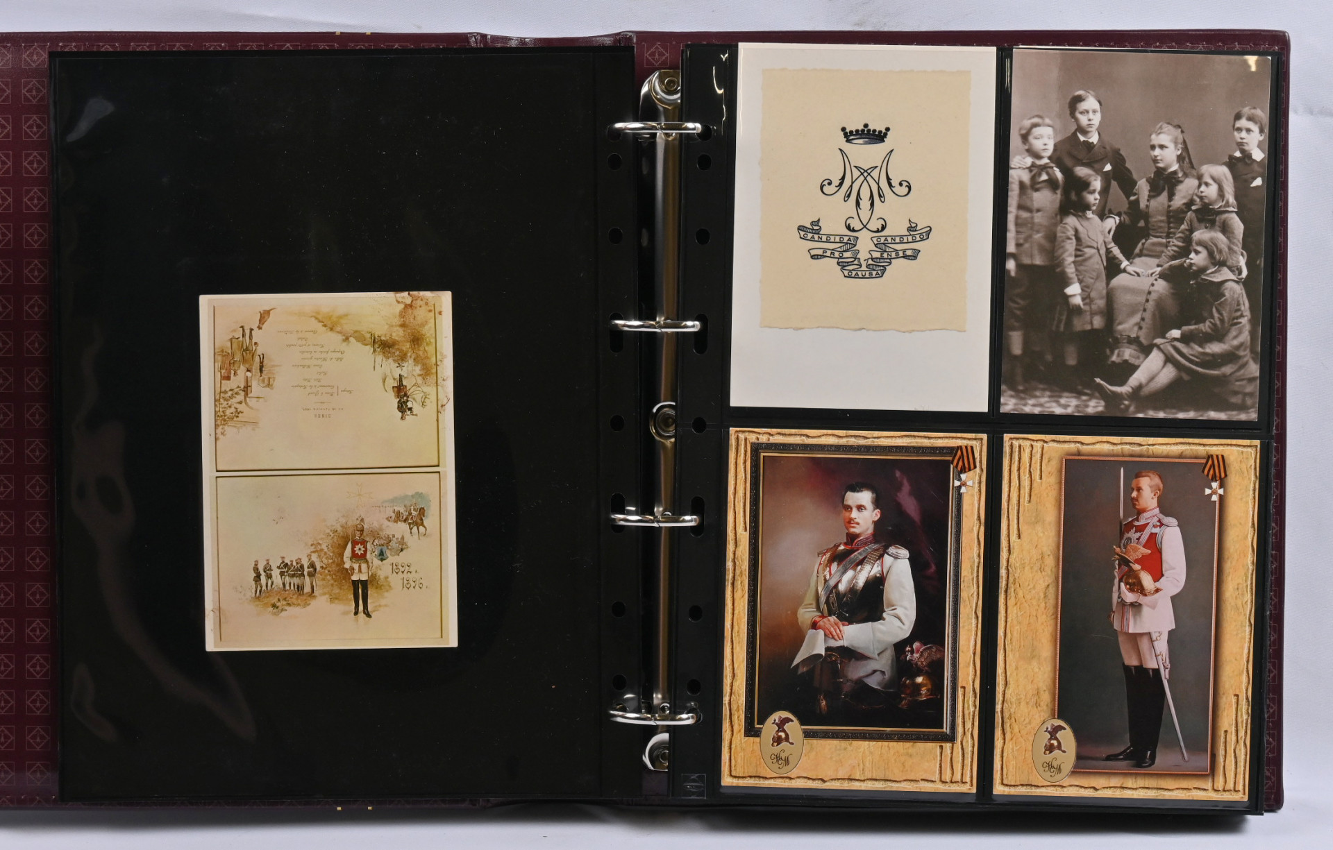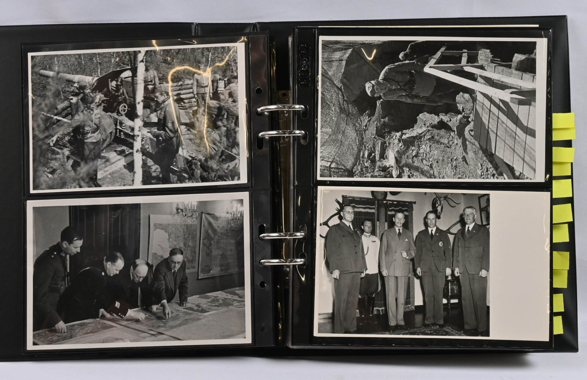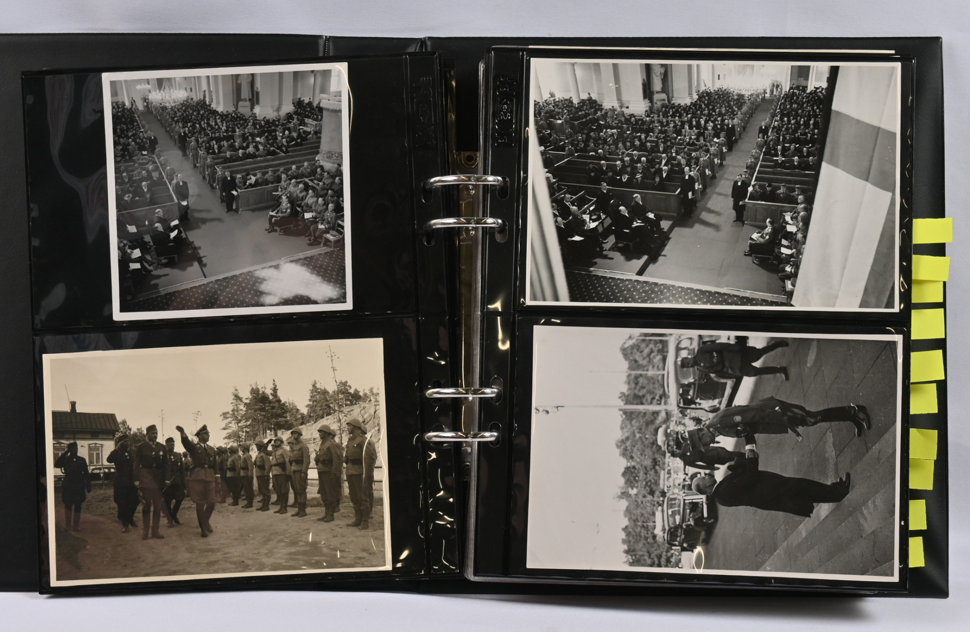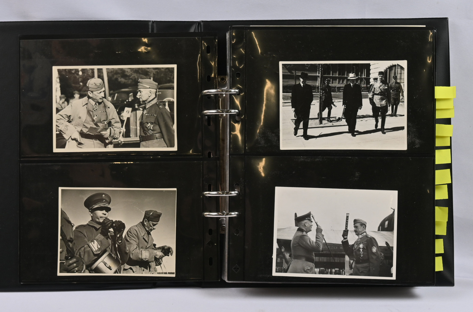 Mannerheim, erittäin hyvä materiaalia lähinnä postikortteja ja valokuvia kahdessa kansiossa. Toisessa kansiosa yli 20 vanhaa valokuvaa sekä uudistuotantoa, nimikirjoitus kortilla 1944, postikortteja, mm. venäläinen karikatyyrikortti (tahraa), filateliakohteita suomesta ja USA:sta ja vähän muutakin materiaalia. Toisessa kansiossa korttikokoelma, jossa yli 60 erilaista lähinnä modernia / uusintapainamakorttia