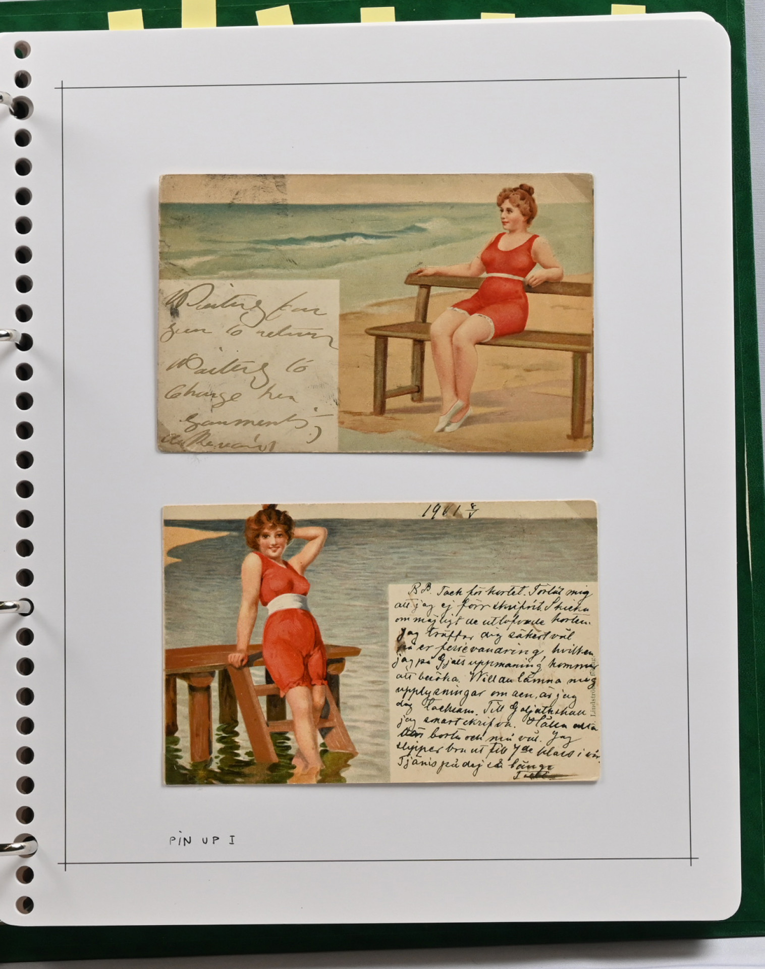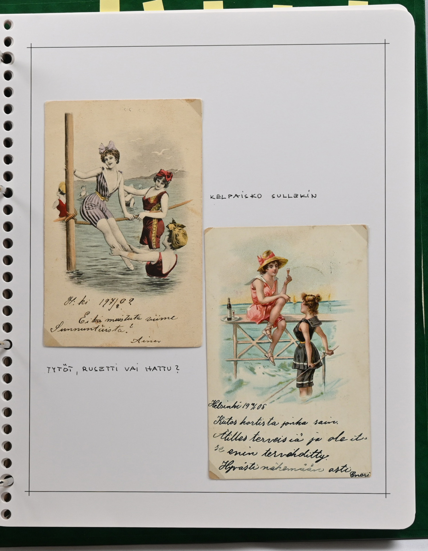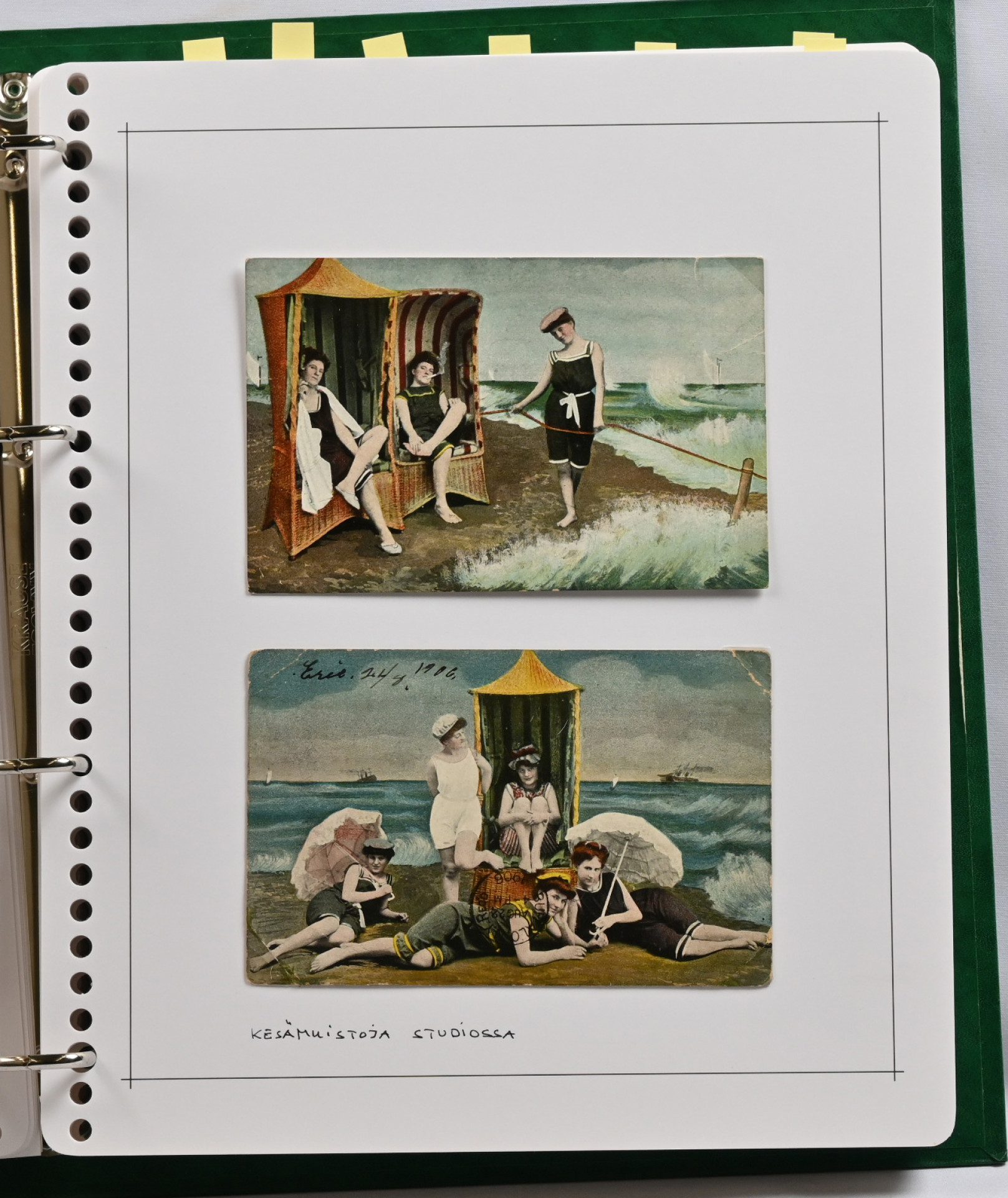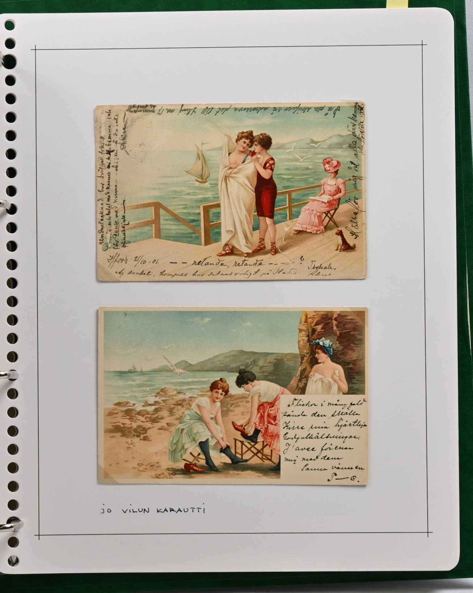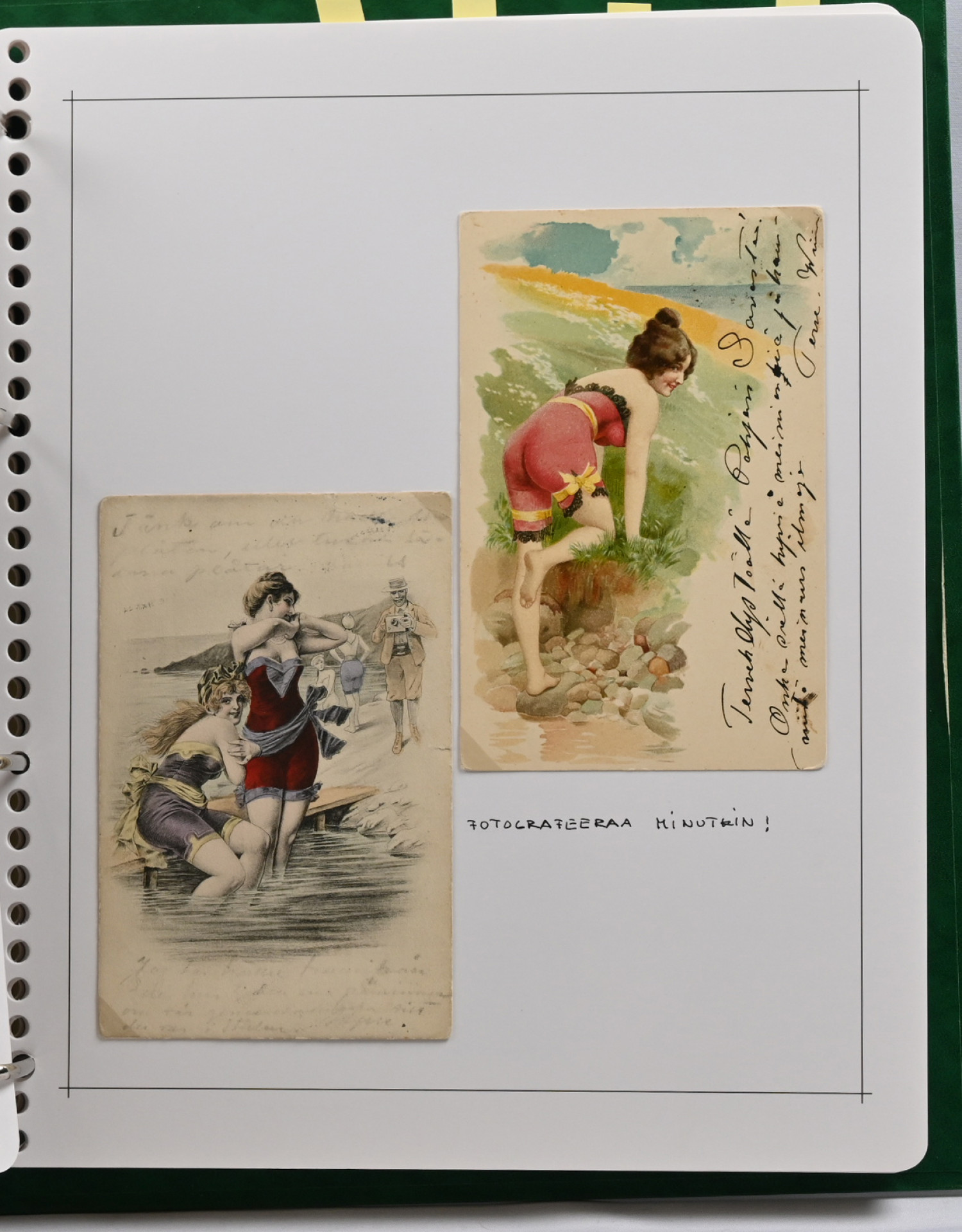 Naisia ym rannalla hieno kokoelma montteerattuna sivuille kansiossa vain vanhaa materiaalia yli 60 korttia