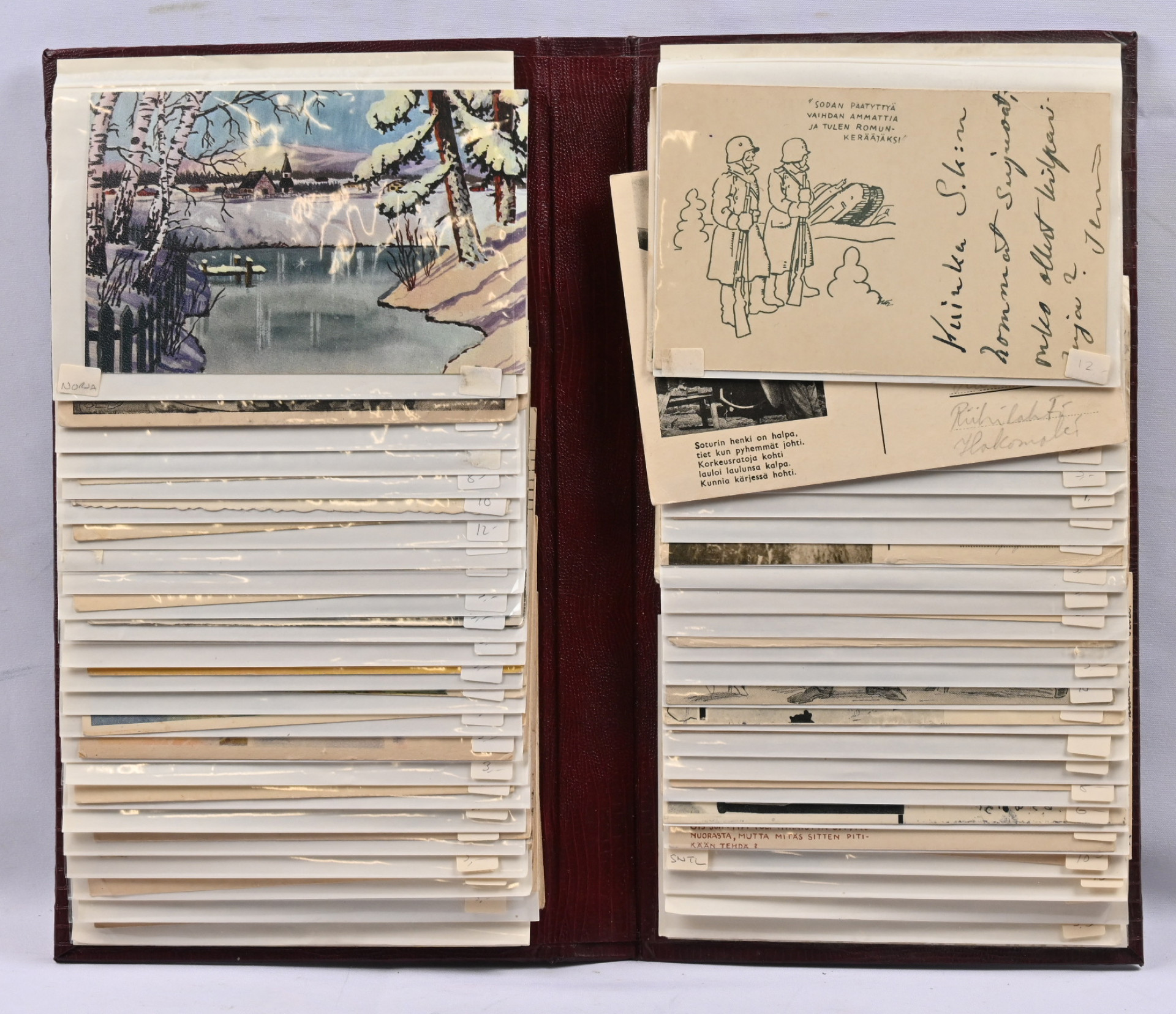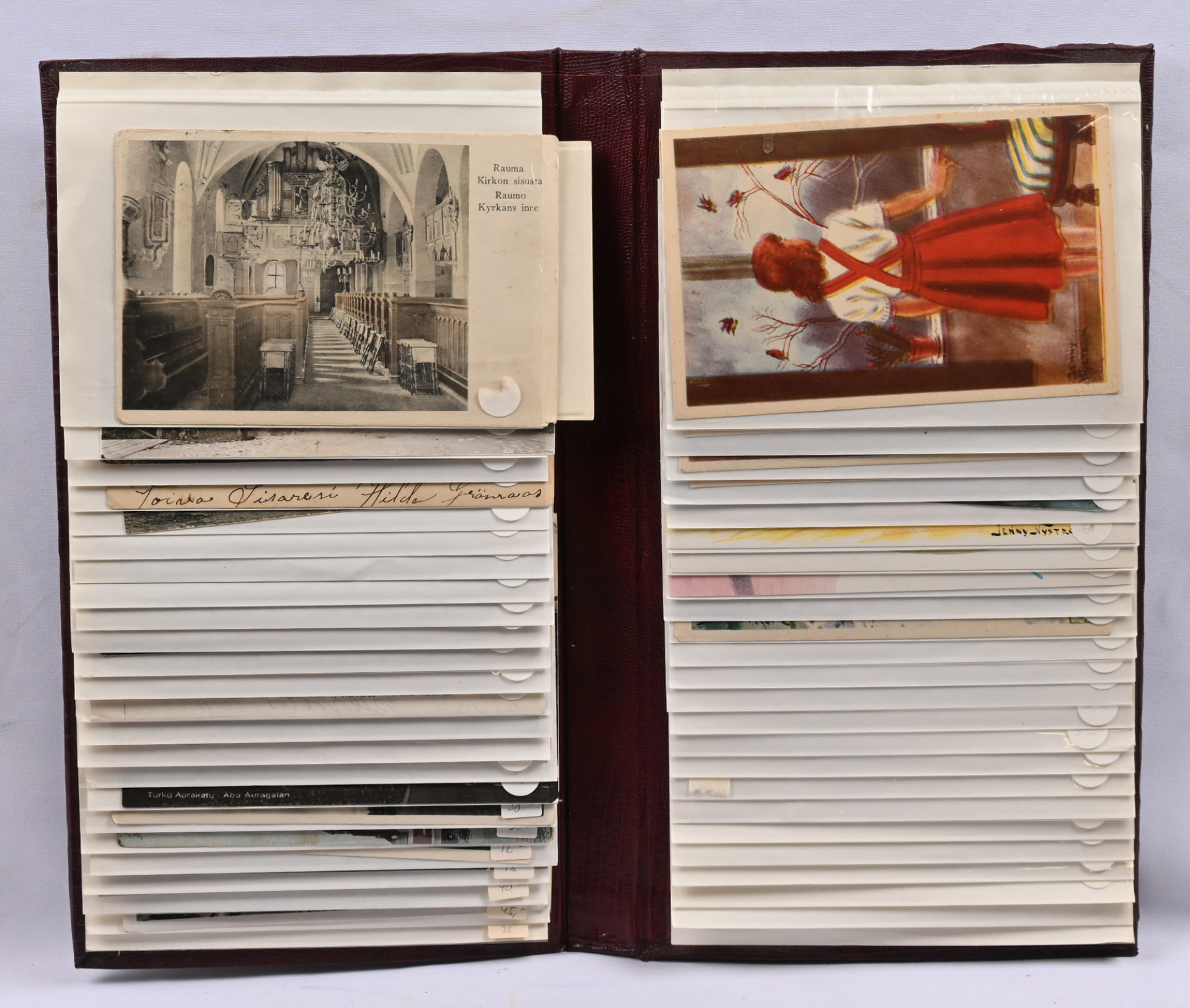 Paikkakunta, taiteilija ym kortteja erä viidessä mapissa