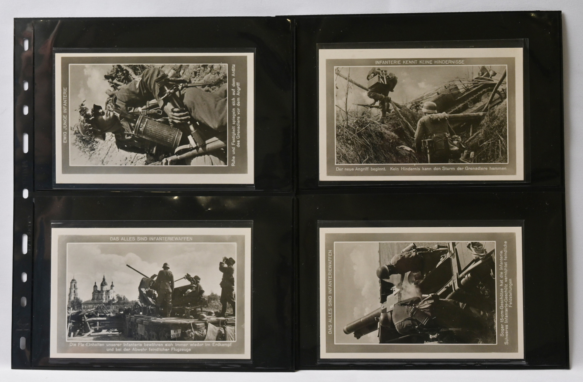 Saksalaisia ”Infanterie” (jalkaväki) -sarjan käyttämättömiä kortteja 18 erilaista. Virheetön kunto