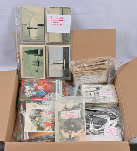 Sekalainen erä suomalaisia ja ulkomaisia kortteja. Vanhaa ja uudempaa. Mm. yli 20 purjeveneisiin ja merenkulkuun liittyvää, paikkakuntakortteja, taiteilijakortteja ym.