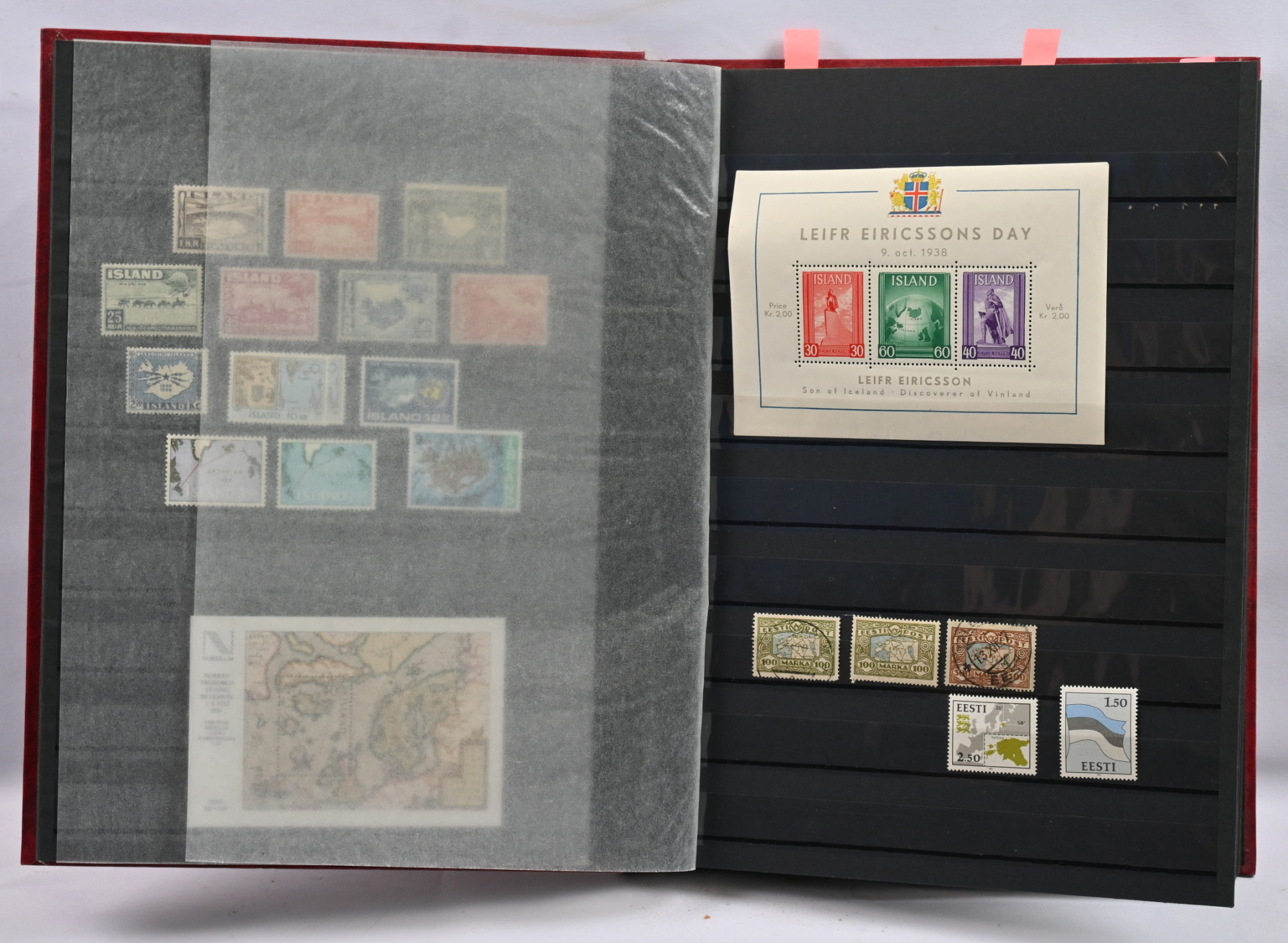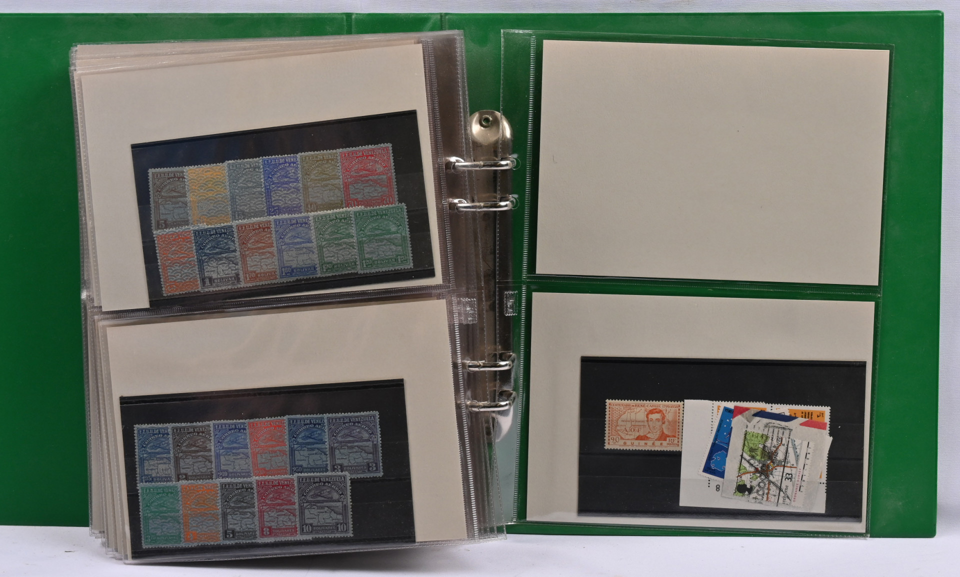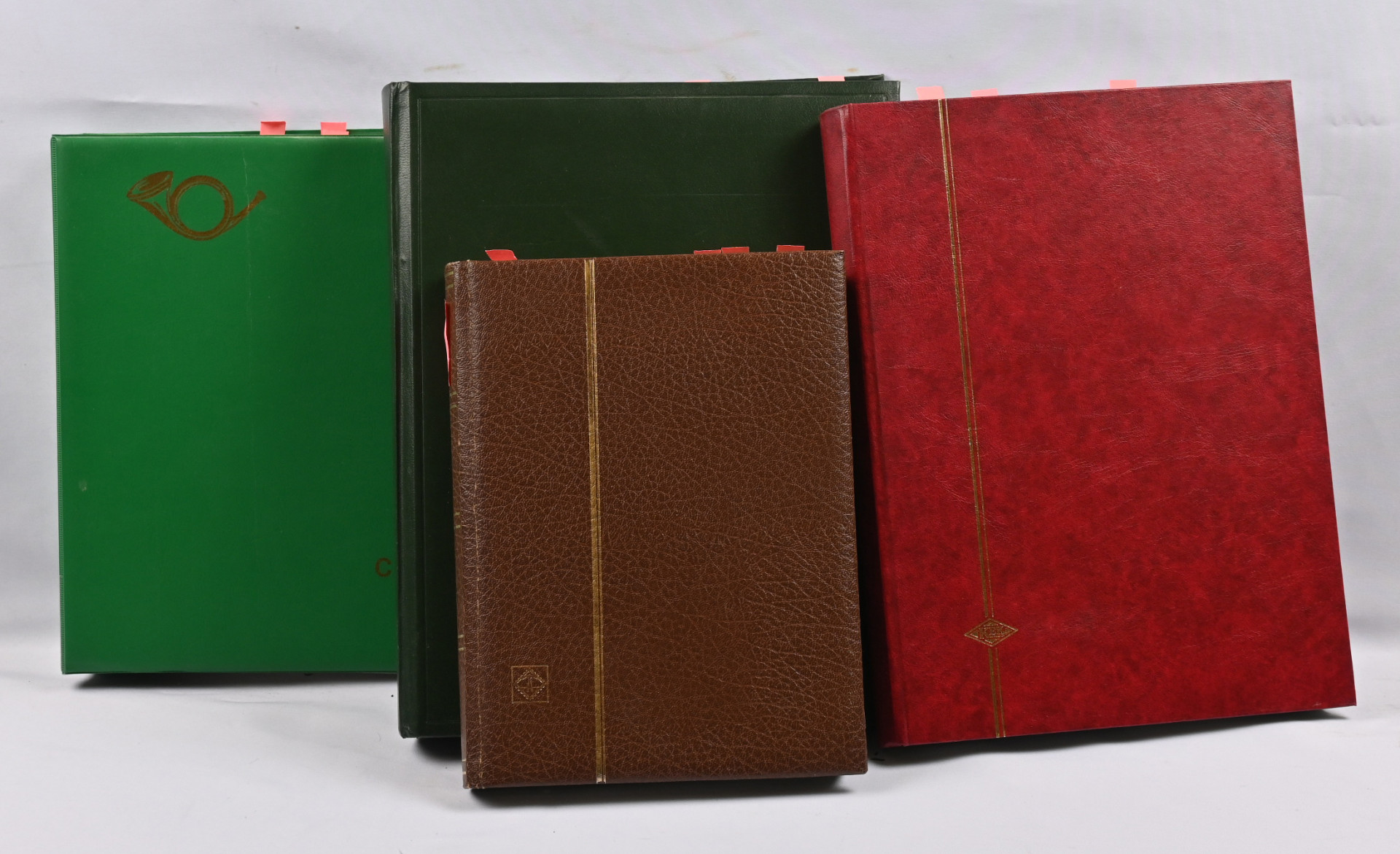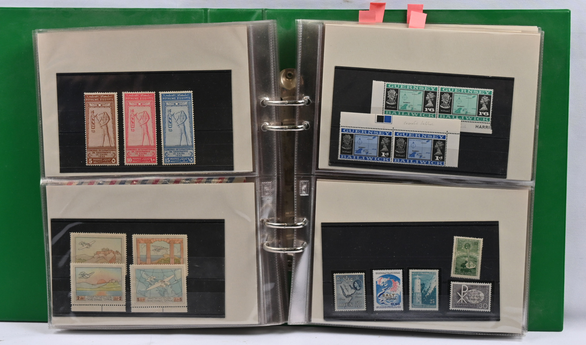 Kartat, mielenkiintoinen materiaali neljässä, osin hyvinkin vajaassa kansiossa / säiliökirjassa. Paljon perusmateriaalia, mutta myös parempia sarjoja, kuten Kreikka Mi 300 - 303 *, Egypti Mi 94-96 *, Norja Fa 181-183 *, lentopostimerkkien sarjoja Etelä-Amerikasta ym