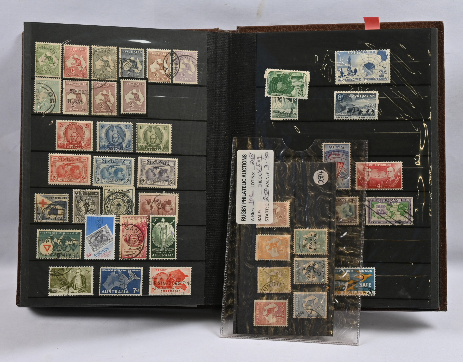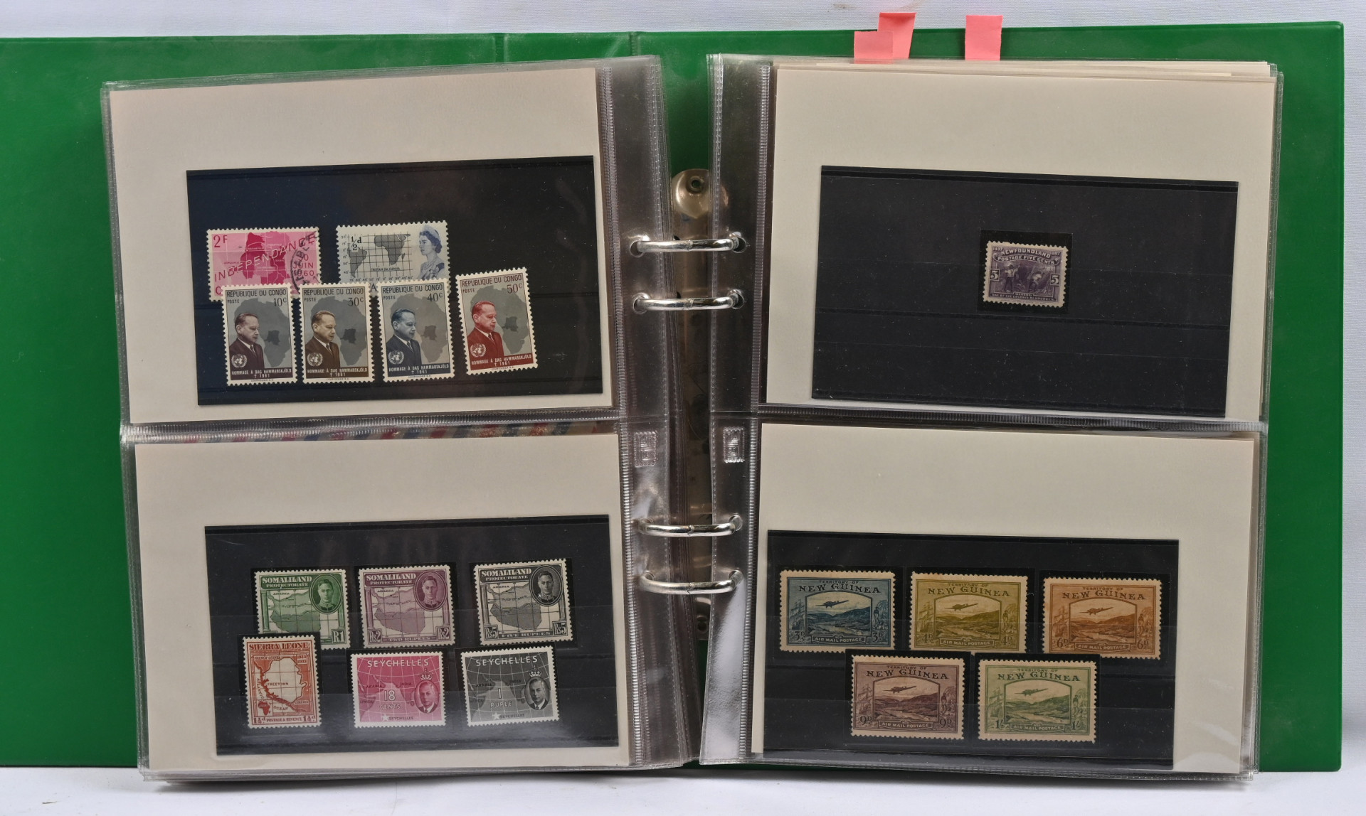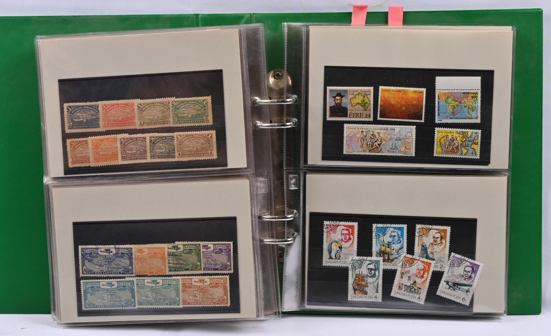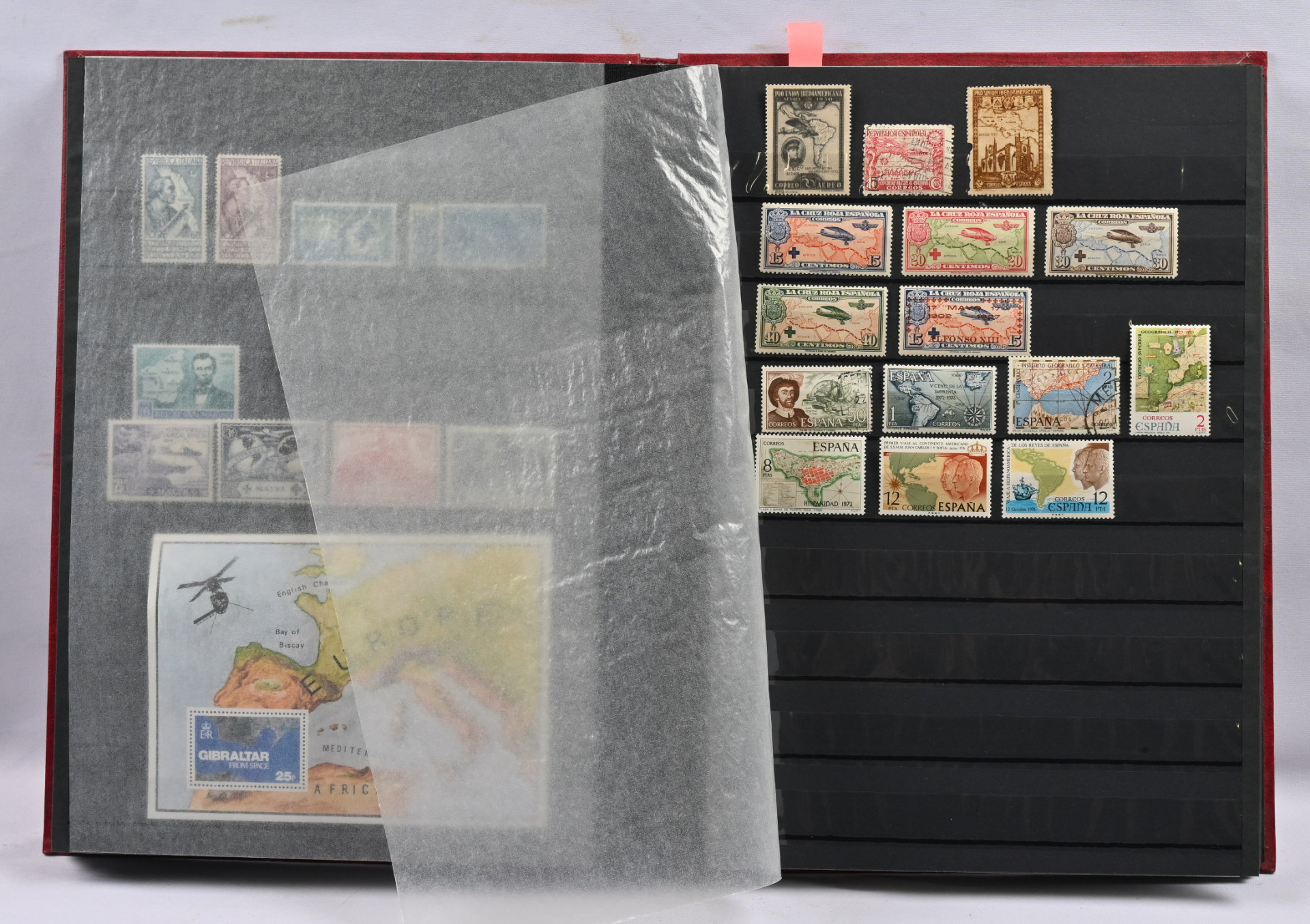 Kartat, mielenkiintoinen materiaali neljässä, osin hyvinkin vajaassa kansiossa / säiliökirjassa. Paljon perusmateriaalia, mutta myös parempia sarjoja, kuten Kreikka Mi 300 - 303 *, Egypti Mi 94-96 *, Norja Fa 181-183 *, lentopostimerkkien sarjoja Etelä-Amerikasta ym