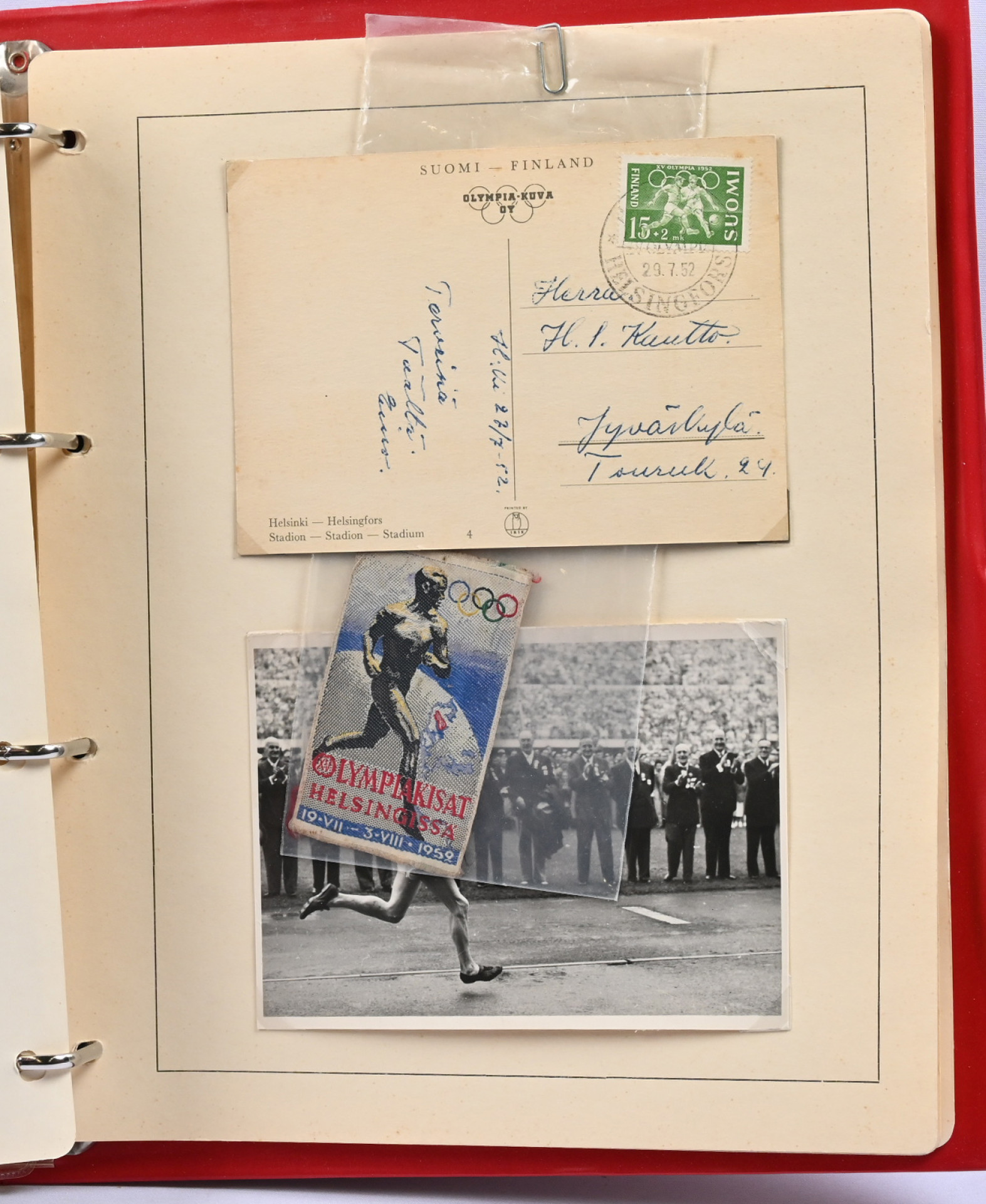 Olympia, mielenkiintoinen aineisto filateliaa ja muutakin mapissa. Mm. 1940 kisojen lippuhinnasto, 1932 kaksi käsiohjelmaa, nimikirjoituksia jne.