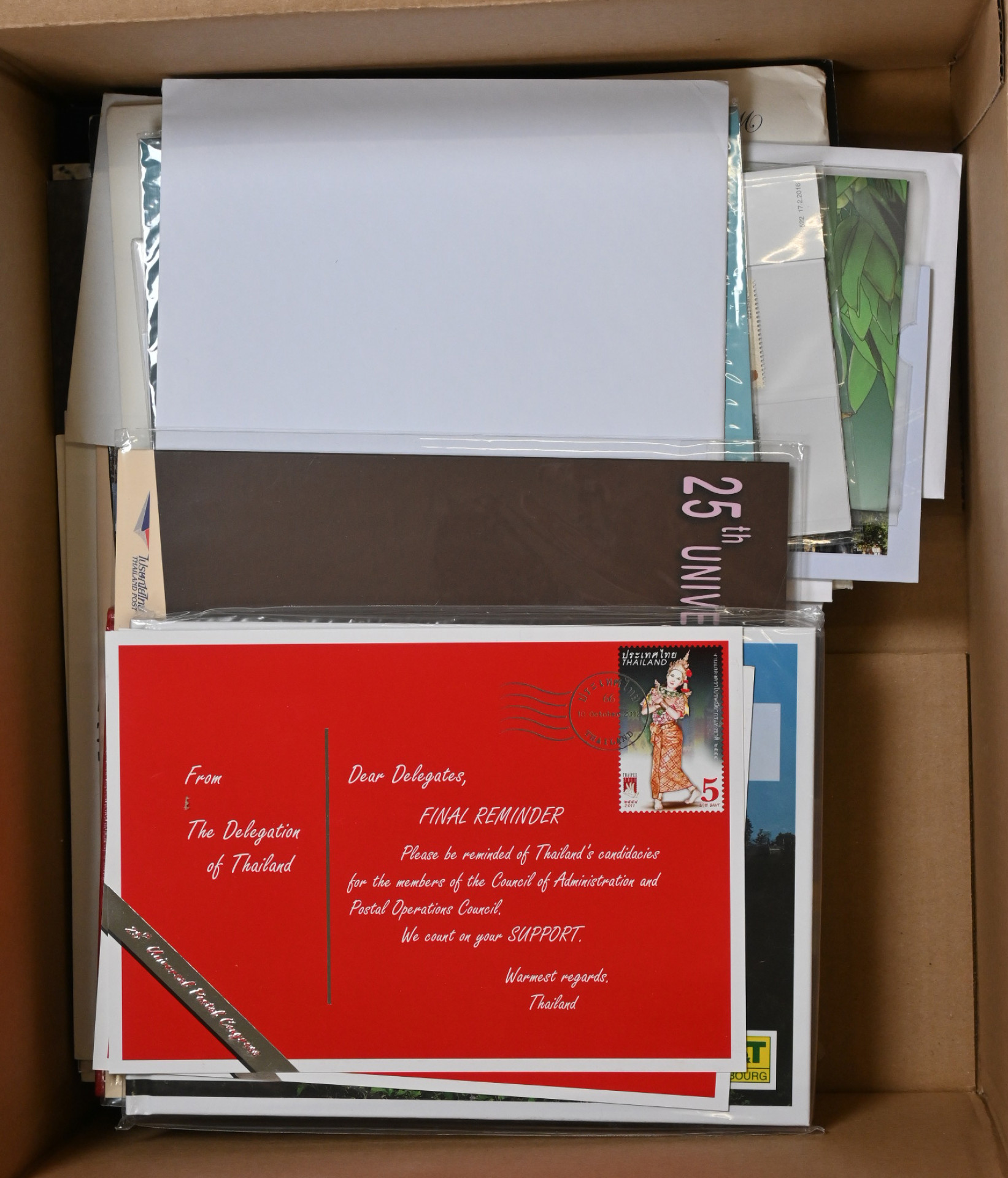 Teemalajitelmia ym. isohko erä 4½ KG laatikossa. Värikästä aihemateriaalia monista eri maista, paljon eri kansainvälisten Postikongressien lajitelmia, kaukomaiden merkkejä, myös pienoisarkkeja, kuoria ym. kiintoisaa!