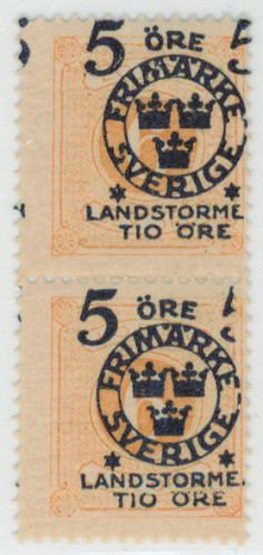 1916 Landstormen II 5 + TIO ÖRE / 6 öre F.118, käyttämätön * liitetty pari isolla päällepainaman siirtymällä. Upea erikoisuus!