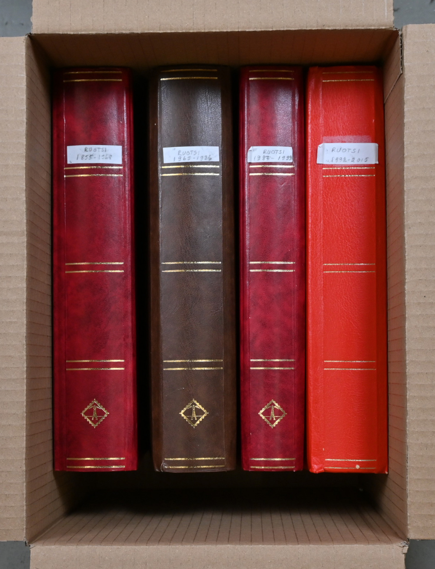 1855 alkaen 2000-luvulle suuri kokoelma/merkkivarasto leimattua ja leimaamatonta materiaalia neljässä paksussa säiliökirjassa. Mukana myös hiukan postilähetyksiä, noin 100 vihkoja, pienoisarkkeja, vihkolehtiä ja -pareja jne. Pääarvo uudemmassa postituoreessa materiaalissa