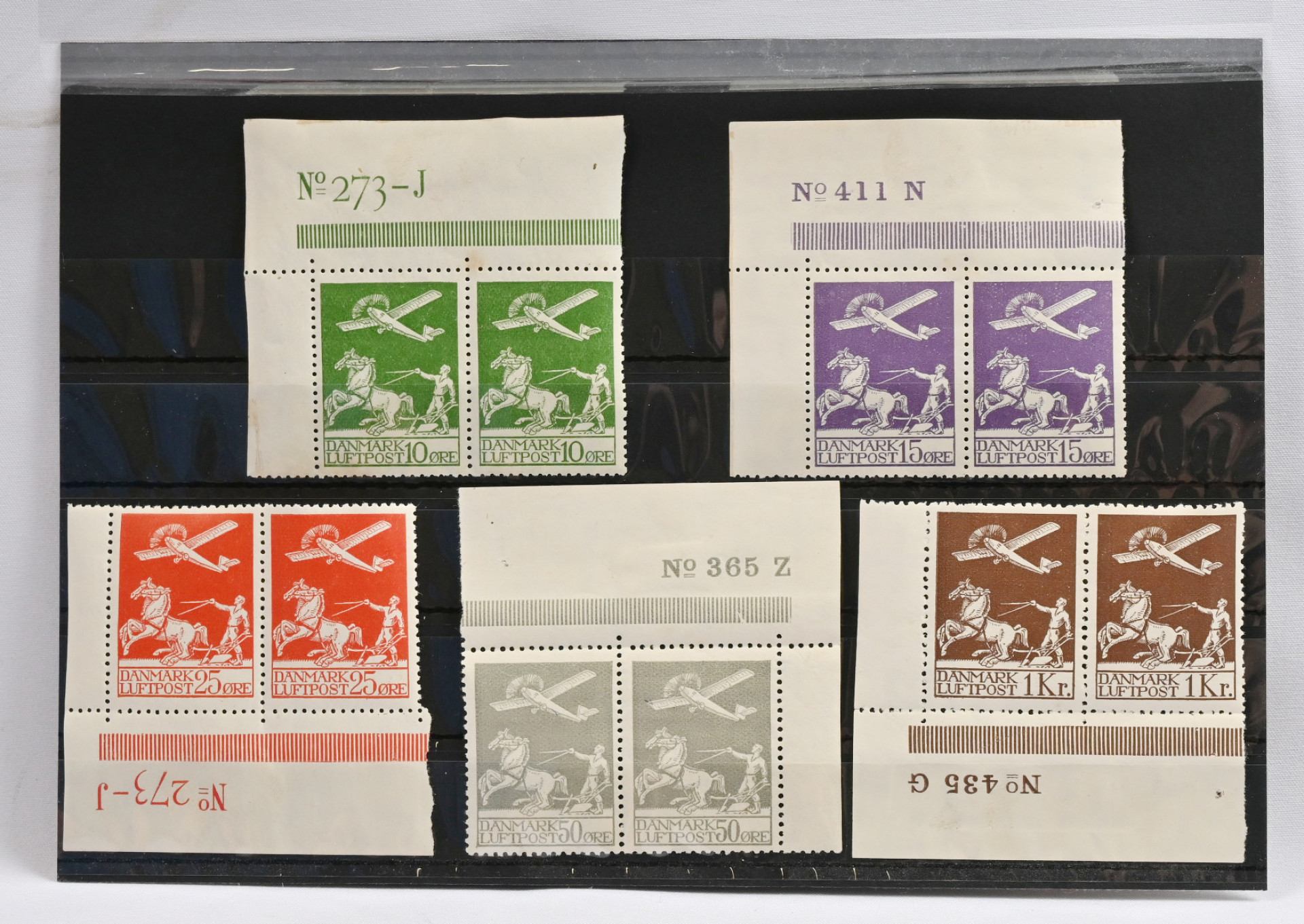1925/1929 Lentomerkit F. 213-217, postituore ** pariarja arkin kulmista arkin numeroin, marginaaleissa liimakkeet, muutamissa merkeissä pari tummaa läikkää ym. pikkuvikaa