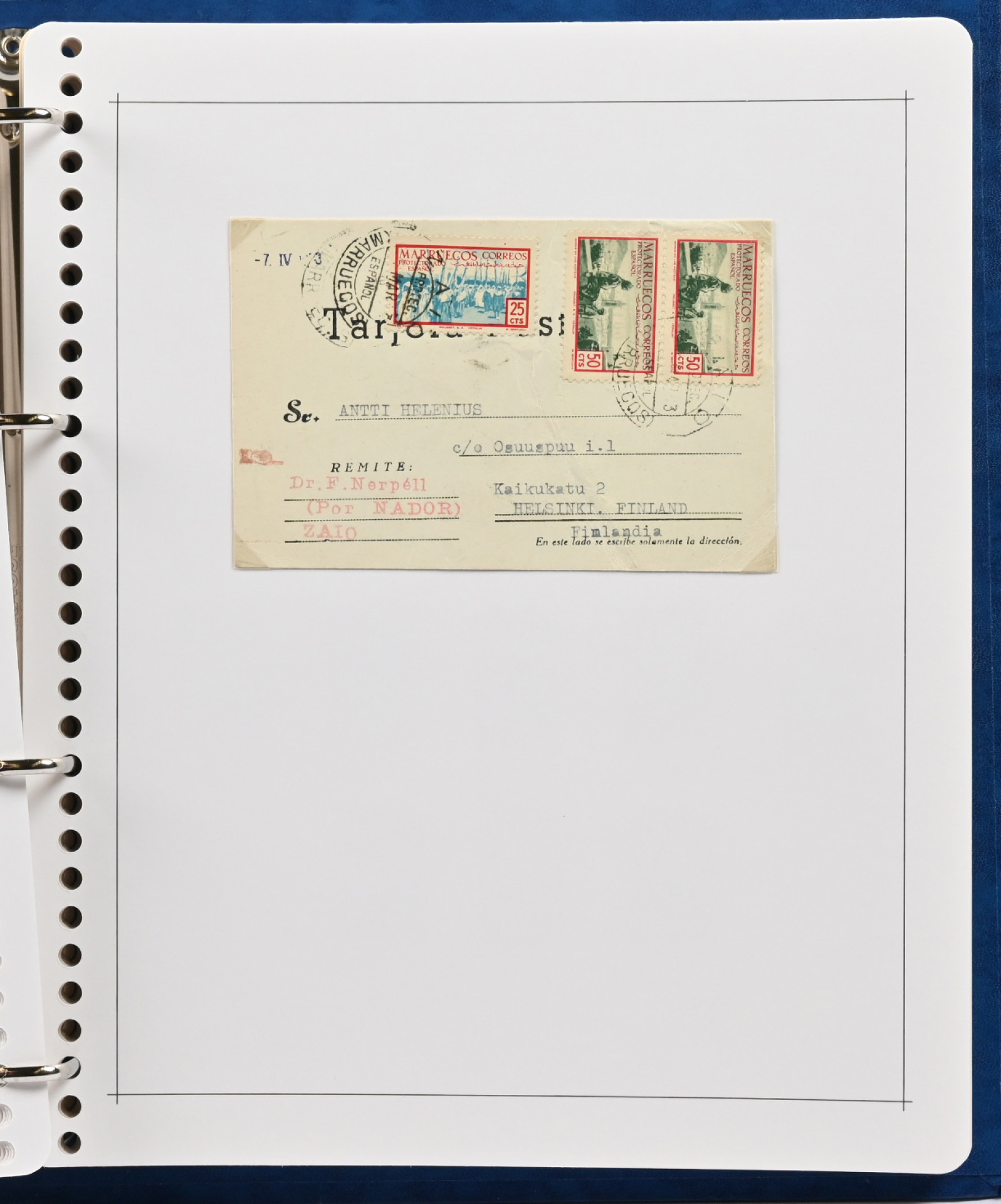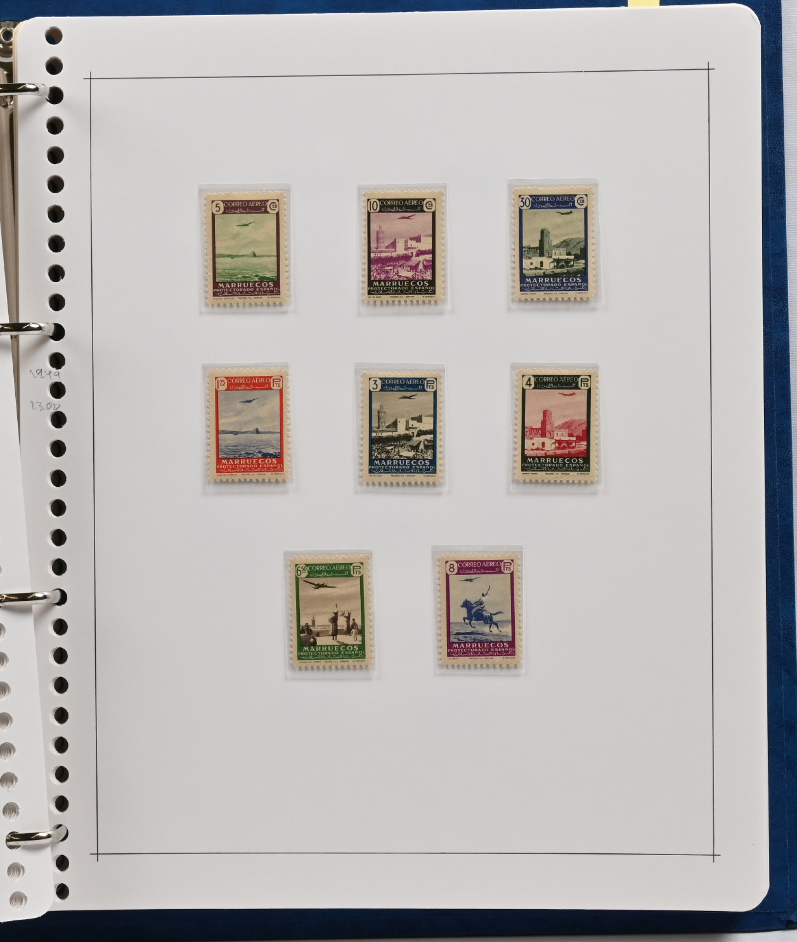 Espanjan siirtomaat, kahdessa kansiossa hieno kokoelma eri alueiden merkkejä, mm. Espanjan Sahara, Cabo Juby, Fernando Poo, Espanjan Marokko ja Espanjan Guinea. Lähinnä leimaamatonta materiaalia sisältäen monia täysiä sarjoja, myös hiukan FDC ym. kuoria. Runsas materiaali