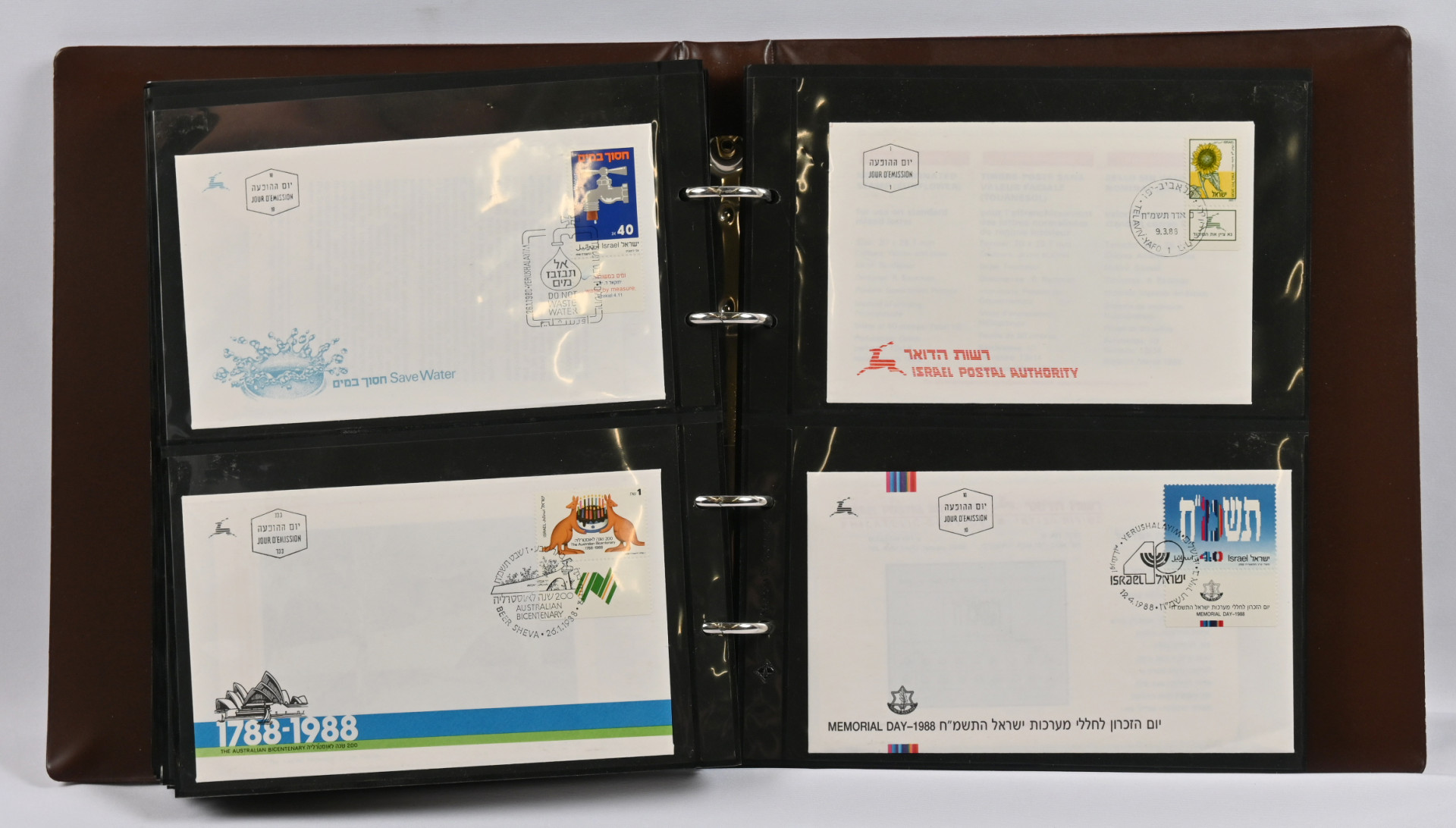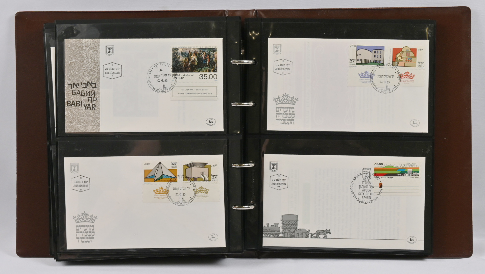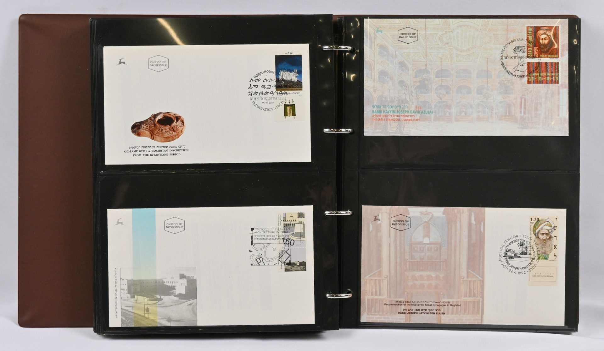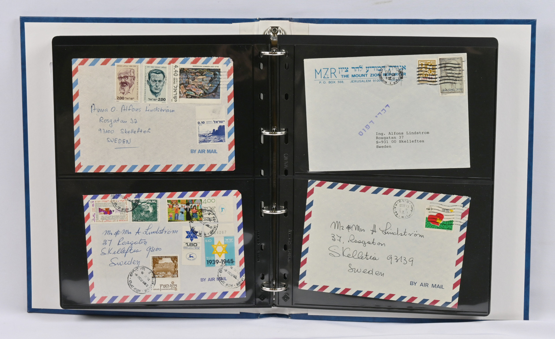 Iso erä FDC-kuoria viidessä hyvässä kuorikansiossa. Lisäksi muuta materiaalia (lähetyksiä ja merkkejä) kolmessa kansiossa.