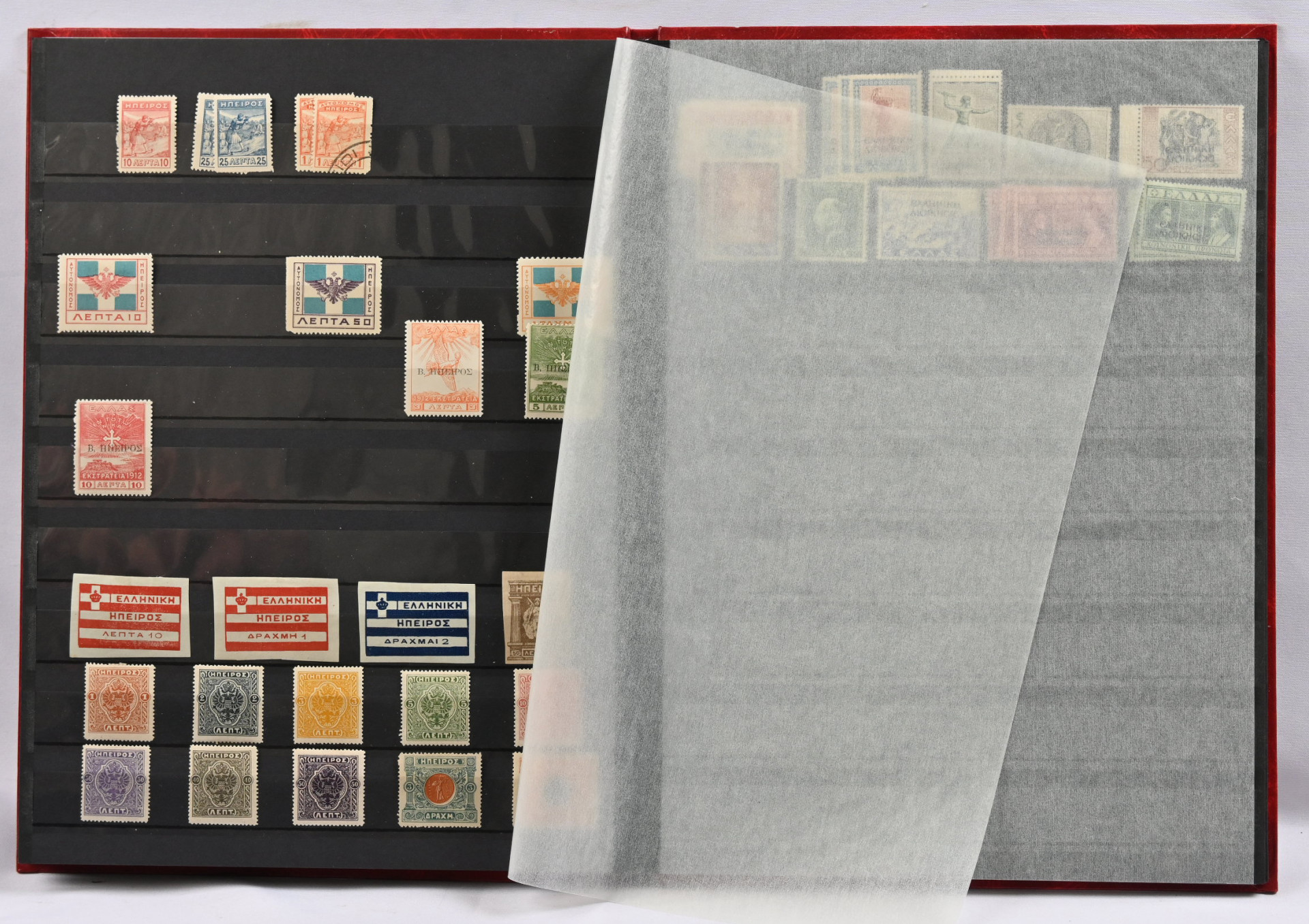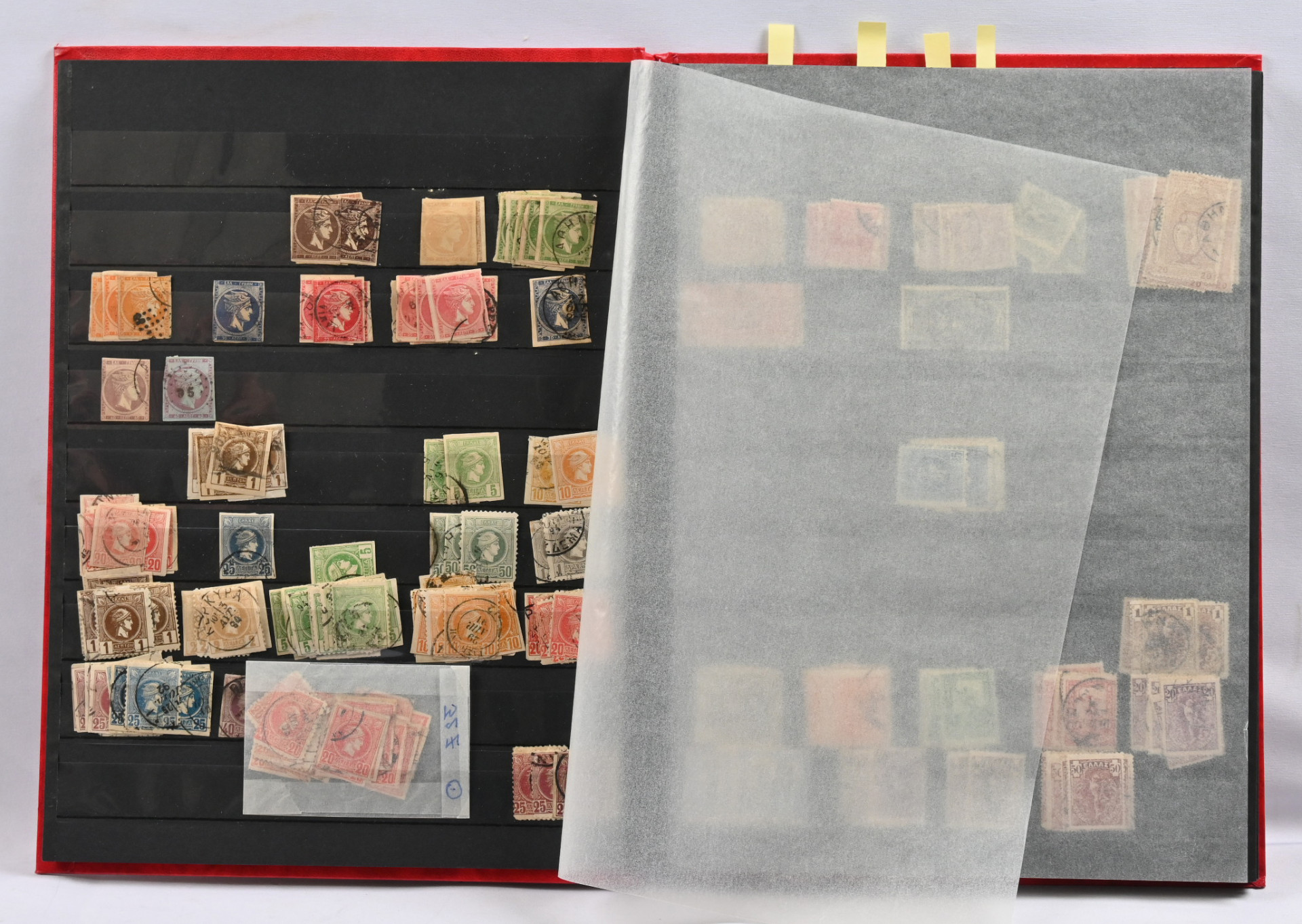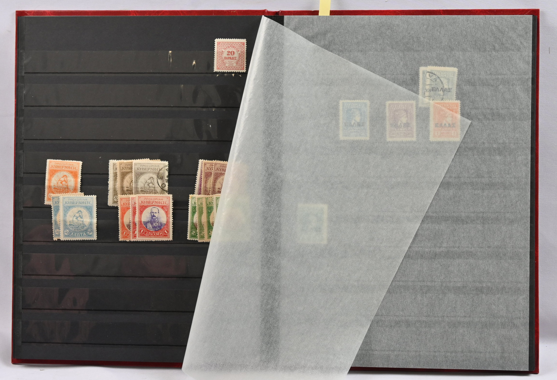 Säiliökirjassa kiintoisa erä lähinnä vanhaa materiaalia alkaen iso Hermeksen pää -merkeistä. Leimattua ja leimaamatonta materiaalia, kiintoisia päällepainamia jne. Lisäksi toinen säiliökirja jossa Kreikan eri alueiden materiaalia, mm. Kreeta, Traakia, Lemnos. Tutkittavaa pitkäksi aikaa