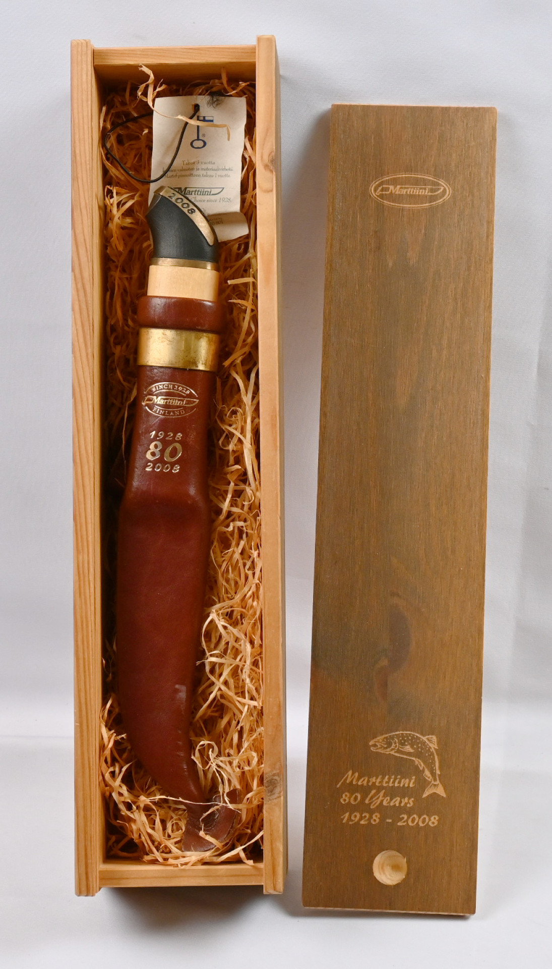 Marttiini 80 vuotta puisessa alkuperäislaatikossa, terä n. 11 cm