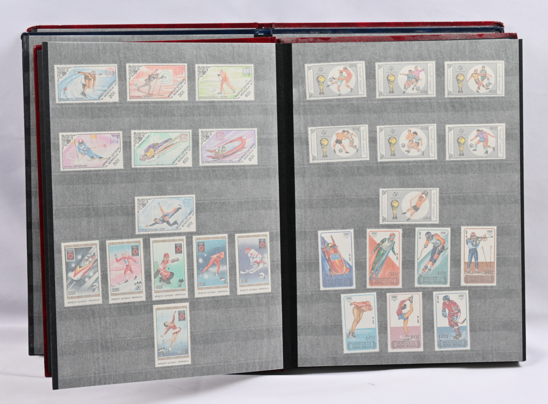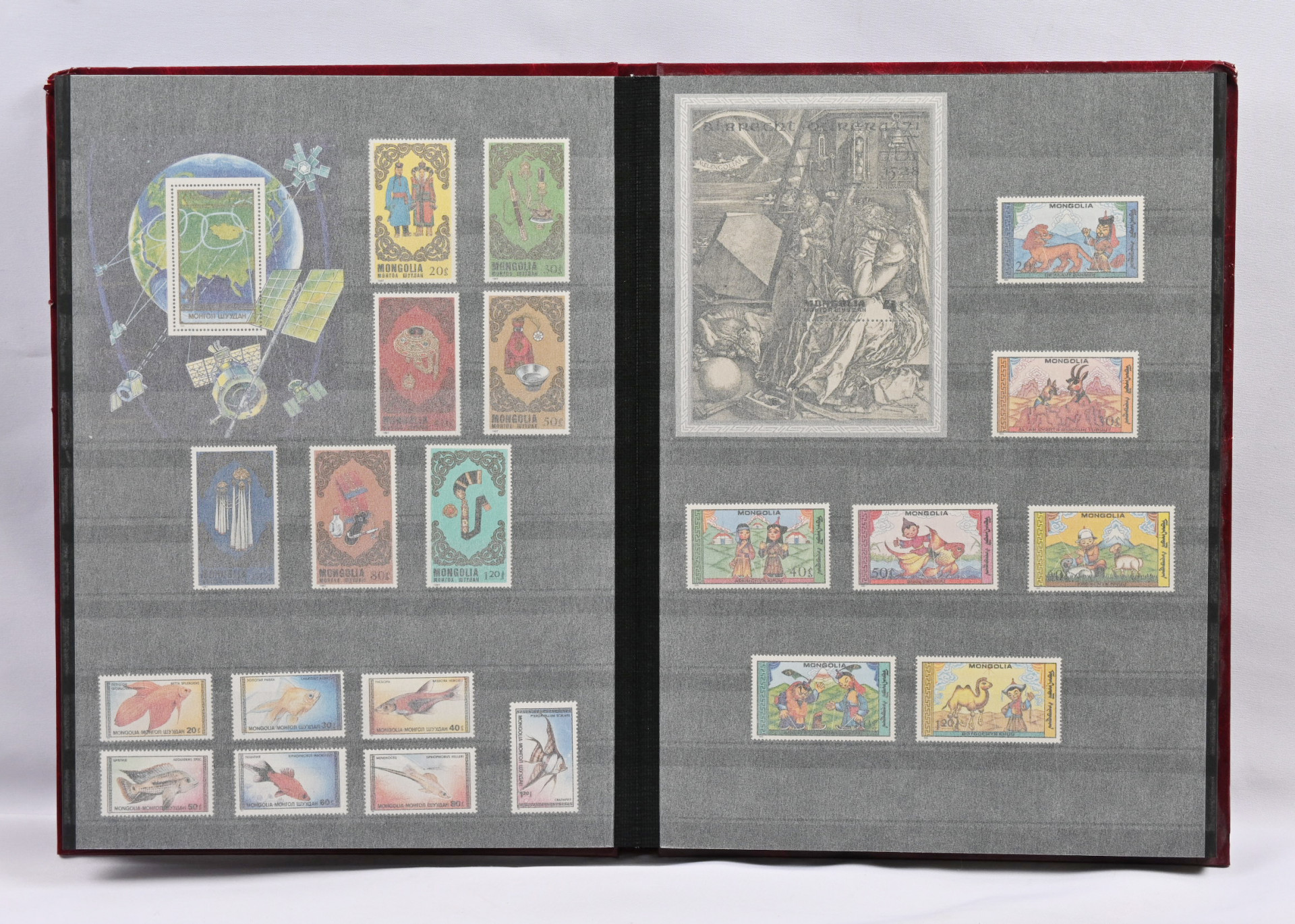 Kolmessa säiliökirjassa iso erä värikkäitä postituoreita ** aihesarjoja ja pienoisarkkeja