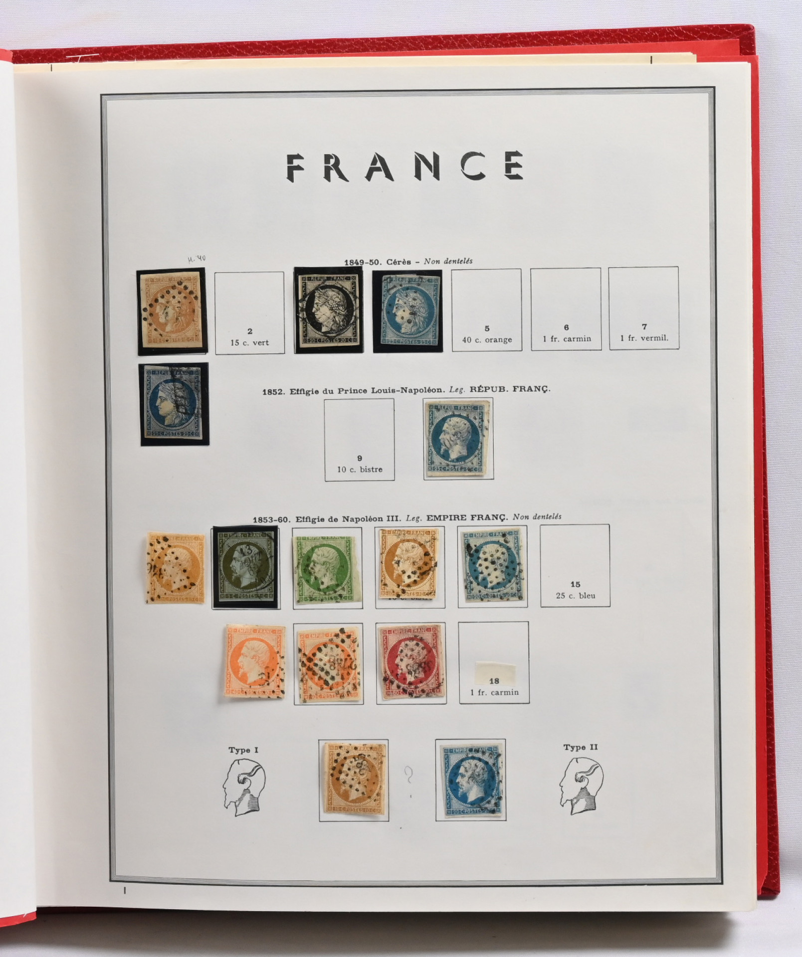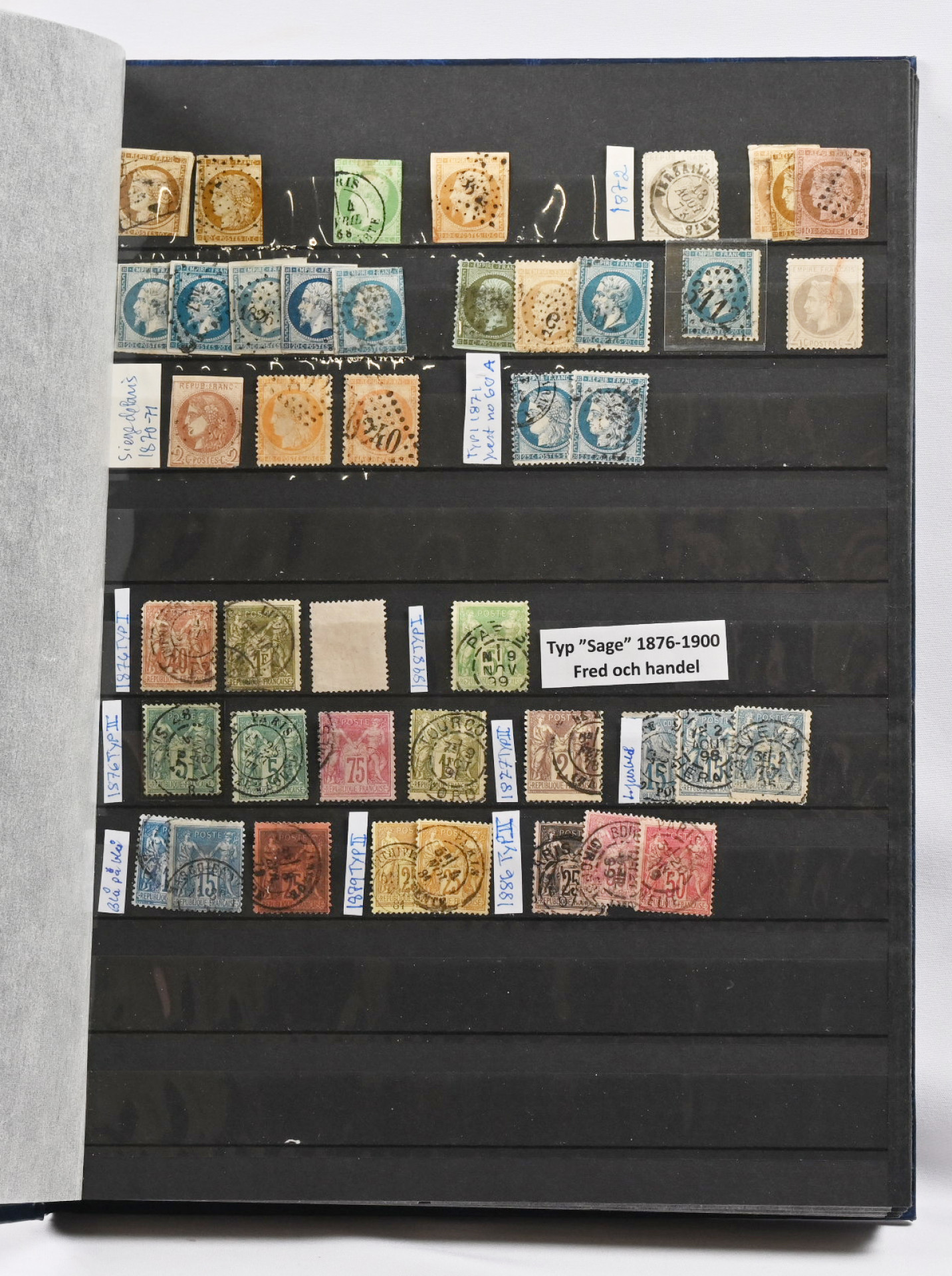1849 - 1982 lähinnä leimattu (myös vähän **/*) peruskokoelma kansiossa. Monia parempia klassisia merkkejä, mutta jonkin verran vaihteleva laatu. Mm. Mi 3, 9, 10, 16, 23, 32 (ohentumia), 76, 212 *, 782 * ja hyviä lunastusmerkkejä. Lisäksi säiliökirja, jossa kaksoiskappaleita ja uudempaa materiaalia sekä vähän siirtomaitakin.