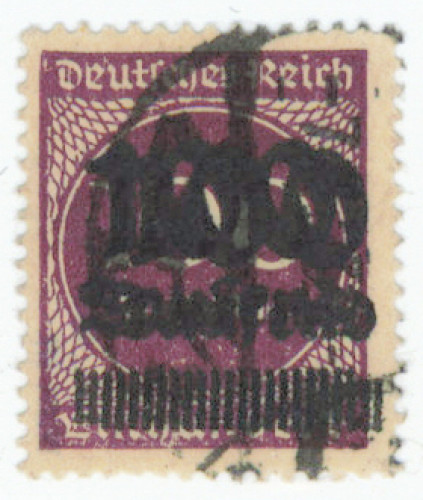 1923 päällepainama 100 Tsd / 100M Mi 289bDD, kaunis leimattu merkki PÄÄLLEPAINAMAN KAKSOISPAINAMALLA, takuu Tworek BPP.