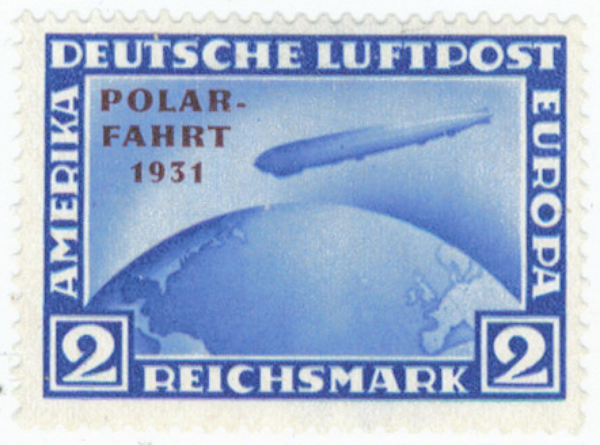 1931 Zeppelin Polarfahrt 2RM sininen Mi 457, hyvä käyttämätön *