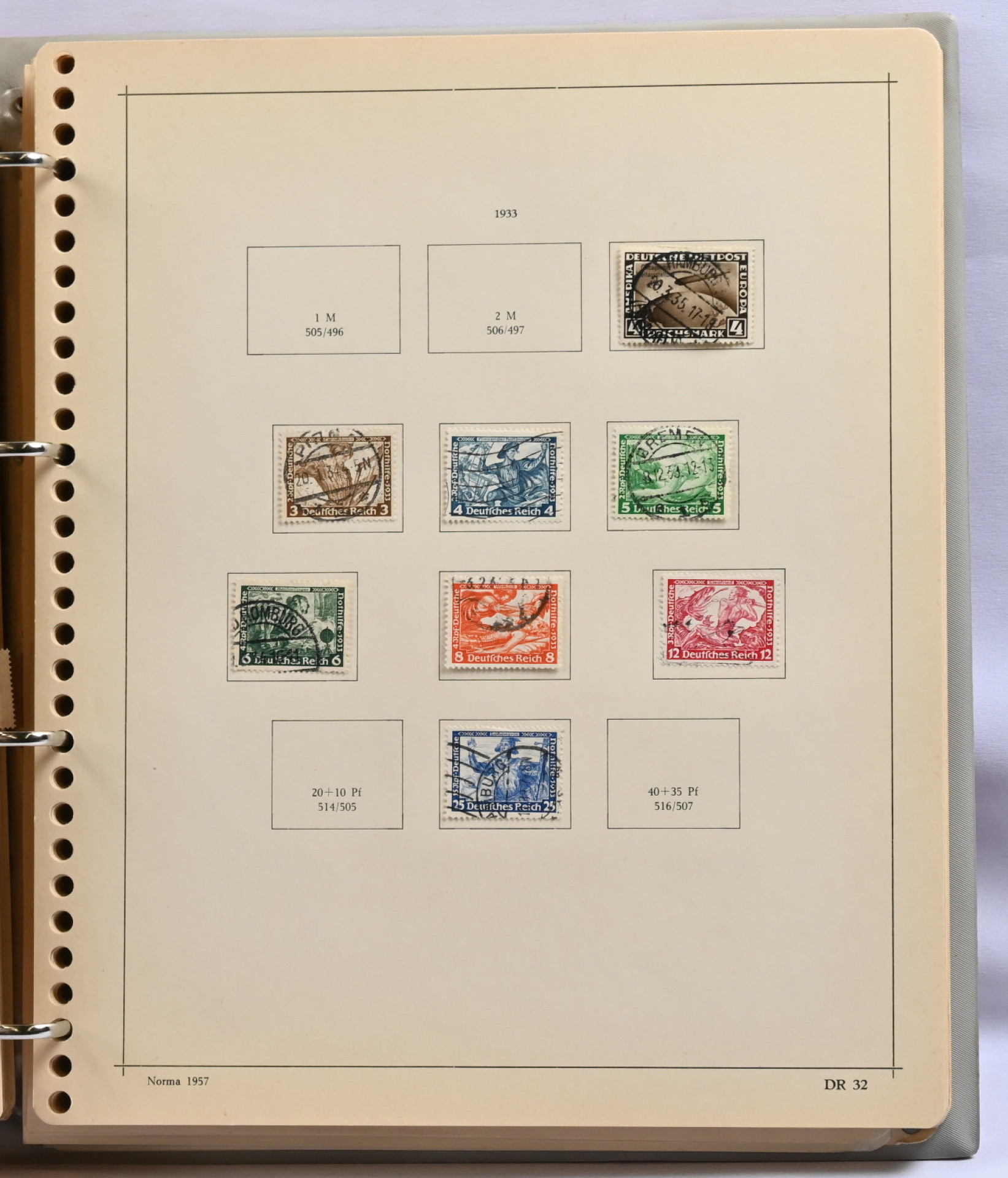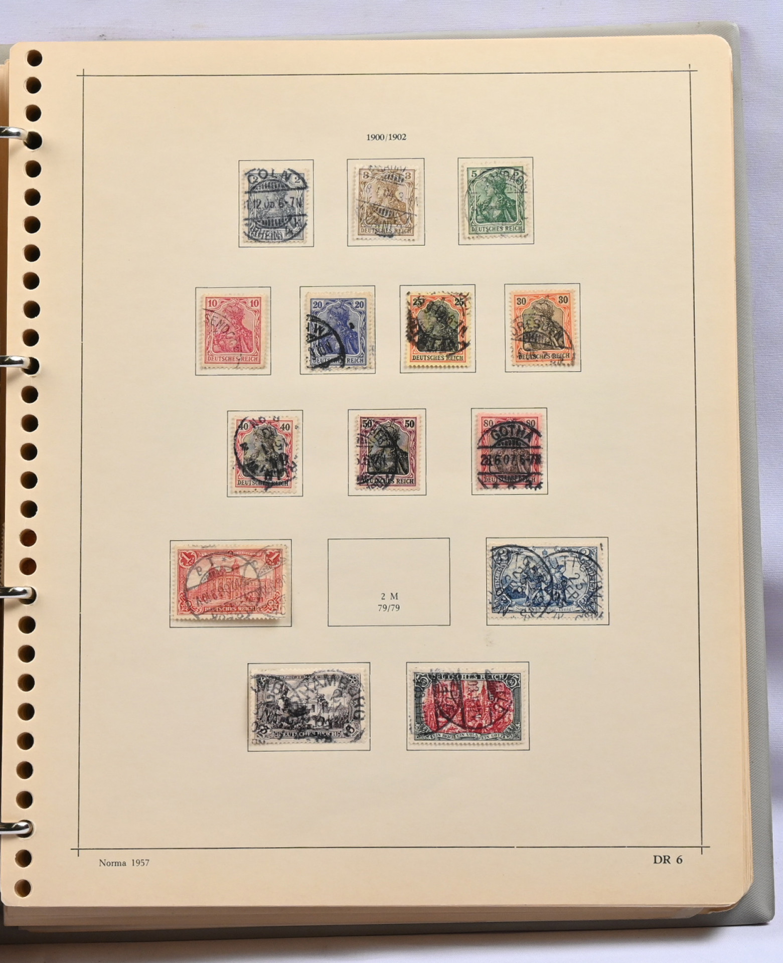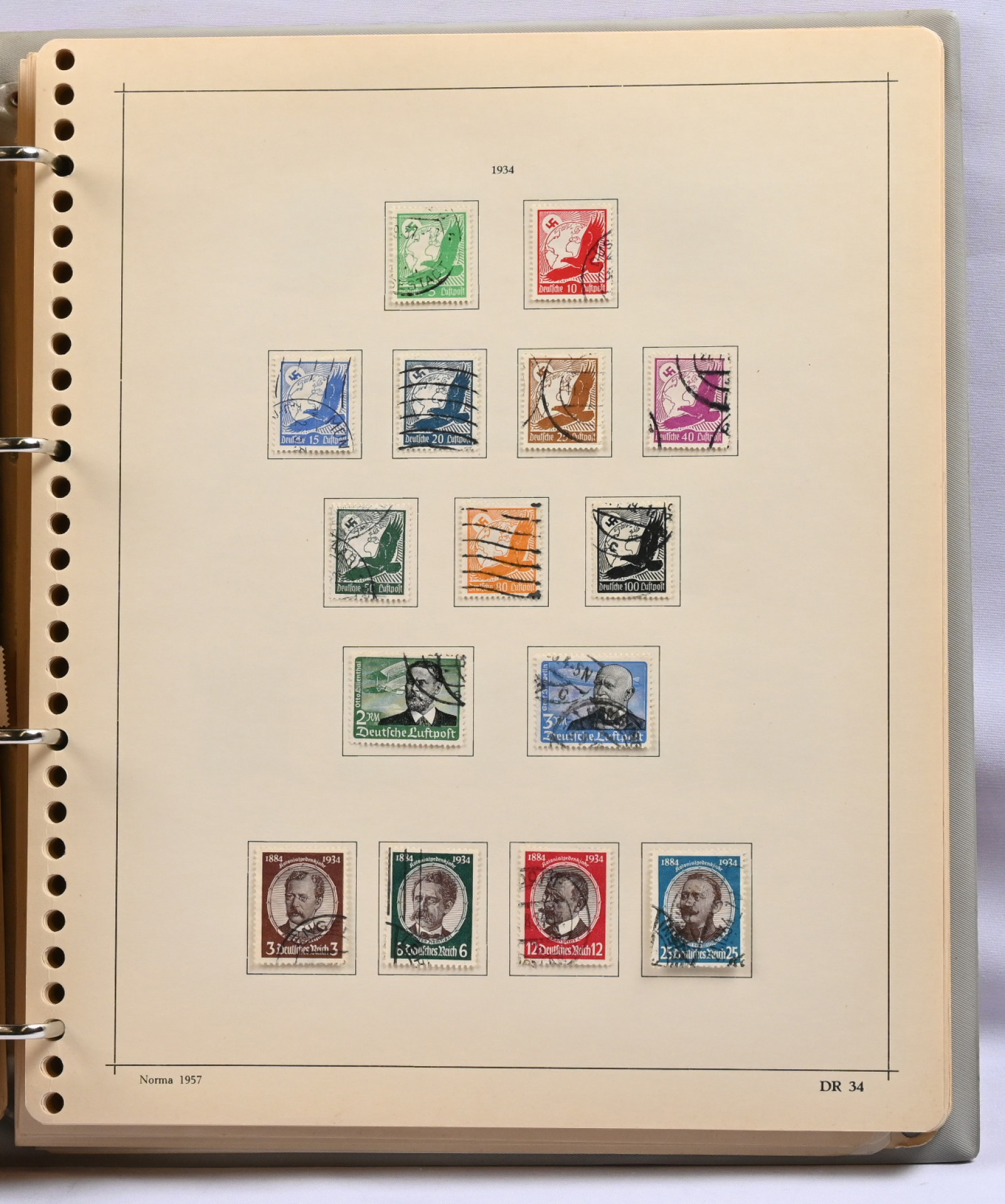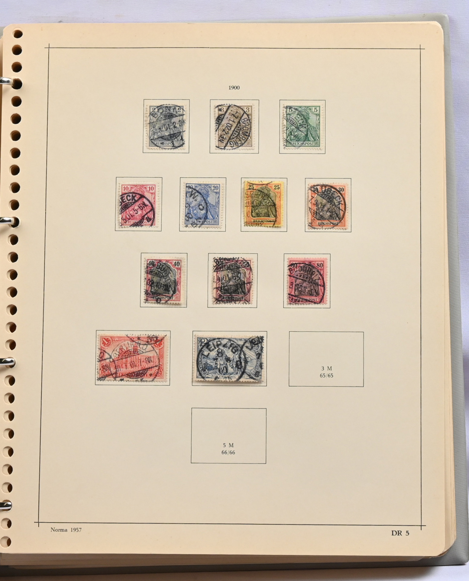 1872 - 1945 kokoelma leimattua ja leimaamatonta materiaalia vanhassa albumissa. Mukana monia hyviä keskihintaisia julkaisuja, mm. Zeppelin-merkkejä, Brustschild-julkaisua, pienoisarkkeja, myös hiukan Kenraalikuvernementtia ym.