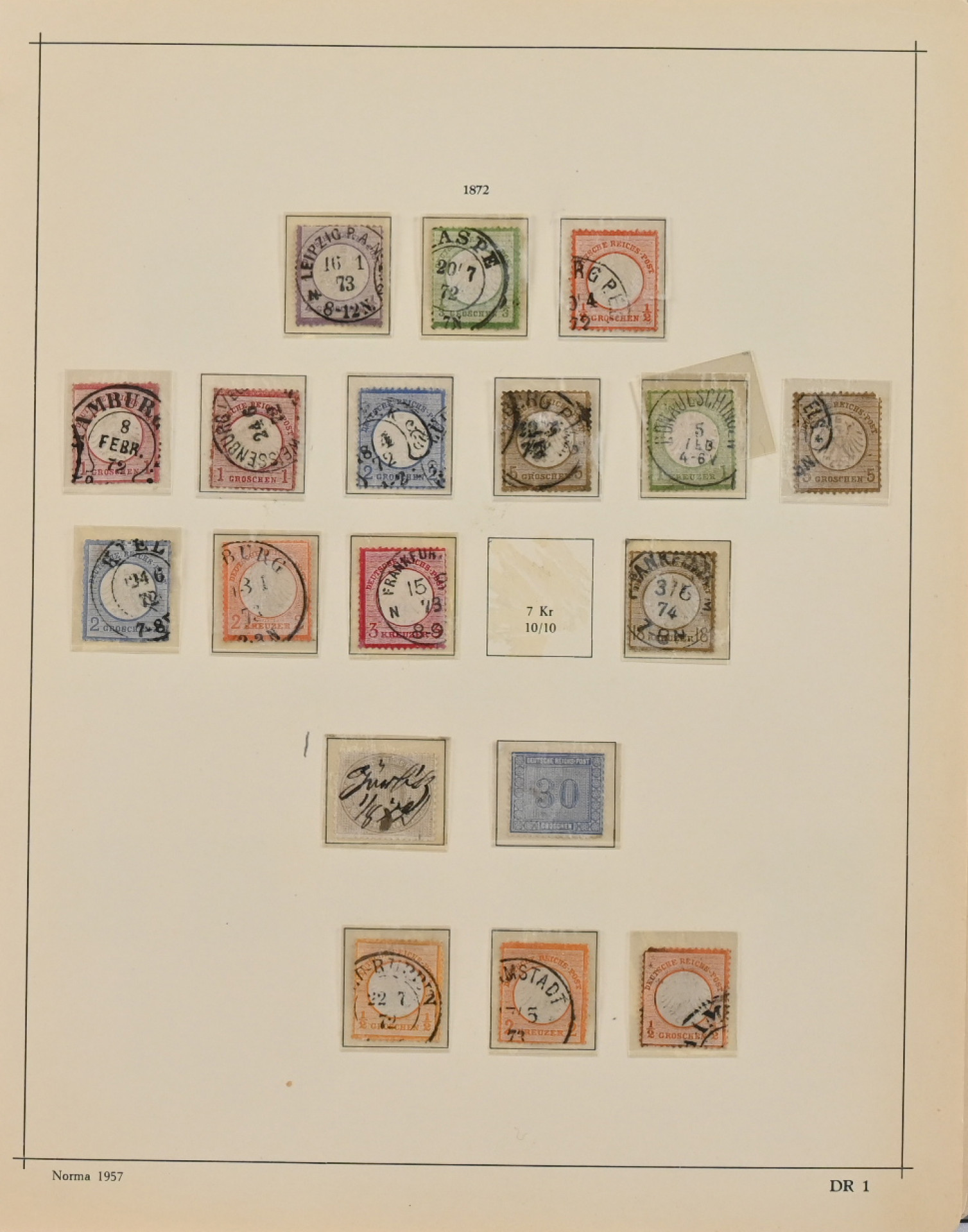 1872 - 1945 varsin hyvä, lähinnä leimattu kokoelma kansiossa. Joitakin hyviä alkupään merkkejä, pari pienoisarkkia jne. Lisäksi toinen kansio, jossa vähän vanhojen valtioiden ja siirtomaiden merkkejä