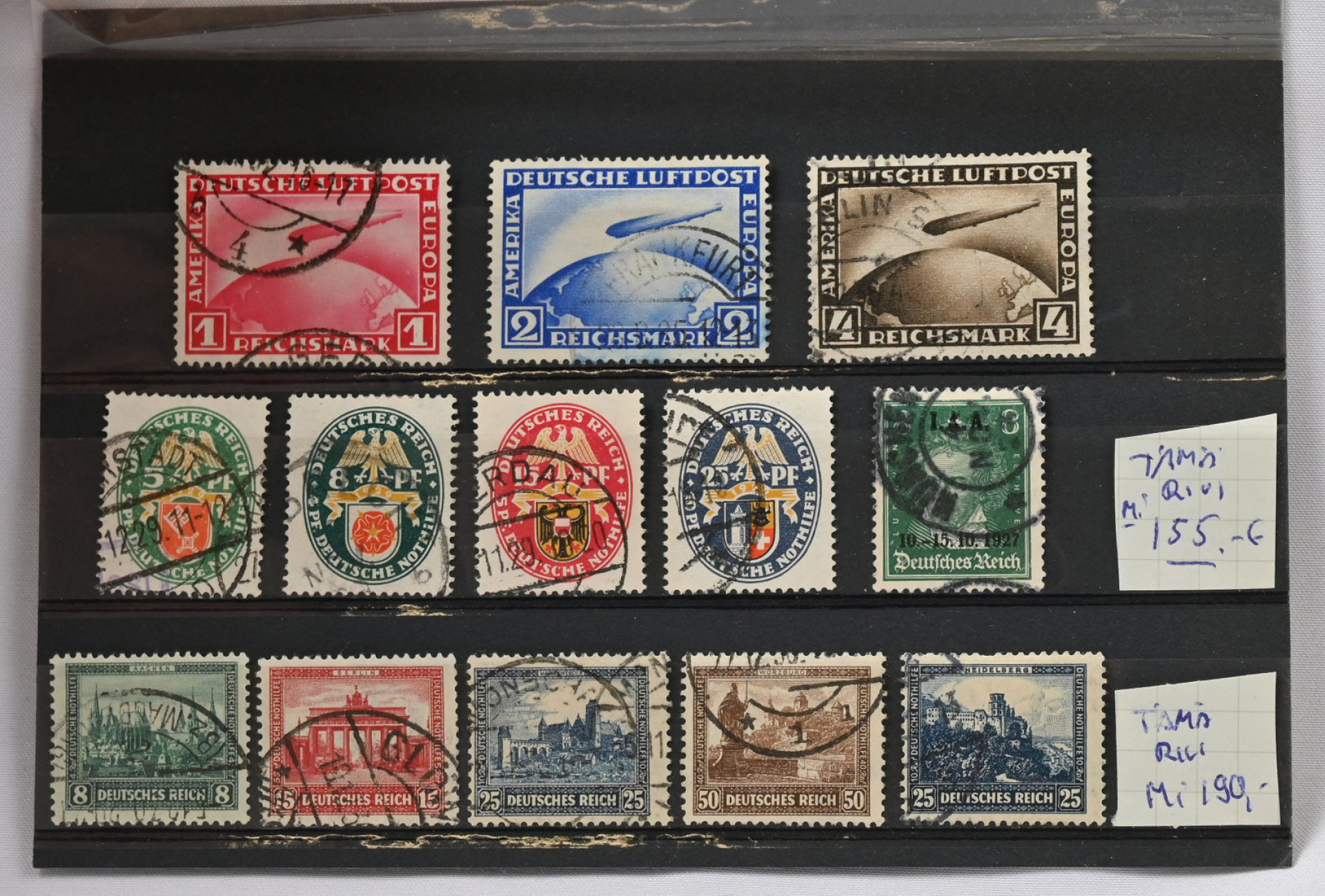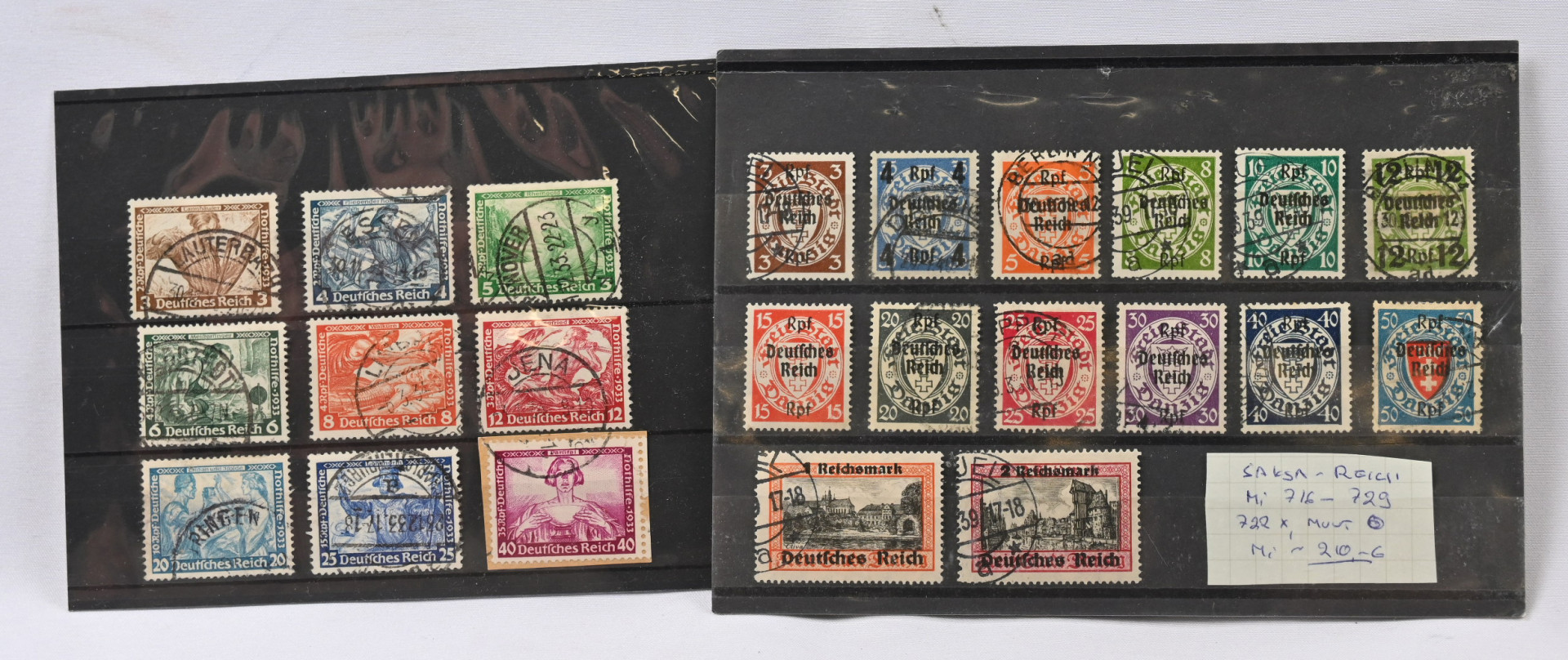 1927 - 1949 pieni erä parempia leimattuja merkkejä ja sarjoja. Mm. kolme Zeppelin-merkkiä, 1934 Wagner-sarja (Mi 499-507), 1939 lisäpainamat (Mi 716-729). Joitakin pikkuvikoja. Mi yli 1000€