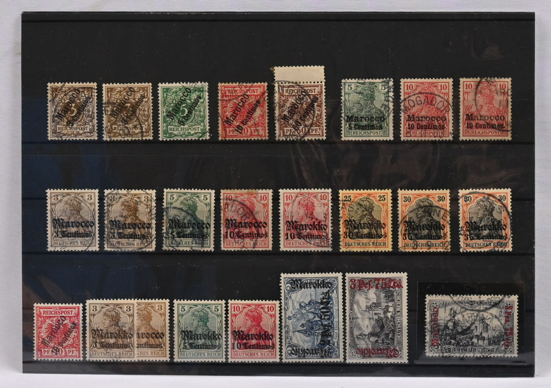 Saksan posti Kiinassa, Marokossa ja Turkissa, pieni */o erä. Mukana mm. Marokko Mi 6 ja 18, Turkki Mi V18, 5, 9, 10, 45, 47 ym.
