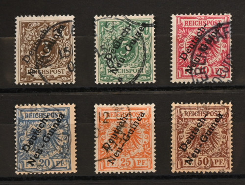Saksan Uusi-Guinea 1897 Mi 1-6, siisti leimattu sarja, muutamassa merkissä takuuleima