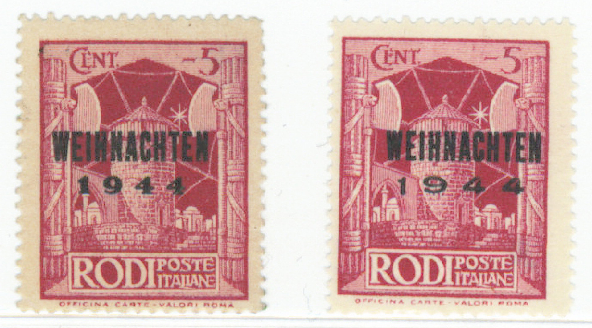 Rhodos 1944 Mi 12, kaksi postituoretta ** merkkiä, tyypit I ja III