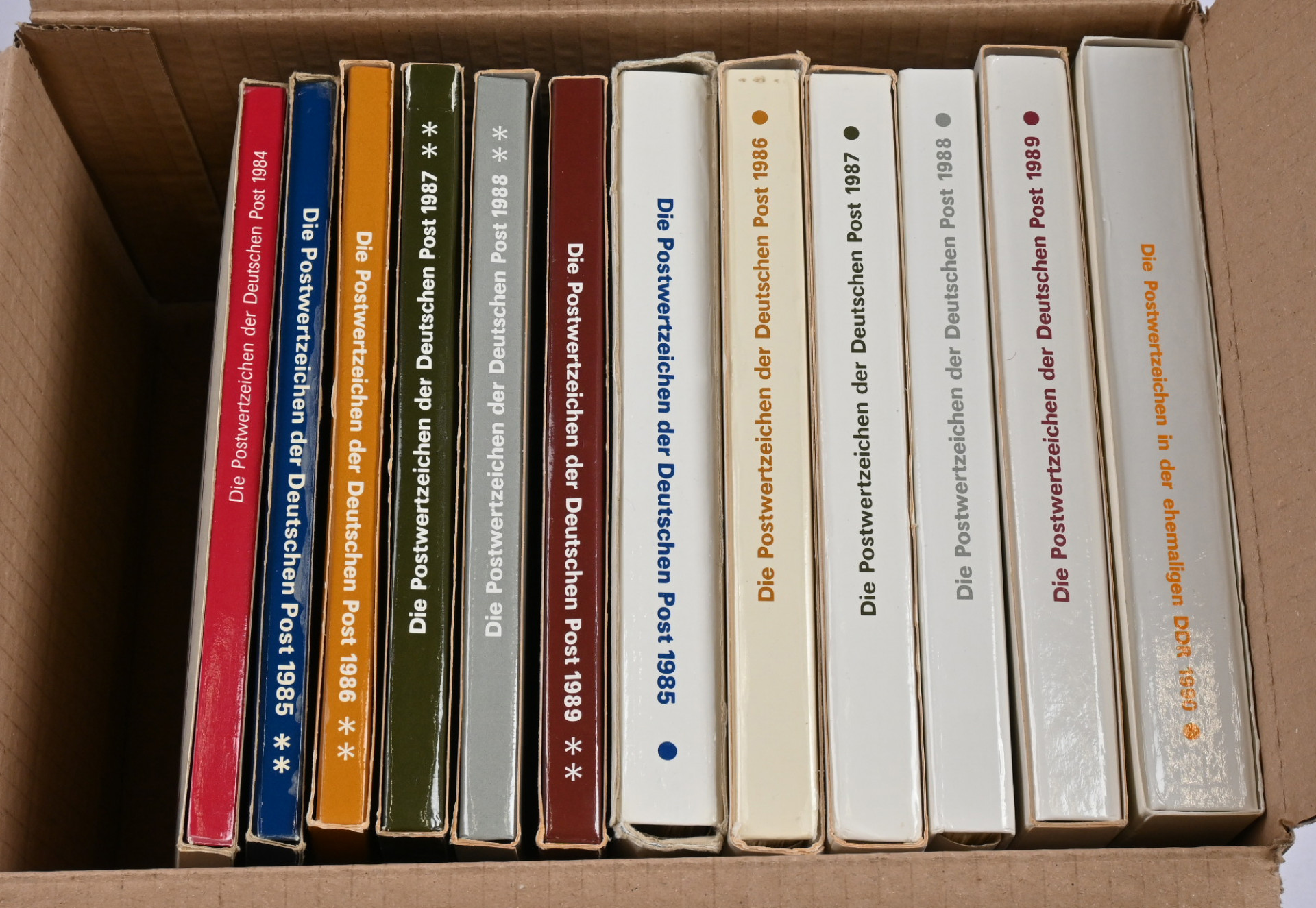 1984 - 1989 kuusi kirjaa "Die Postwertzeichen der Deutschen Post" sisältäen postituoreita ** merkkejä, lisäksi 1985 - 1990 kuusi erilaista vuosipakkausta erikoisleimoja merkkeineen keräilysivuilla