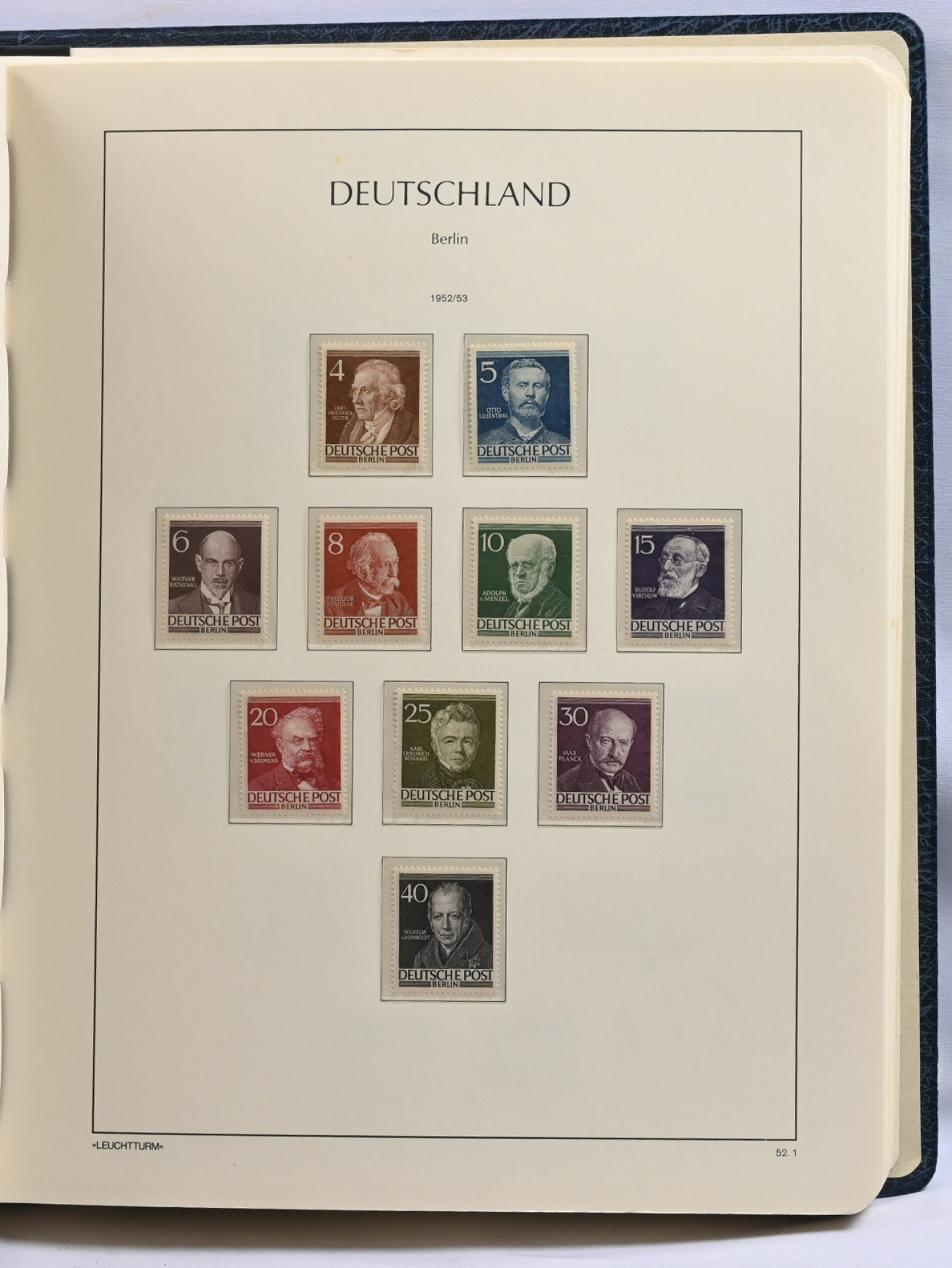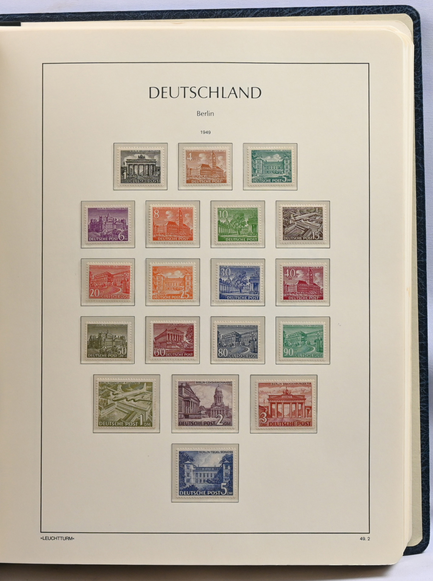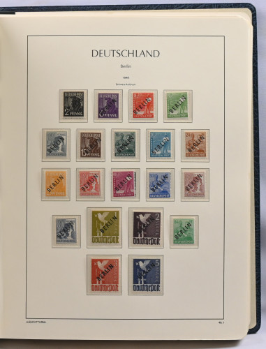 1948 - 1990 upea arvokokoelma ilmeisesti vain postituoretta ** materiaalia Leuchtturmin taskullisessa albumissa. Vaikuttaa täydelliseltä, kaikki alkupään merkit mukana, myös Währungs-pienoisarkki Mi BL1. Muutamissa alkupään merkeissä takuuleimat mutta suurin osa ilman takuuleimoja. Erittäin suuri luetteloarvo!