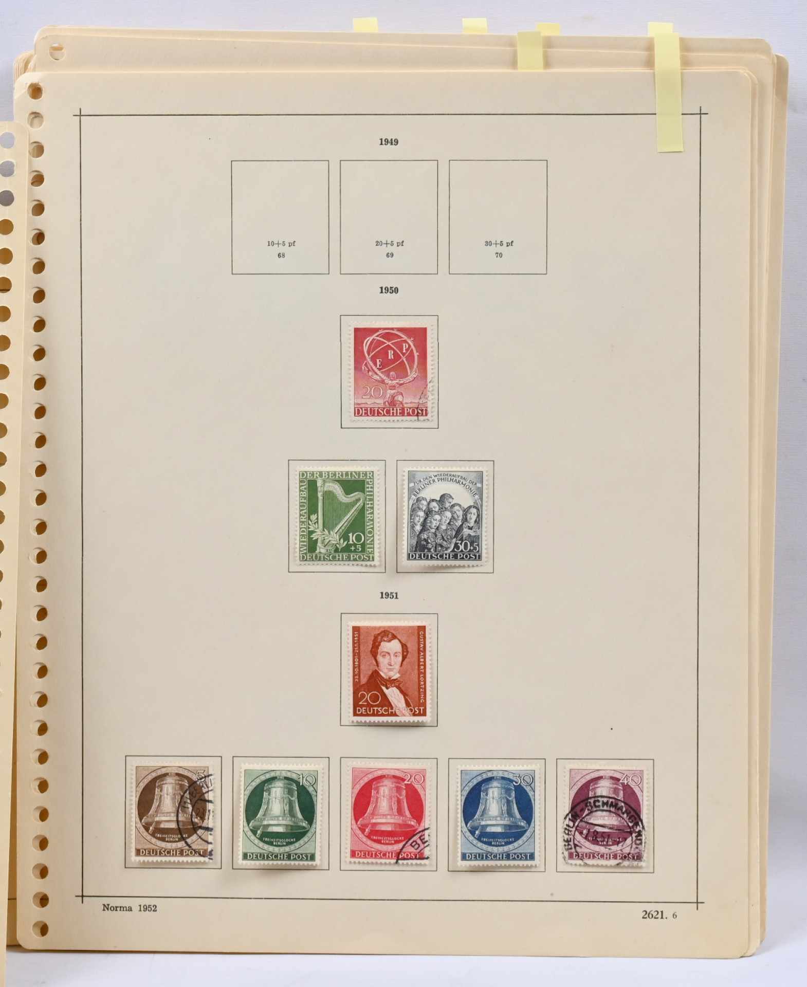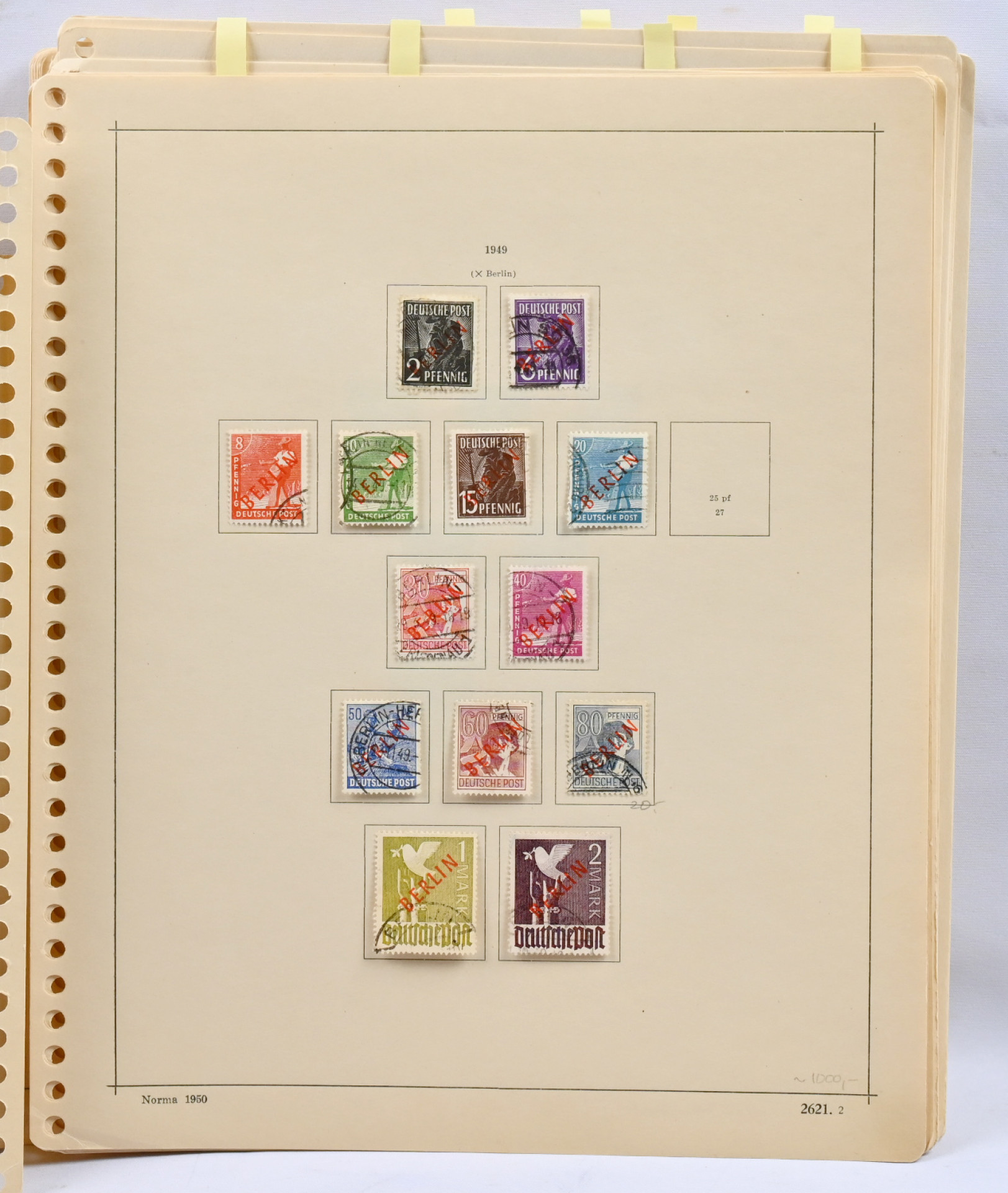 Pieni kokoelmaerä Saksaa sisältäen peruskokoelman Reichia 1875 - 1945 sekä pienet alut vuoteen 1953 asti Länsi-Saksaa, Itä-Saksaa ja Berliiniä ja näissä kaikissa mukana alkupäiden parempia julkaisuja. Berliinin ensimmäisten sarjojen yläarvoissa ei takuuleimoja