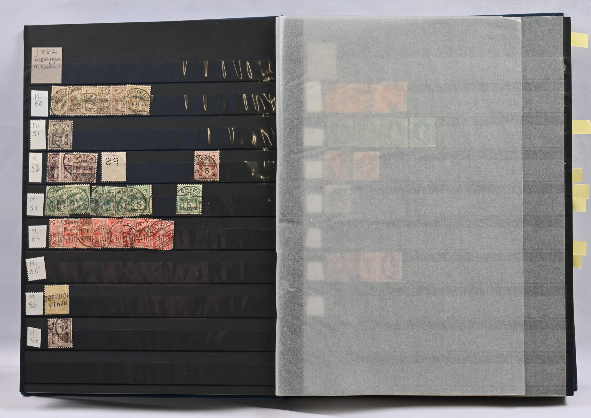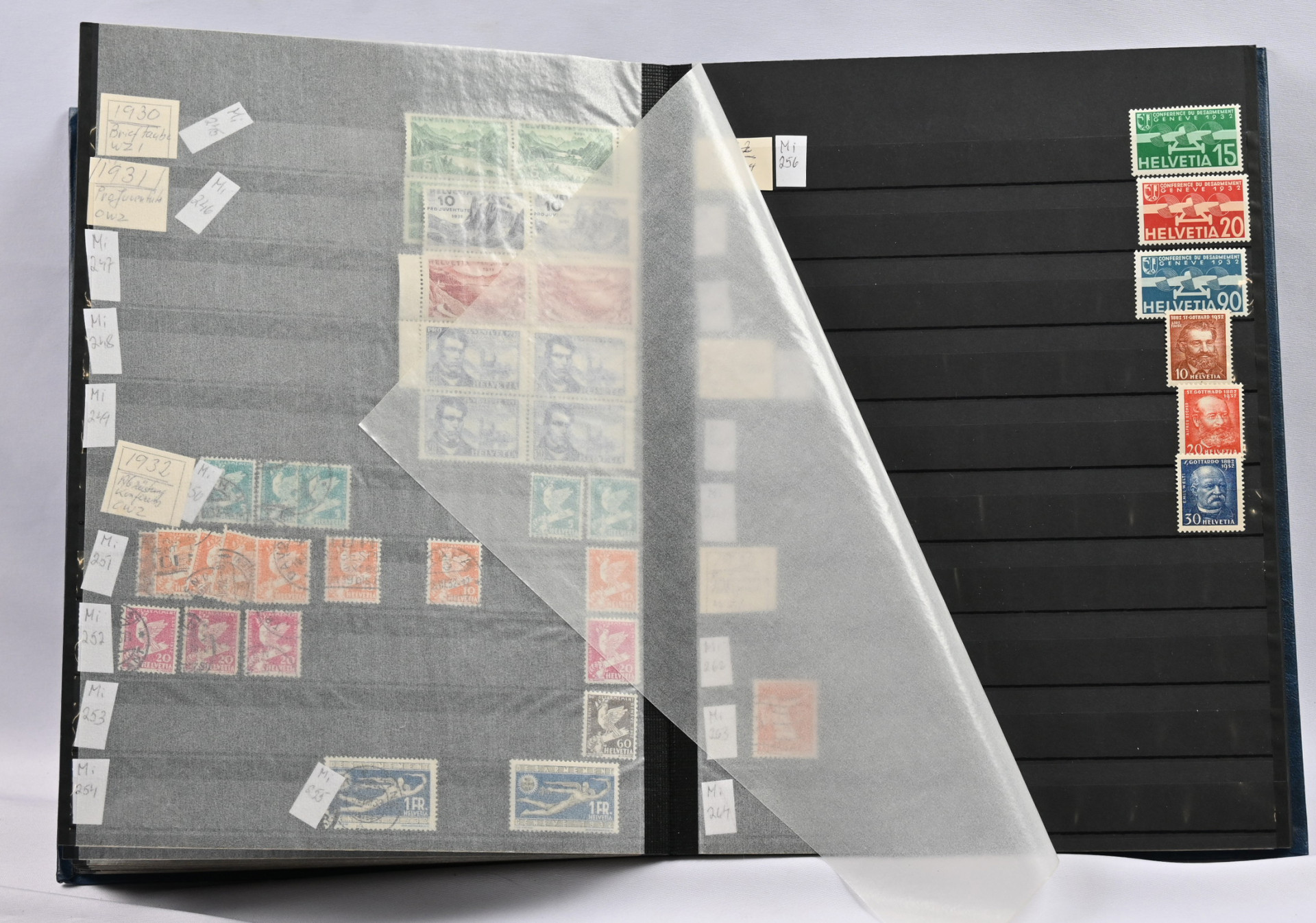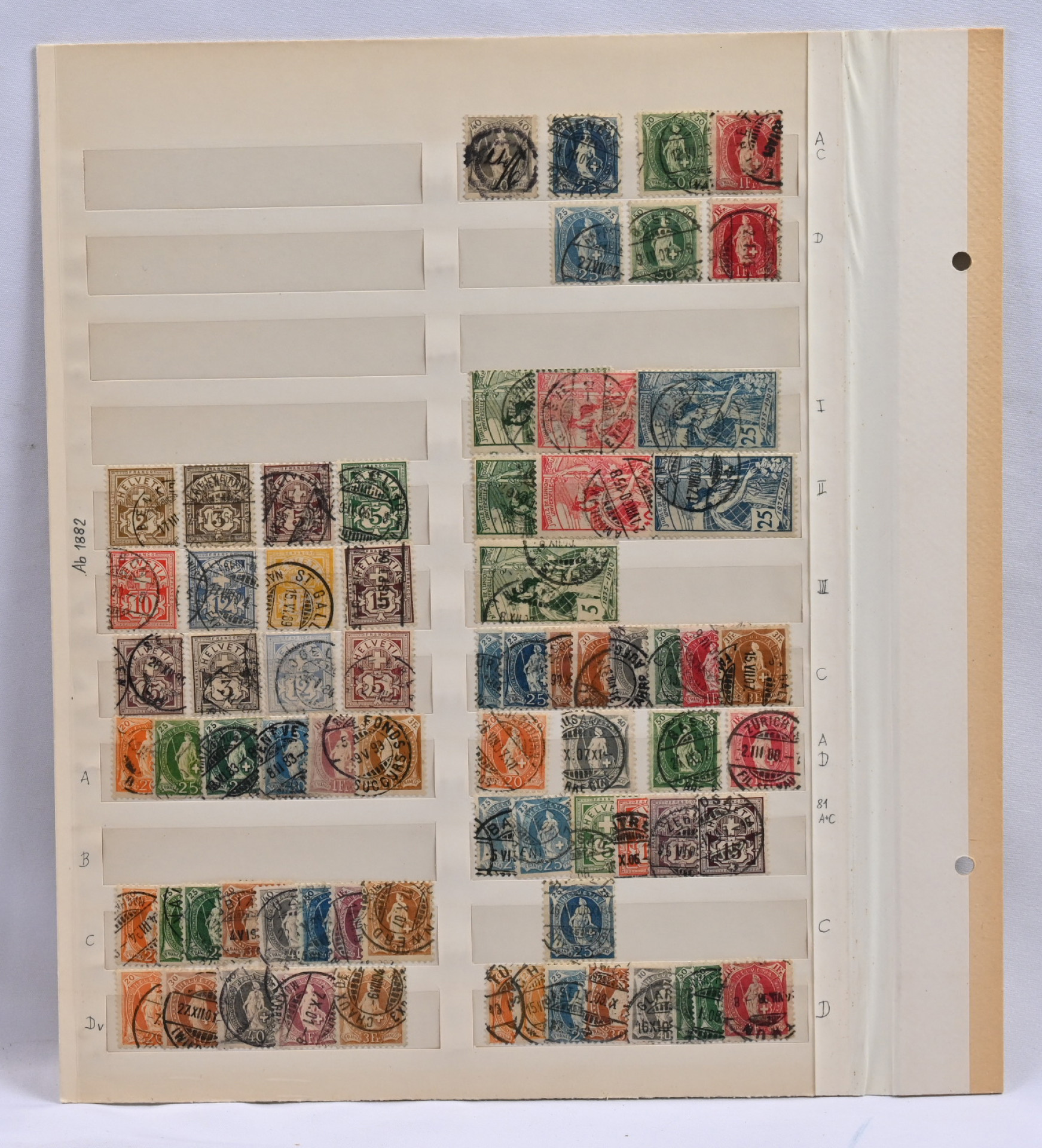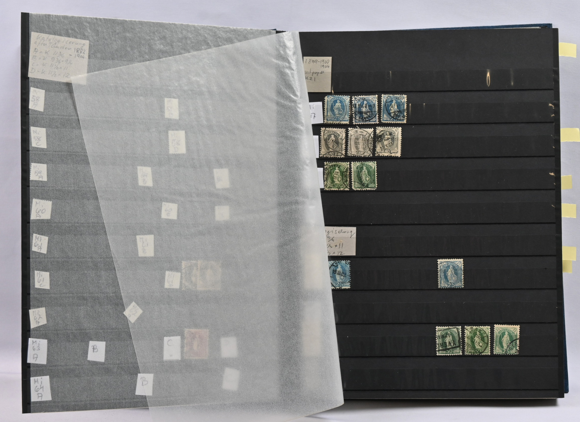 1862 alkaen kaksi jäännöskokoelma kansiossa ja säilytyslehdillä. Monia parempia alkupään merkkejä, hammaste- ja muita eroja, Pro Juventute ja Pro Patria sekä lentomerkkejä ym. Lisäksi kaksi säiliökirjaa leimattua ja myös postituoretta ** materiaalia. Vanhaa, ** nelilöitä jne.