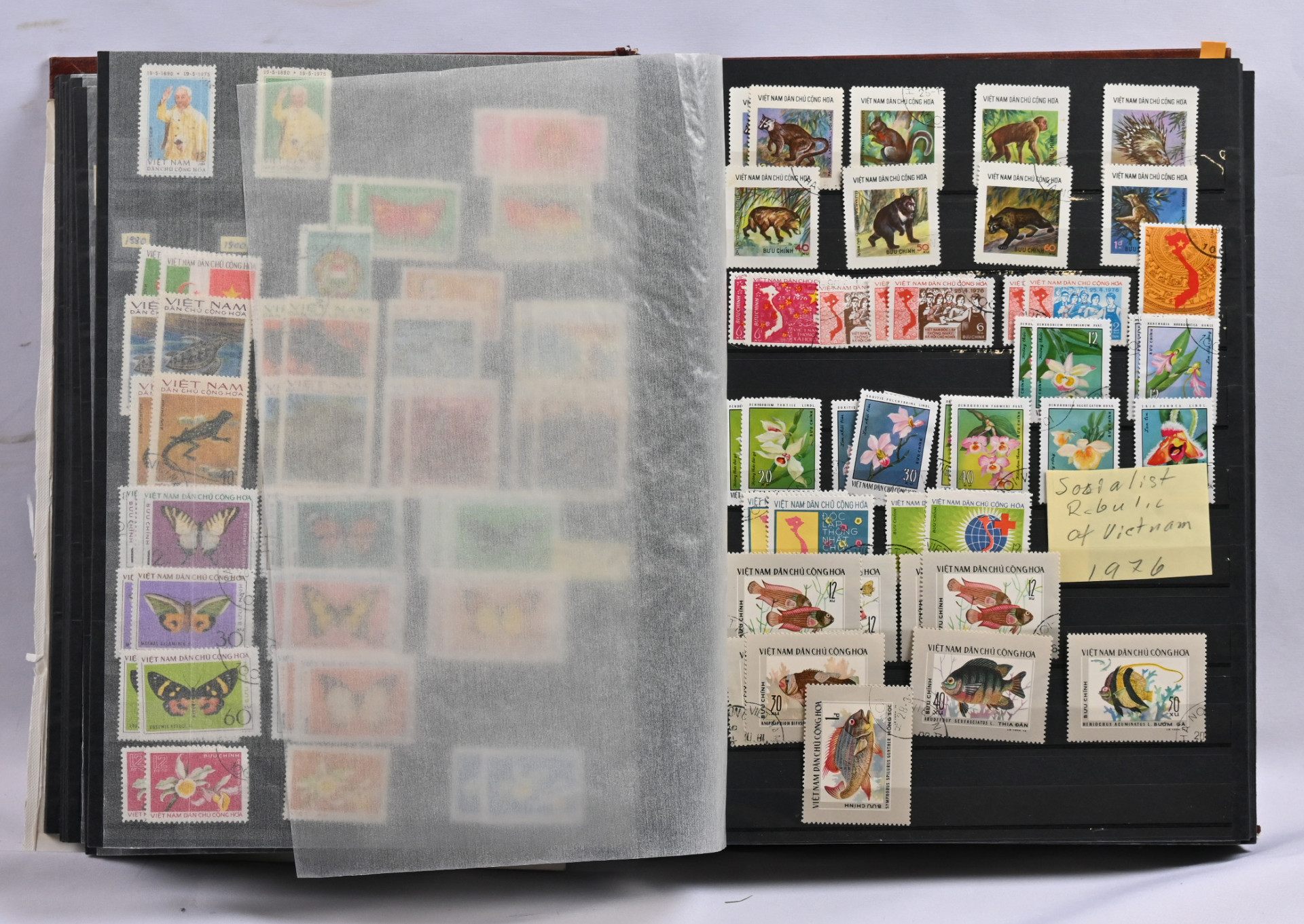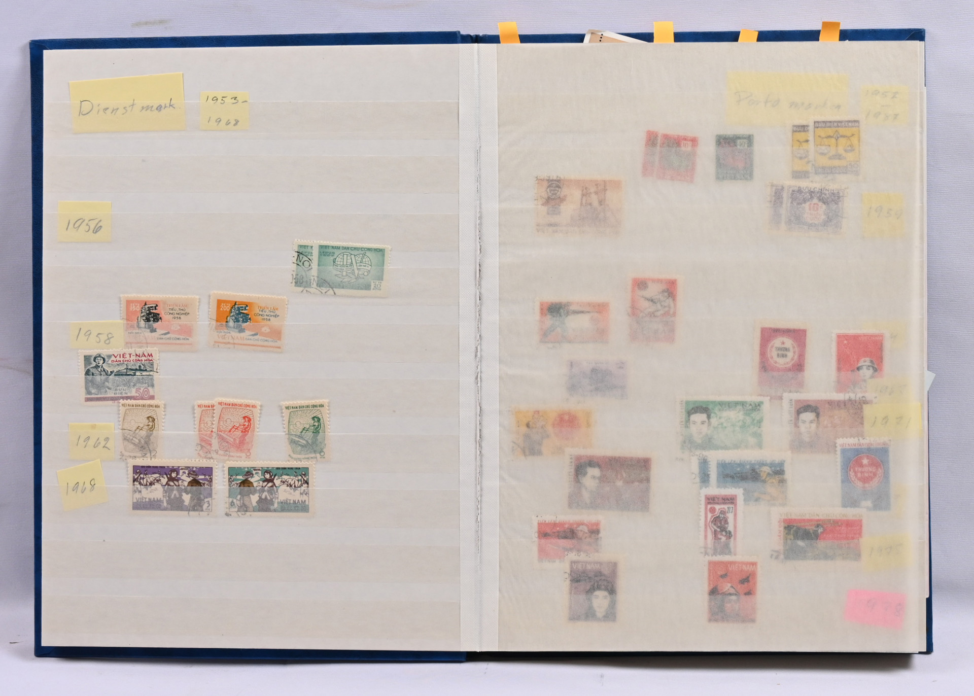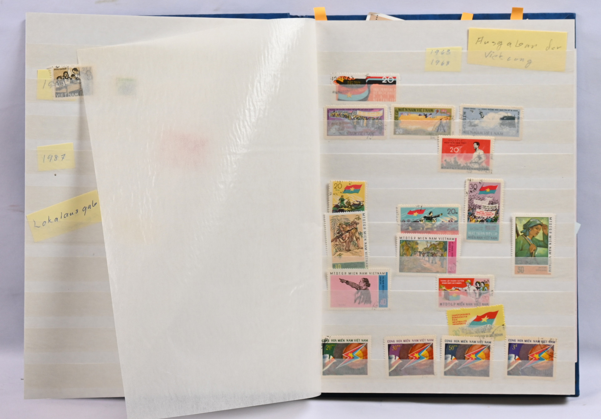 1955 - 2016 leimattu kokoelma /varastoerä kolmessa säiliökirjassa. Myös virka- ja lunastusmerkkejä, Vietkongin julkaisuja ja muuta ”back of the book” -materiaalia. Runsaasti pienoisarkkeja ym