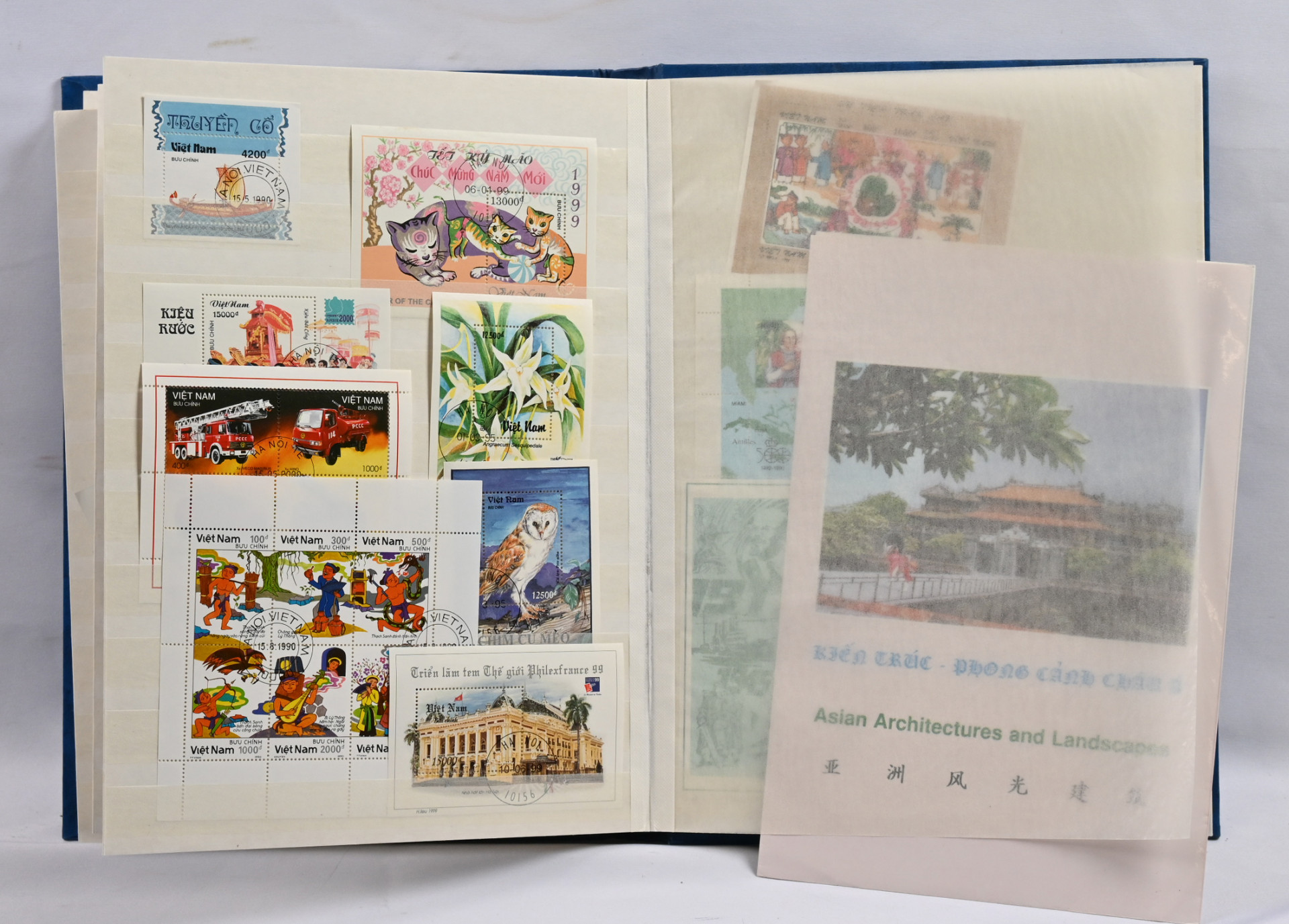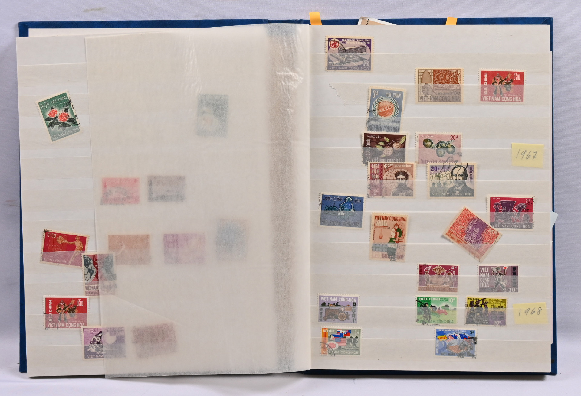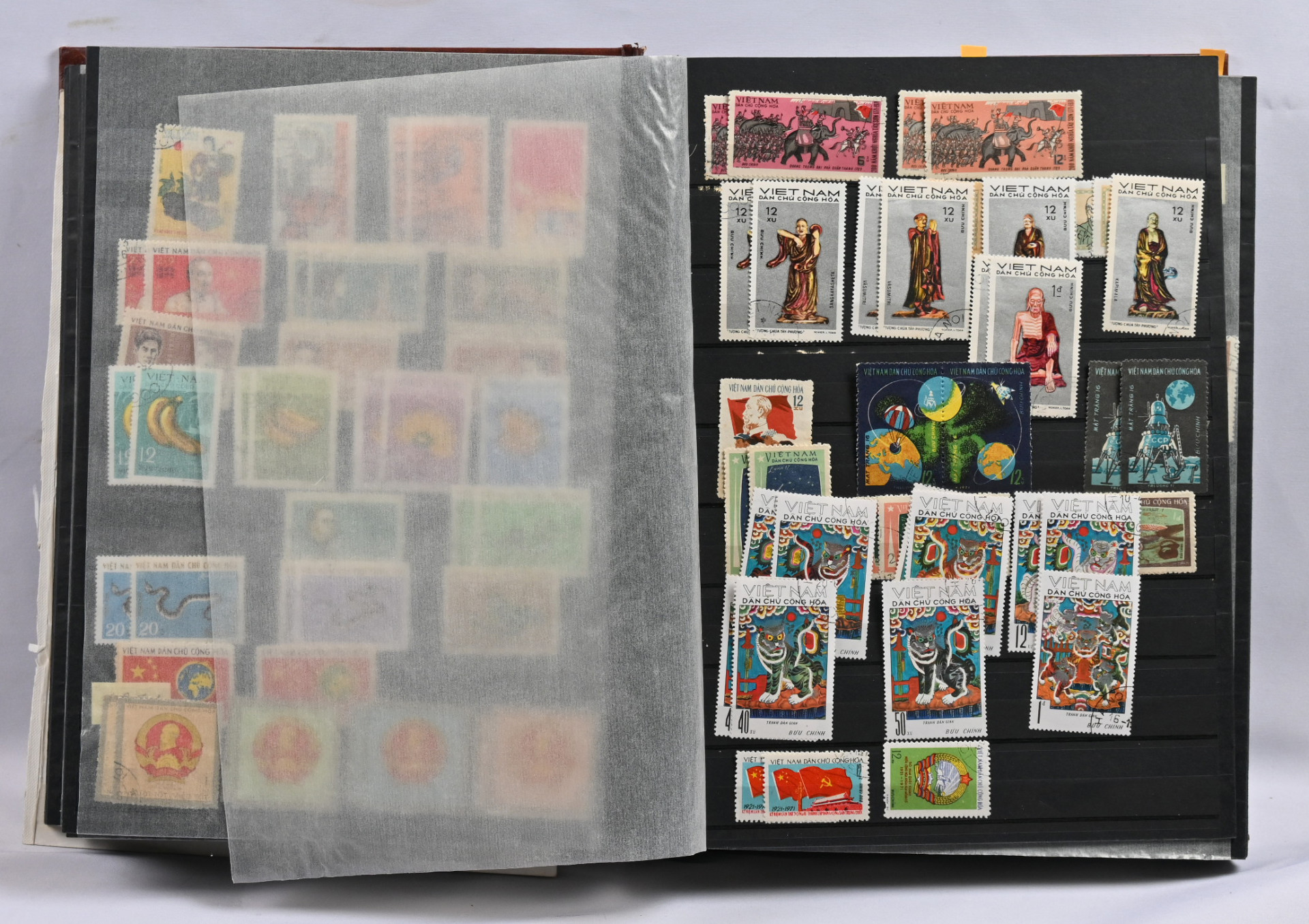 1955 - 2016 leimattu kokoelma /varastoerä kolmessa säiliökirjassa. Myös virka- ja lunastusmerkkejä, Vietkongin julkaisuja ja muuta ”back of the book” -materiaalia. Runsaasti pienoisarkkeja ym