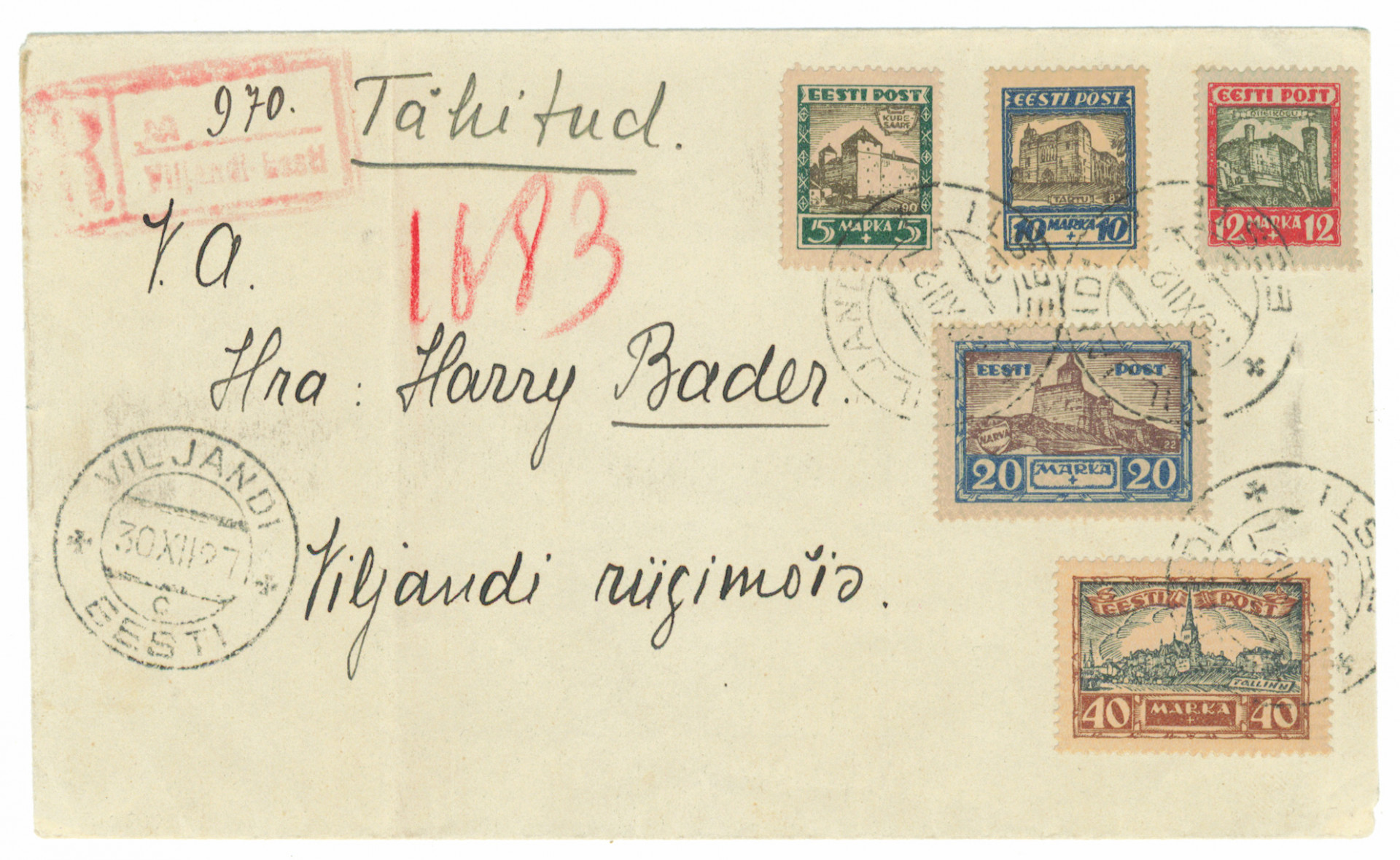 1927 Kirjattu kirje 30.XII.27, frankeerattu koko kaupunkinäkymiä-sarjalla Mi 63-67, HARVINAINEN