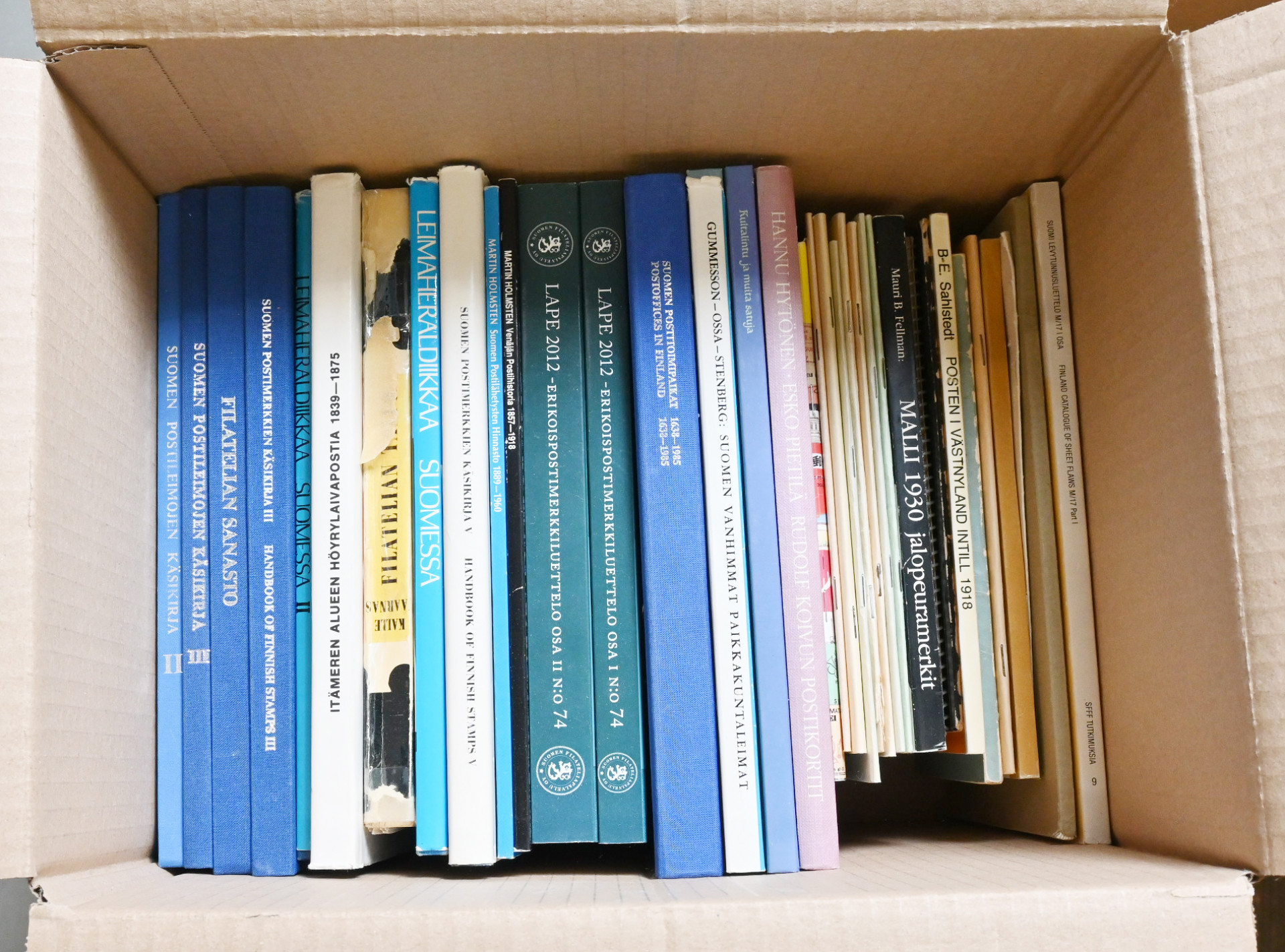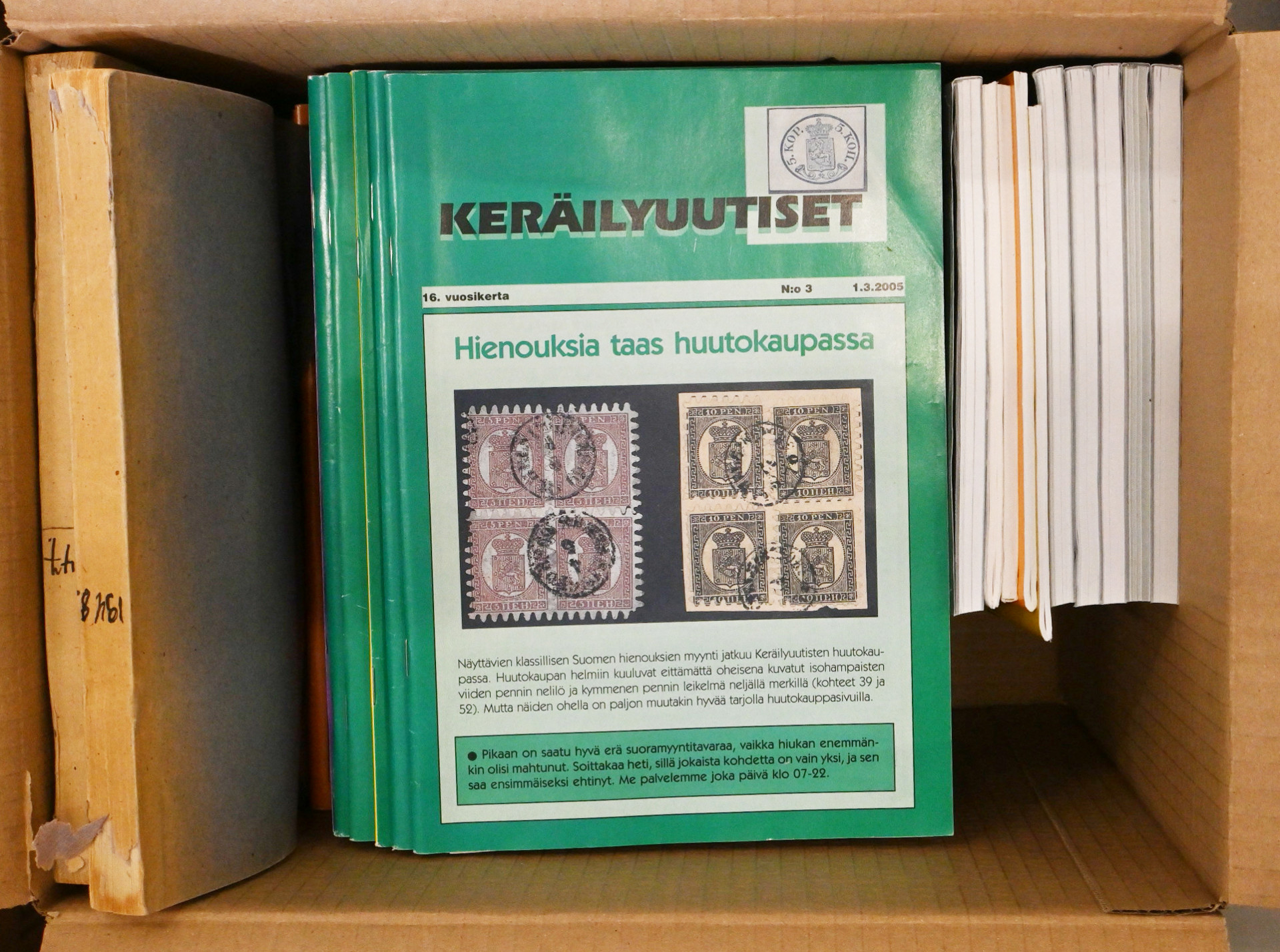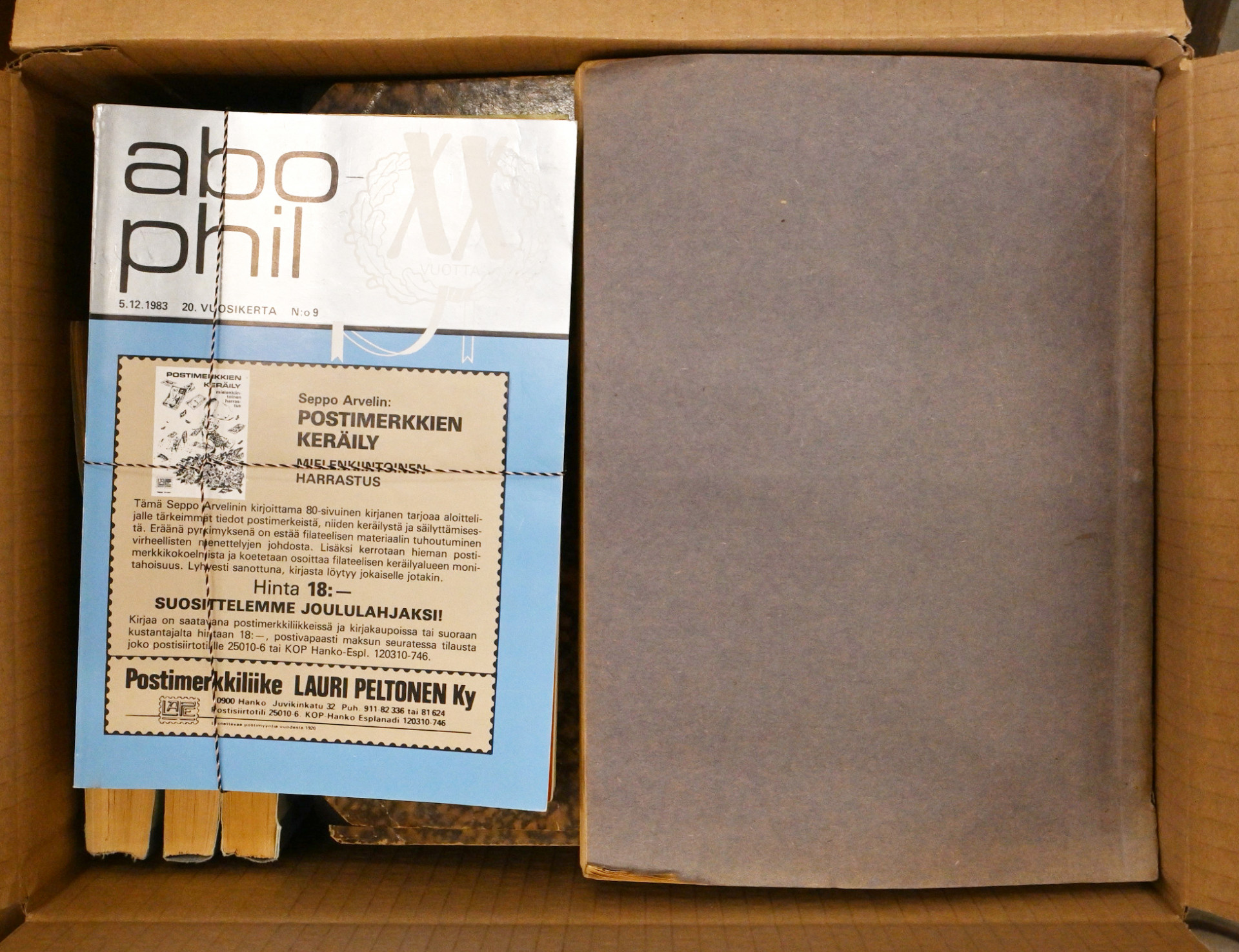 Keräilijän kirjastosta iso ja monipuolinen erä filateelista kirjallisuutta sekä alan lehtiä. Yhteensä n. 270 KG!