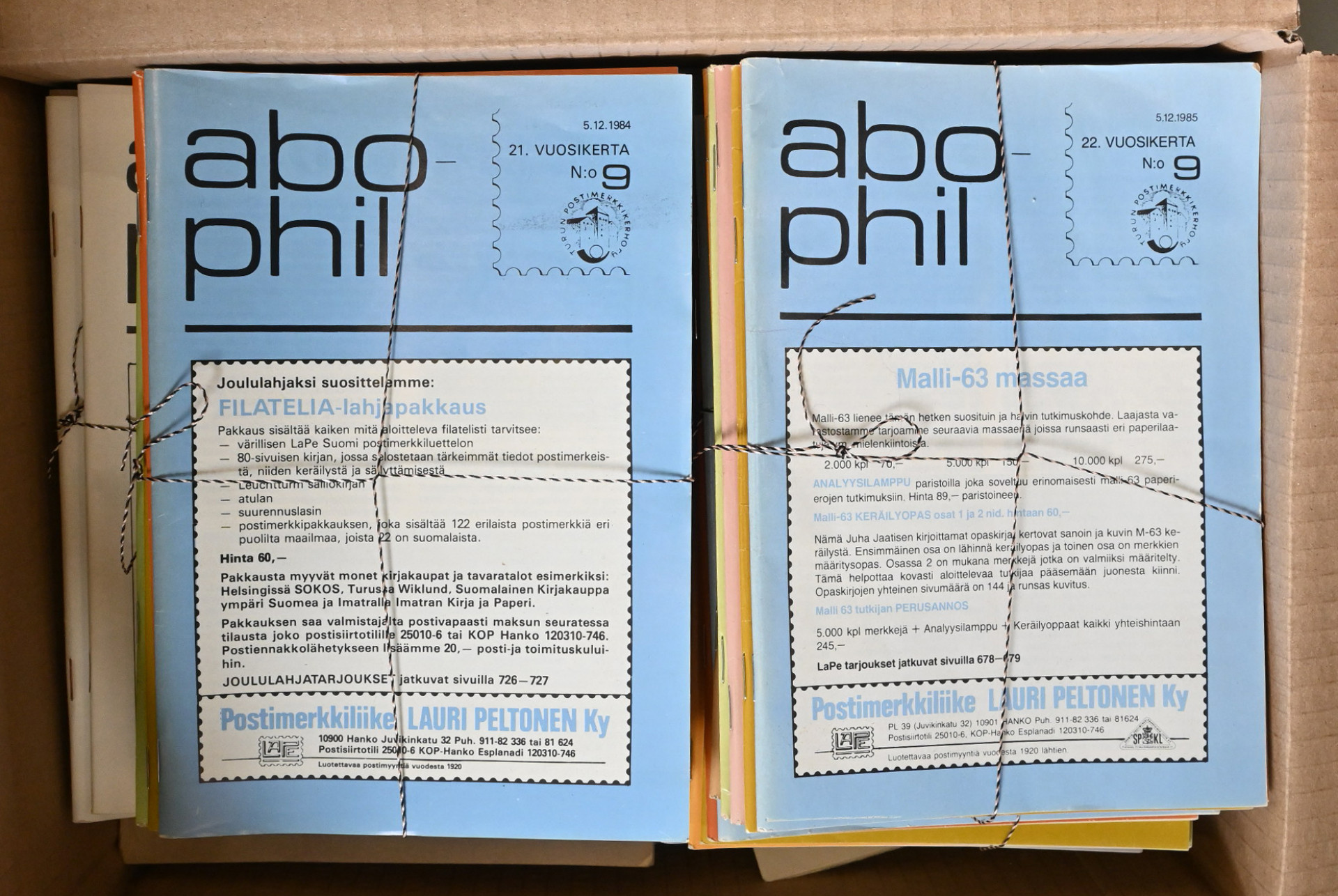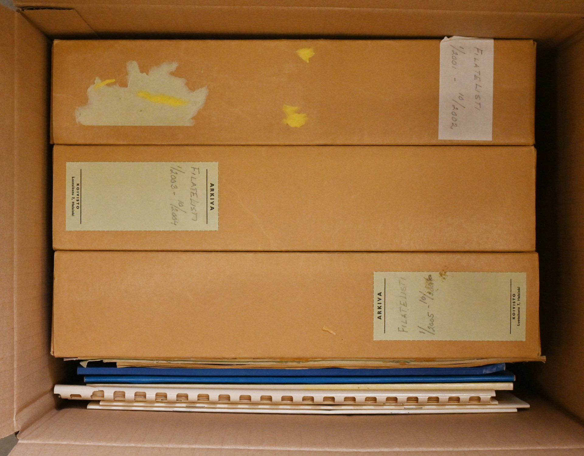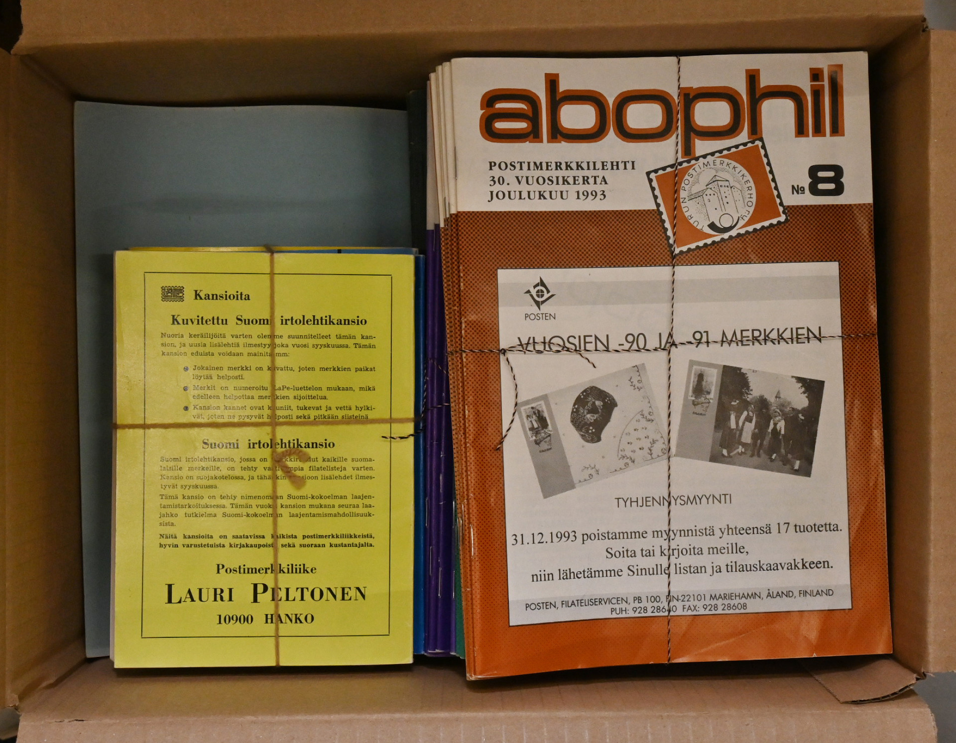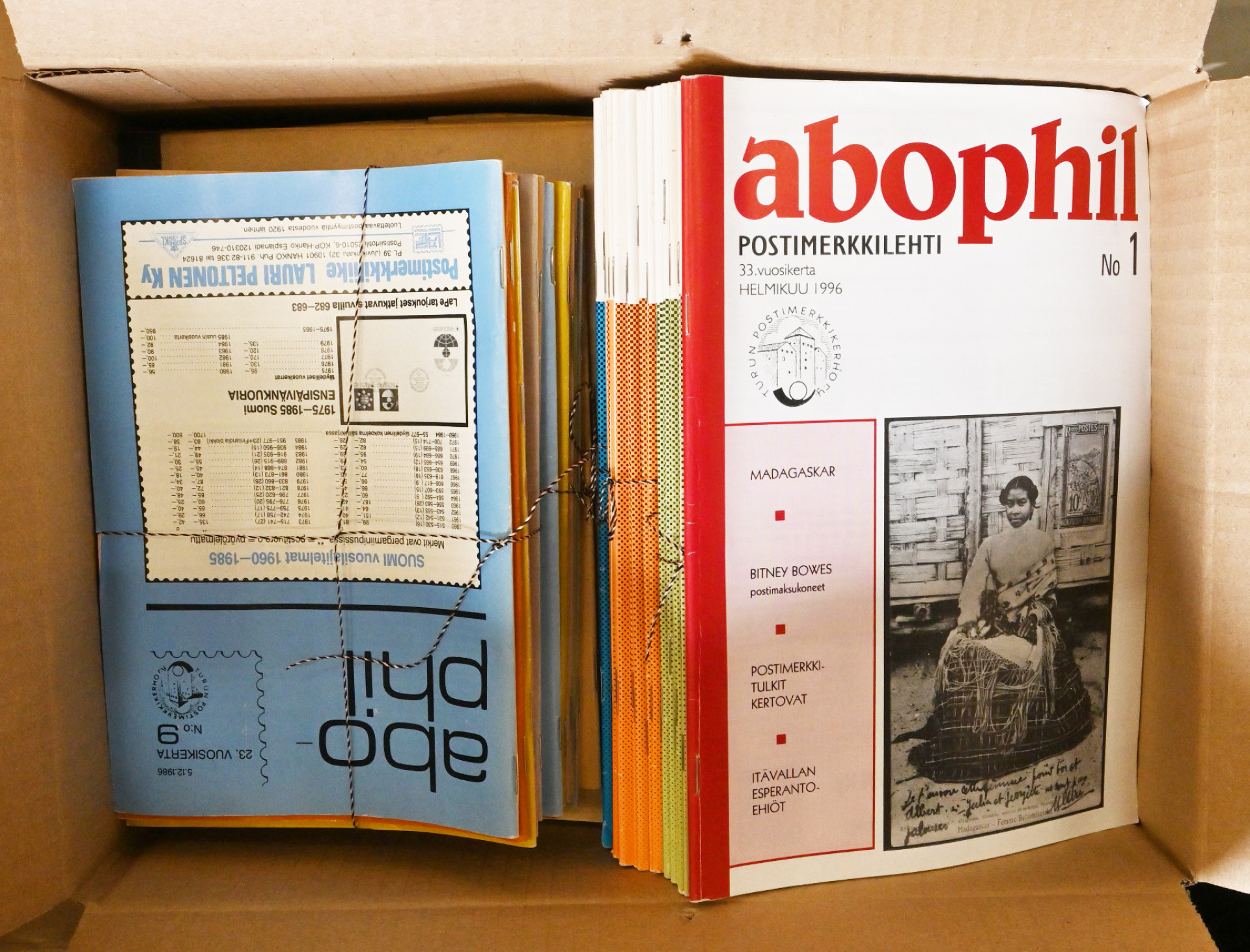 Keräilijän kirjastosta iso ja monipuolinen erä filateelista kirjallisuutta sekä alan lehtiä. Yhteensä n. 270 KG!