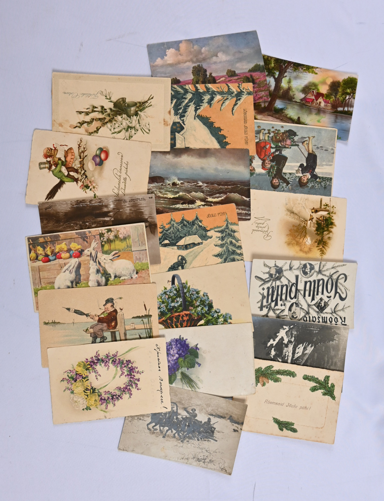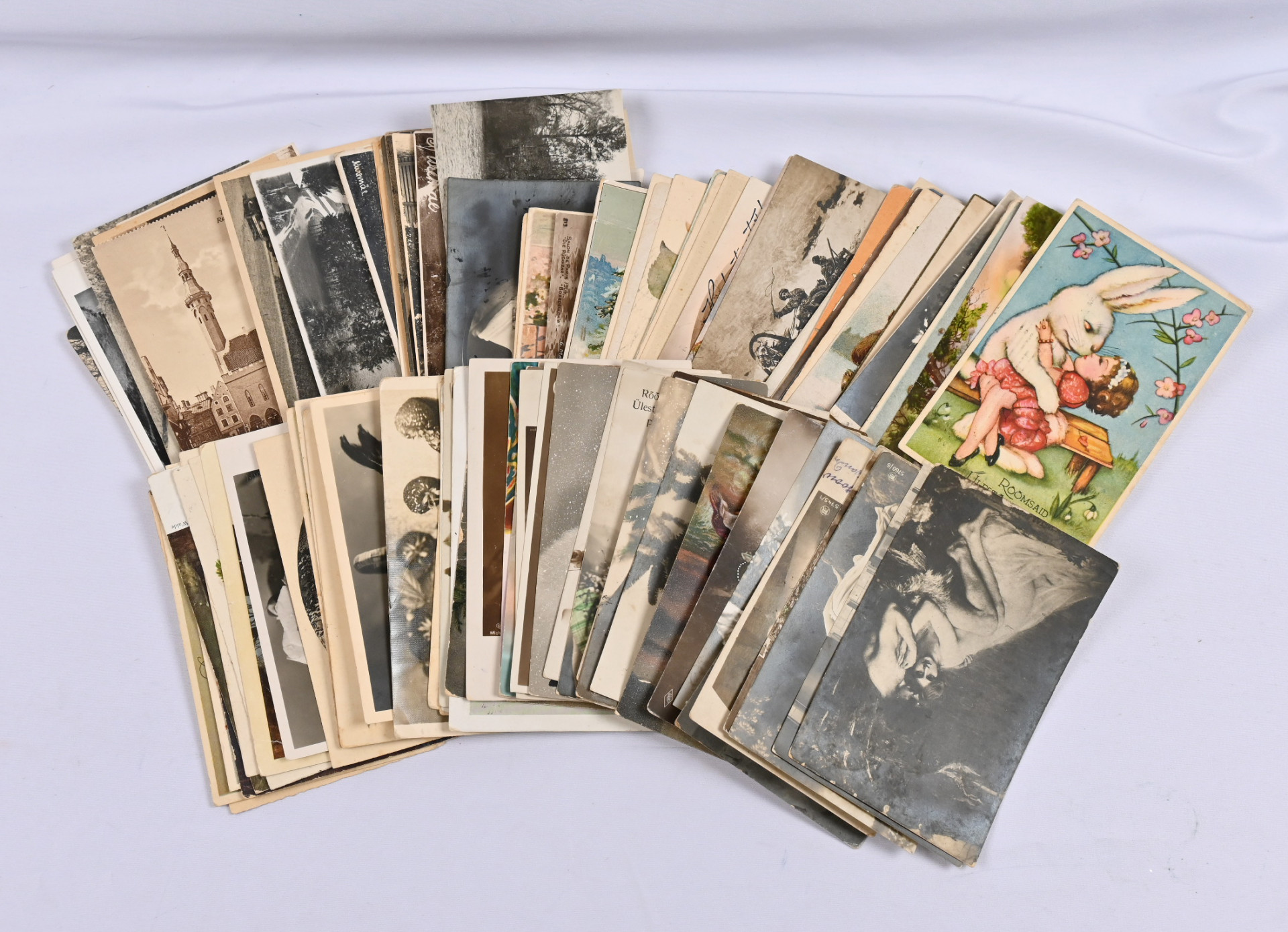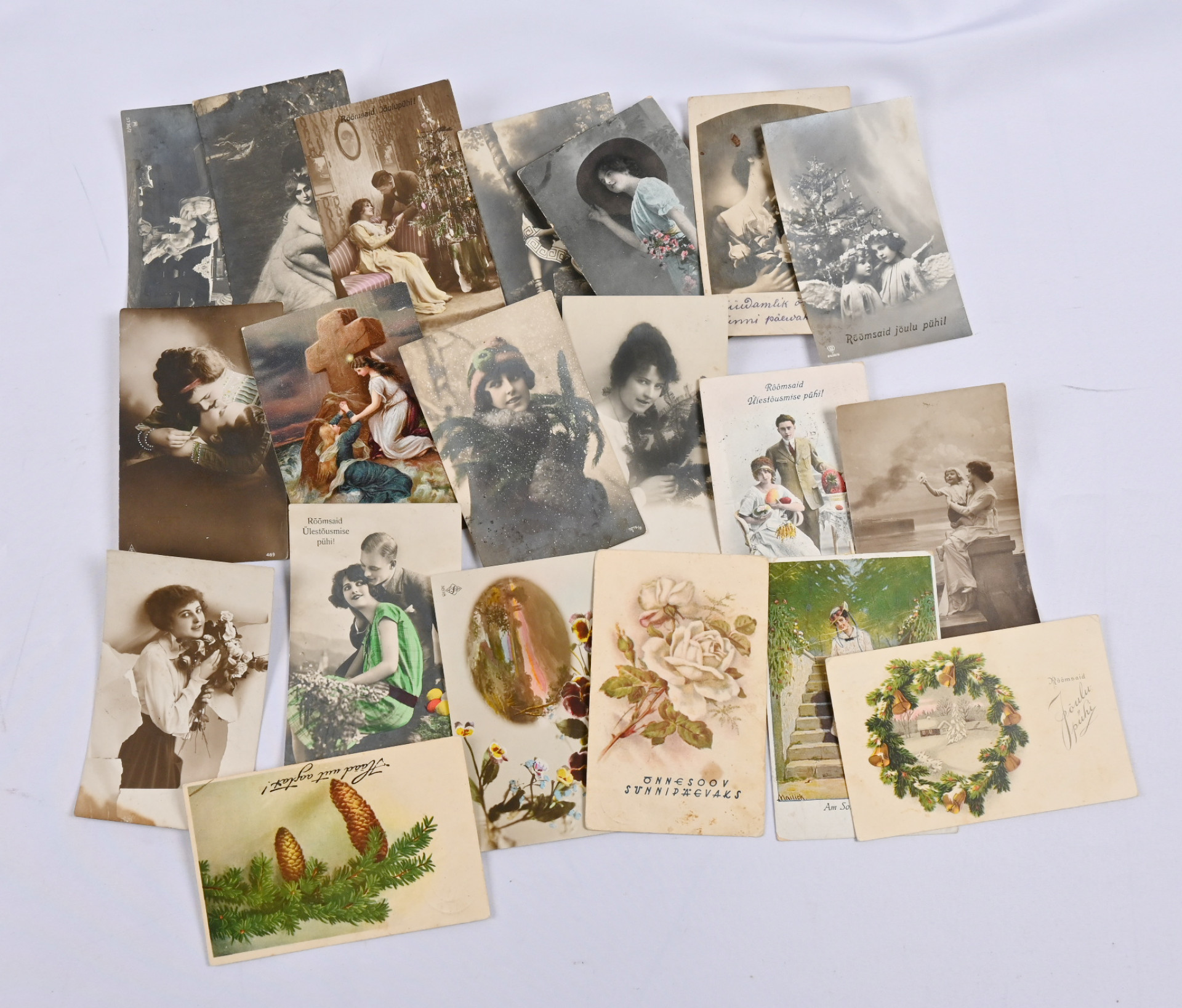 1919 alkaen sekalainen erä postikortteja, lähes 90 kulkenutta ja noin 30 käyttämätöntä korttia. Kiintoisia leimauksia sekä kauniita kortteja, osin vaihteleva laatu