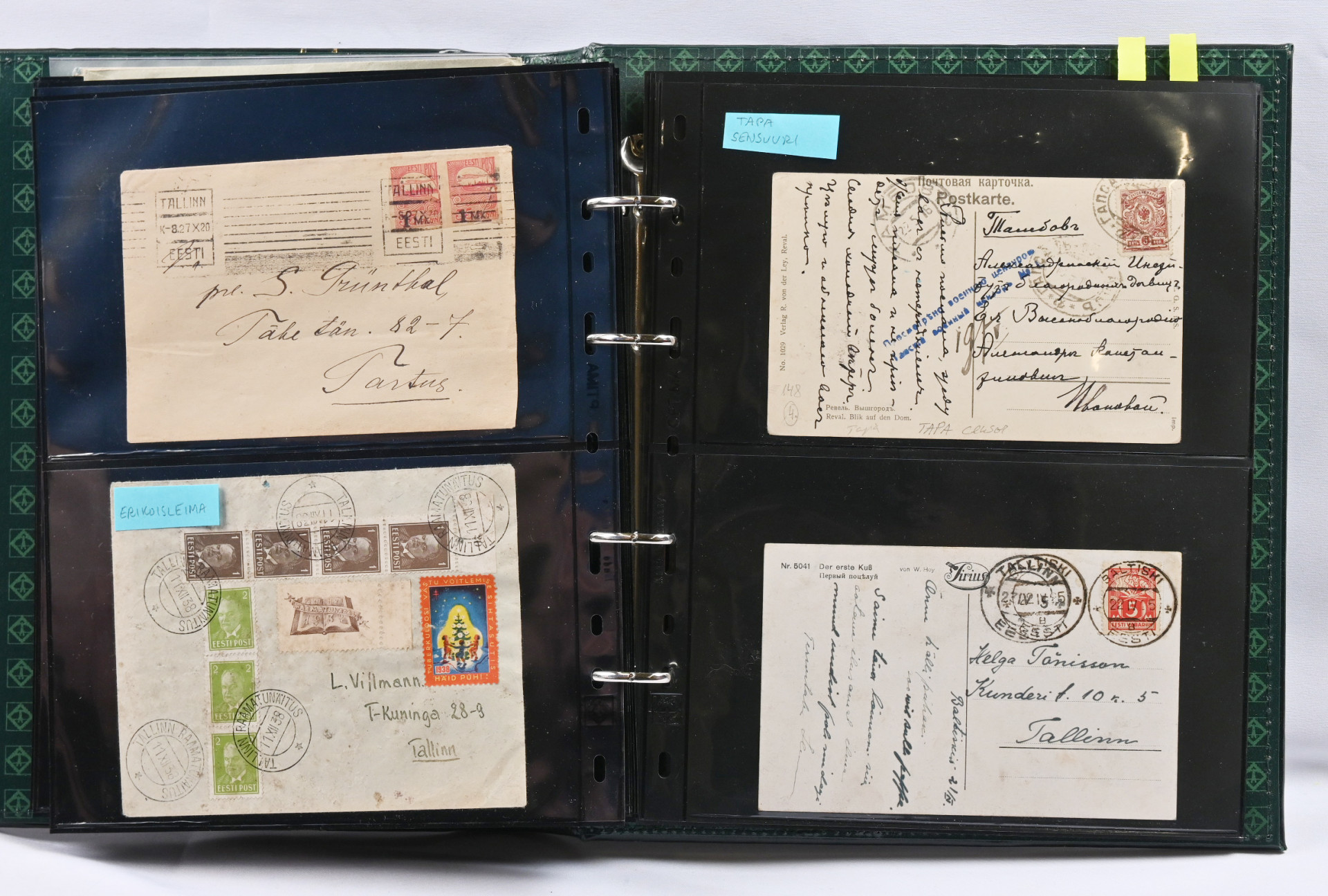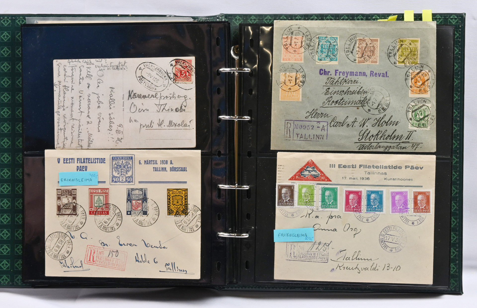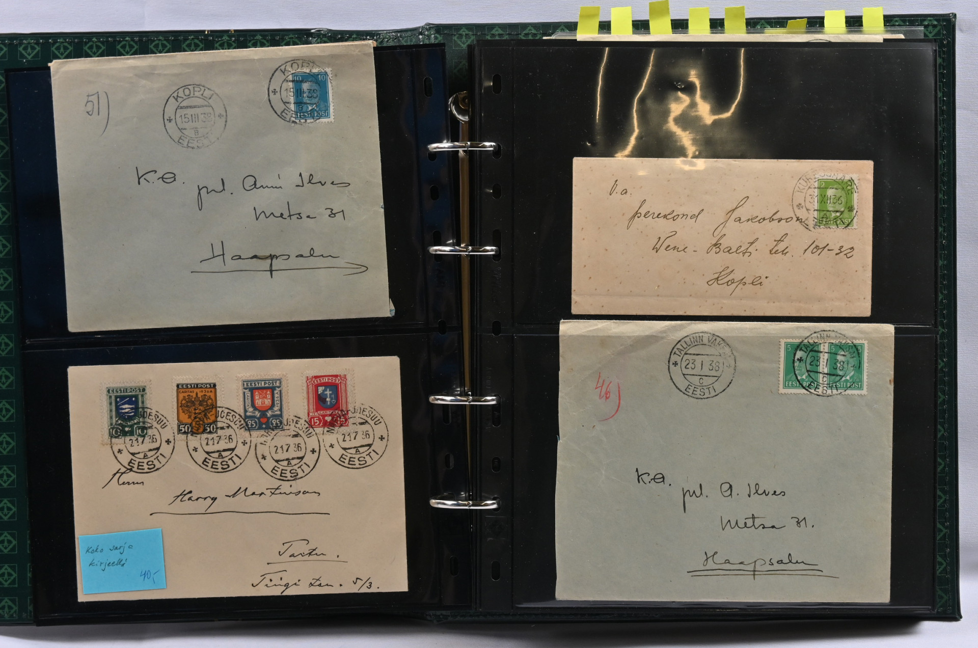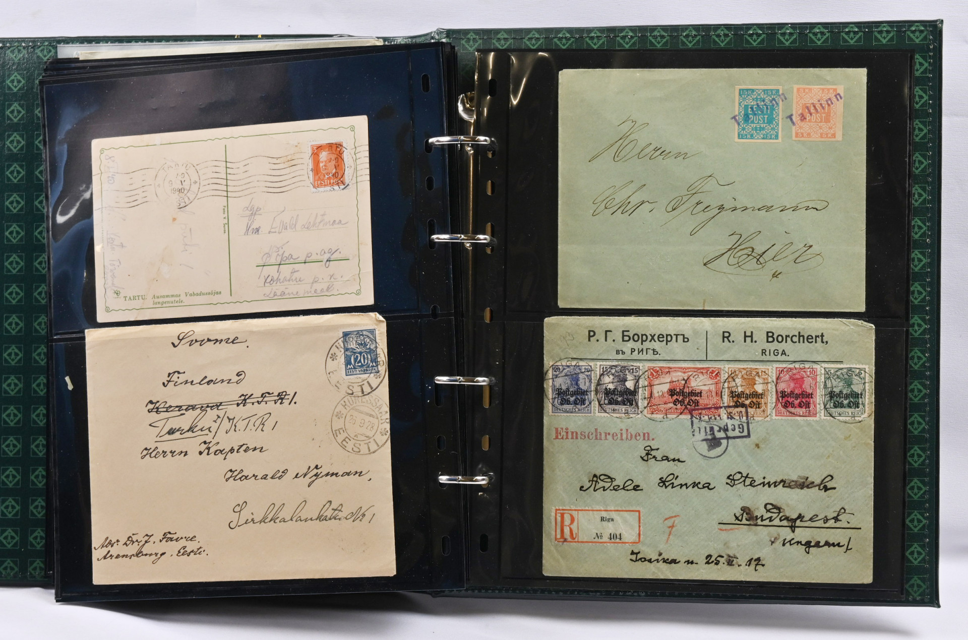 1916 - 1947 erä noin 50 kappaletta postilähetyksiä kansiossa. Paljon mielenkiintoista, lentopostia, Caritas-sarjoja, ehiöitä, miehitysjulkaisuja, leimoja jne. Joukossa joitakin tekeleitä, mutta myös takuuleimattuja kohteita. Tutki tarkkaan!.