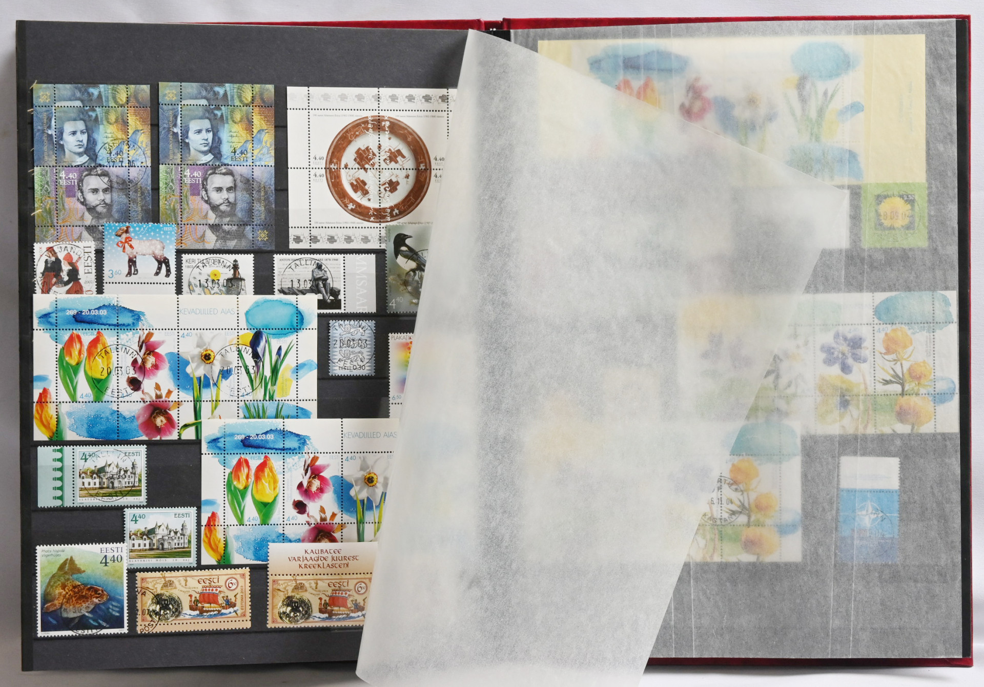1919 - 2011 pieni **/*/o kokoelma säiliökirjassa. Mm. Mi 40, 54, 87-89 *, 1938 Caritas-pienoisarkki o, loistoleimaista uutta ym.