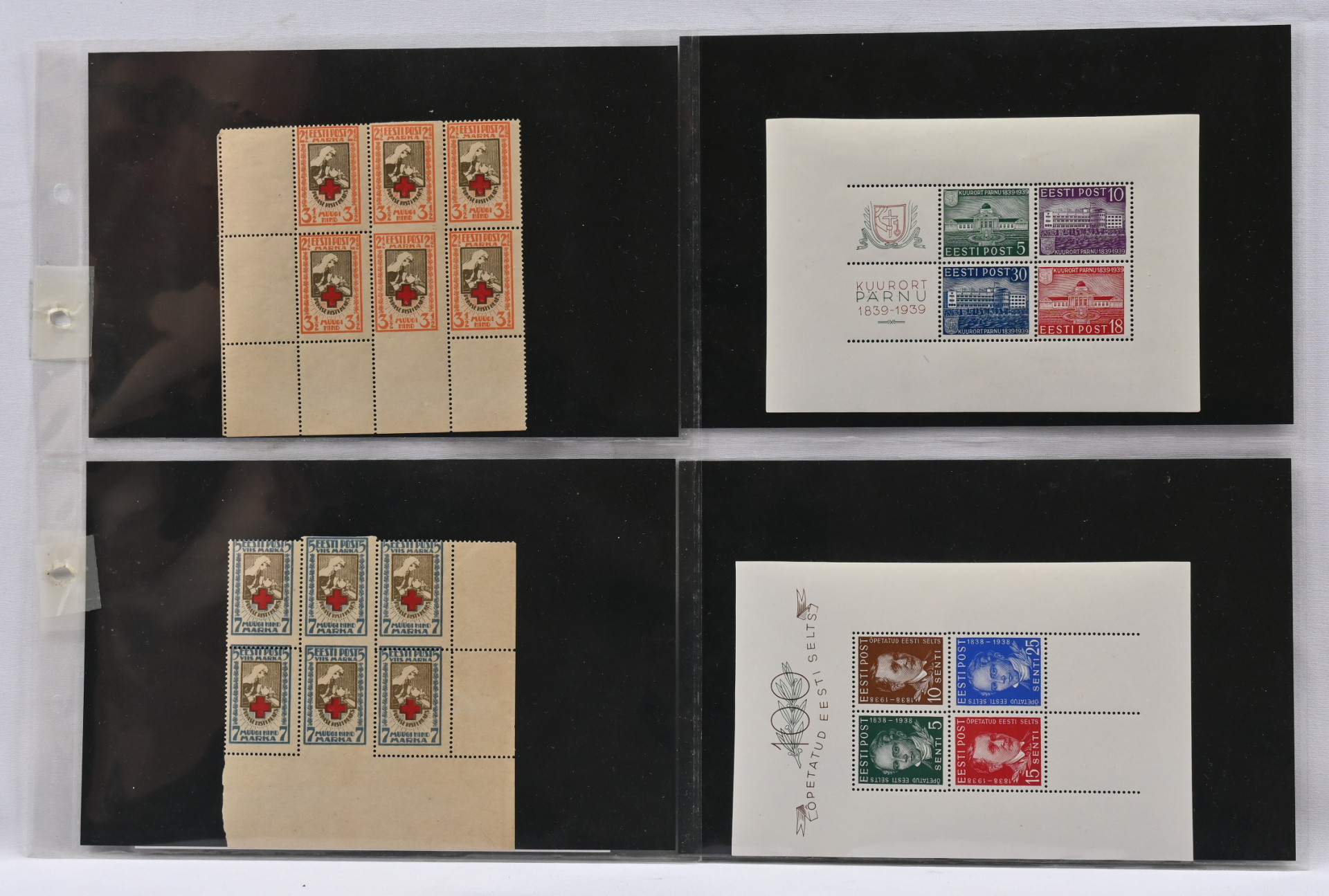 1921 - 1939 pieni erä parempia / keskihintaisia kohteita, mm. Punainen Risti Mi 29-30 ** kuusilot, joissa vaakasuoraan hammastamattomat parit, Punainen Risti Mi 90-93 ** sarja, Pirita Mi 120-123 ** nelilöt, pienoisarkit Mi BL1, 2 ja 4 ym.