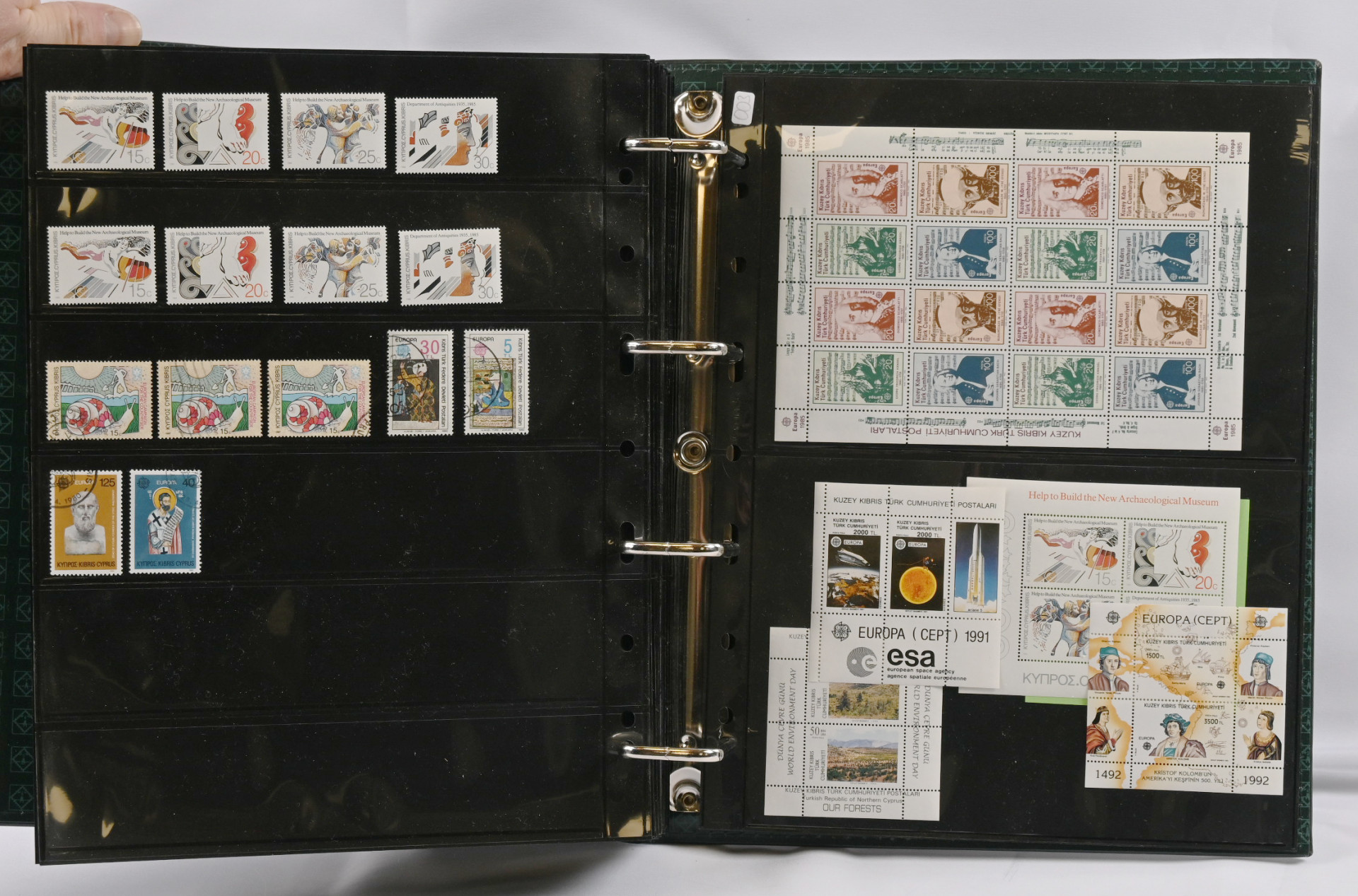 Euroopan maiden merkkejä iso kokoelma / varastoerä säilytyslehdillä kahdessa paksussa kansiossa koteloilla sekä kolmannessa albumissa. Monia eri maita, mm. Englantia, Irlantia, Kanaalisaaria, Belgiaa, Hollantia, Sveitsiä, Portugalia, Monacoa, Ruotsia, Tanskaa vuosikirja 2009 ym., Grönlantia, Espanjaa, Turkkia, Kreikkaa jne. Paljon pienoisarkkeja ym.