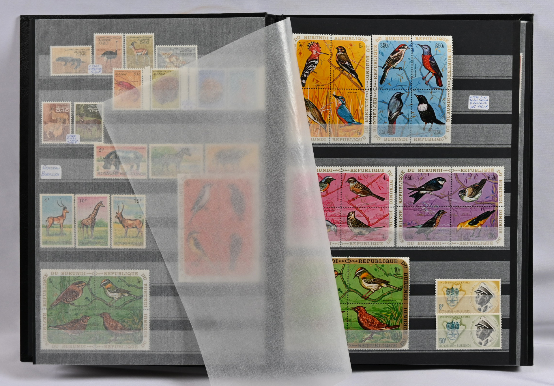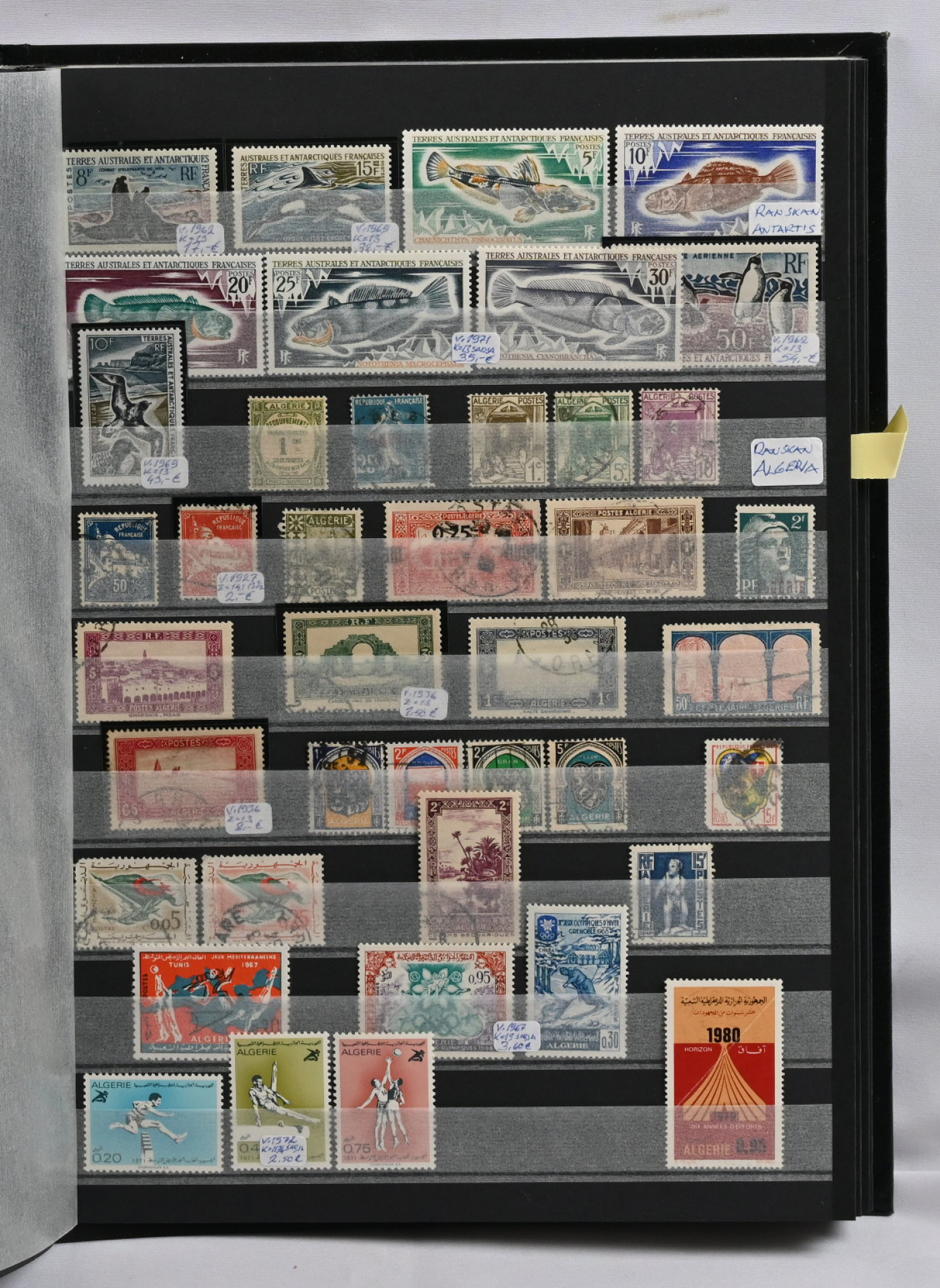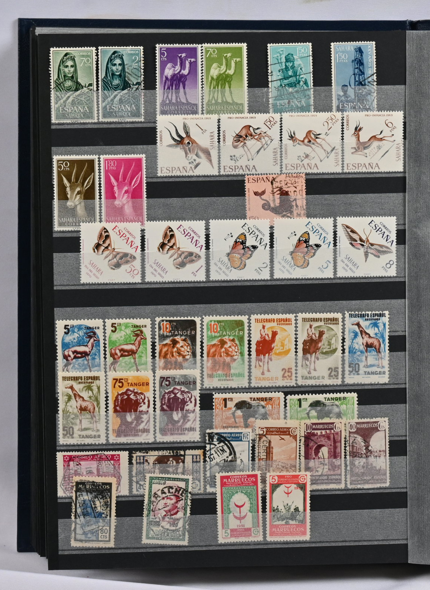 Ranska, Monaco, Espanja ja Portugali & siirtomaat, kokoelmaerä viidessä säiliökirjassa. Vanhaa ja uutta, pääasiassa leimattua.