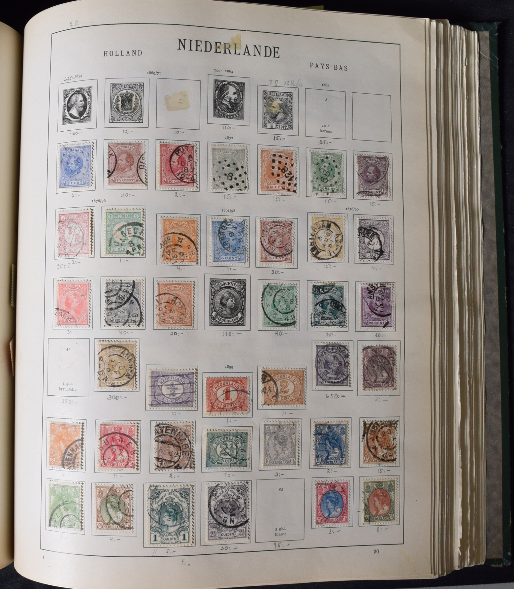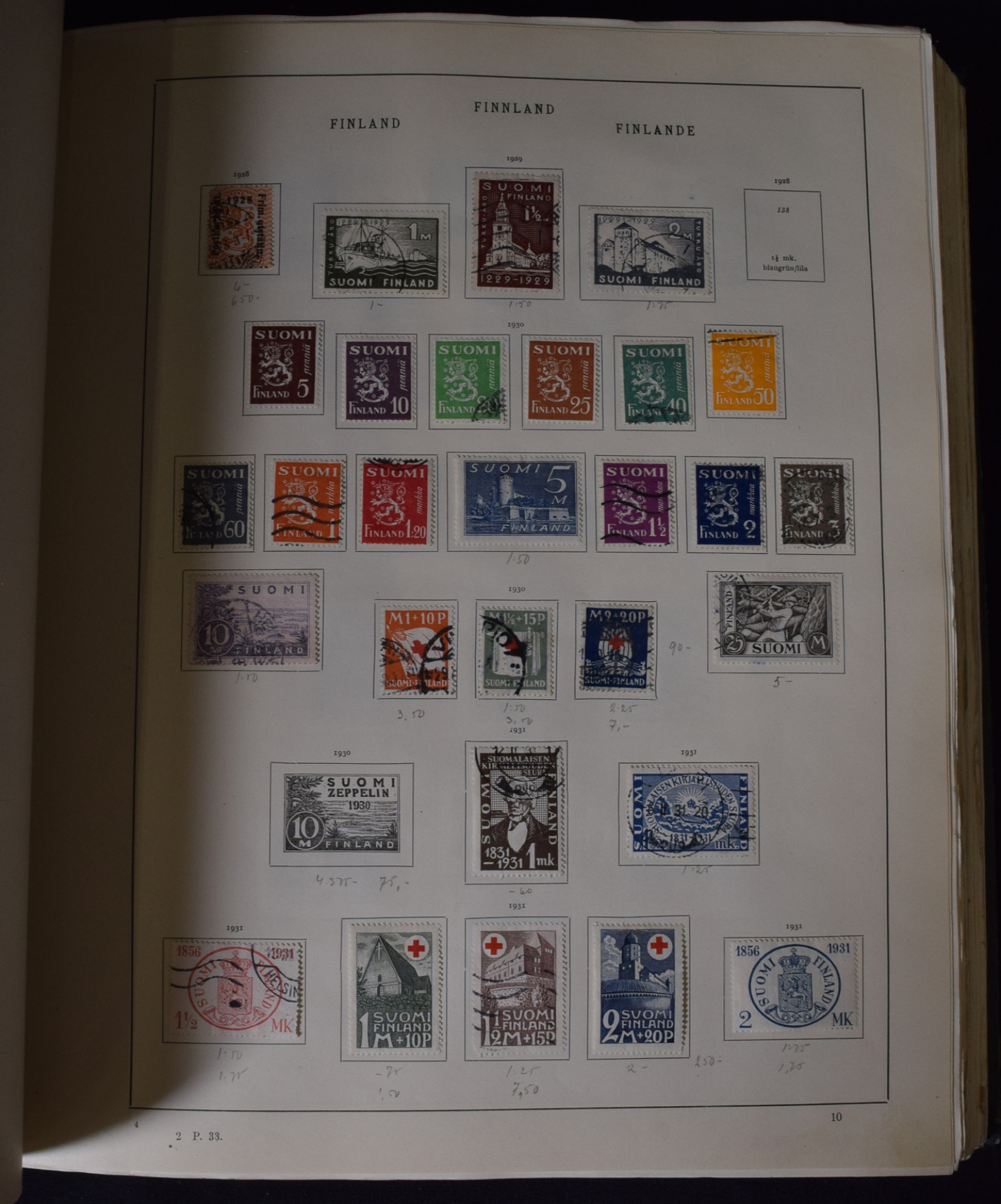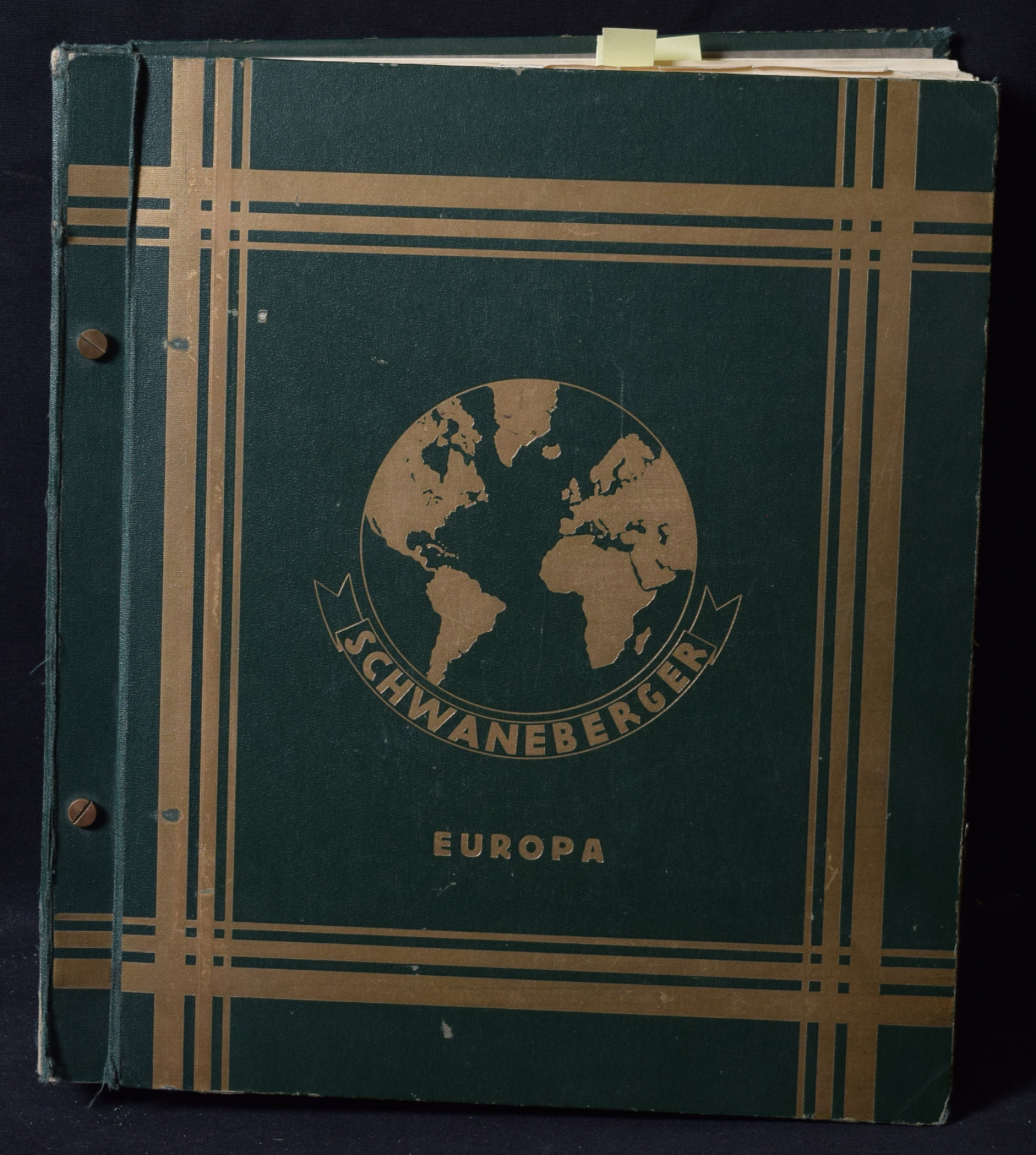 Schwanebergerin Eurooppa-kansio vuodelta 1934, runsaasti merkkejä mukana. Osa merkeistä poistettu ja pieni osa poistettu leikkaamalla sivusta pala pois