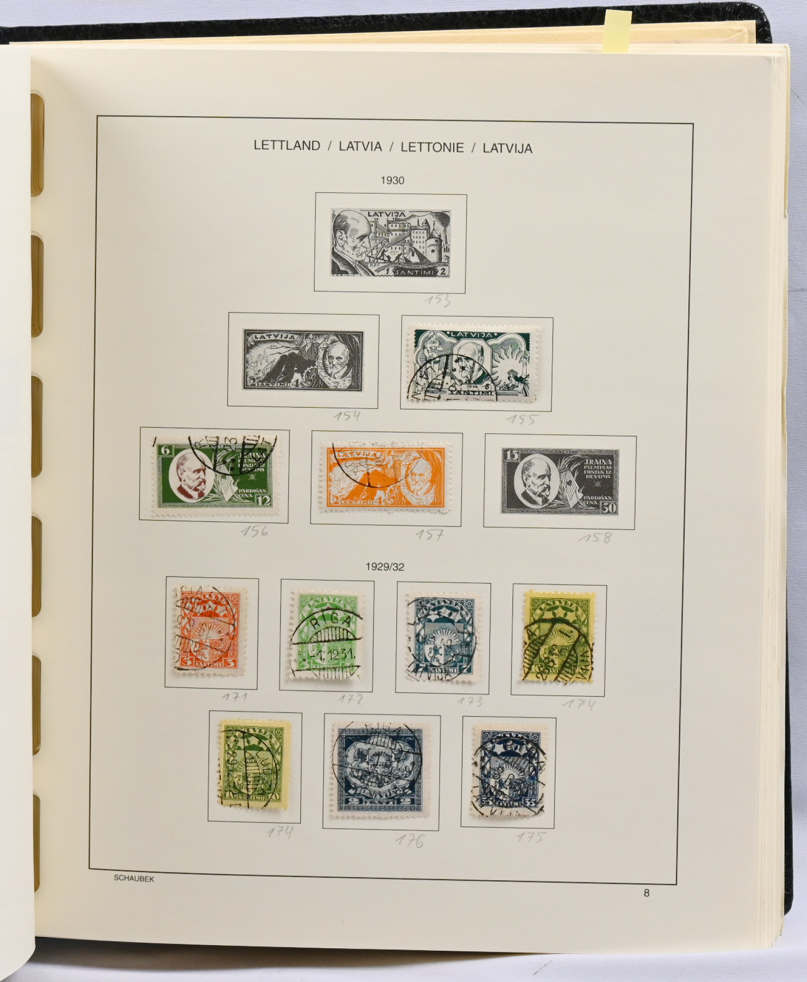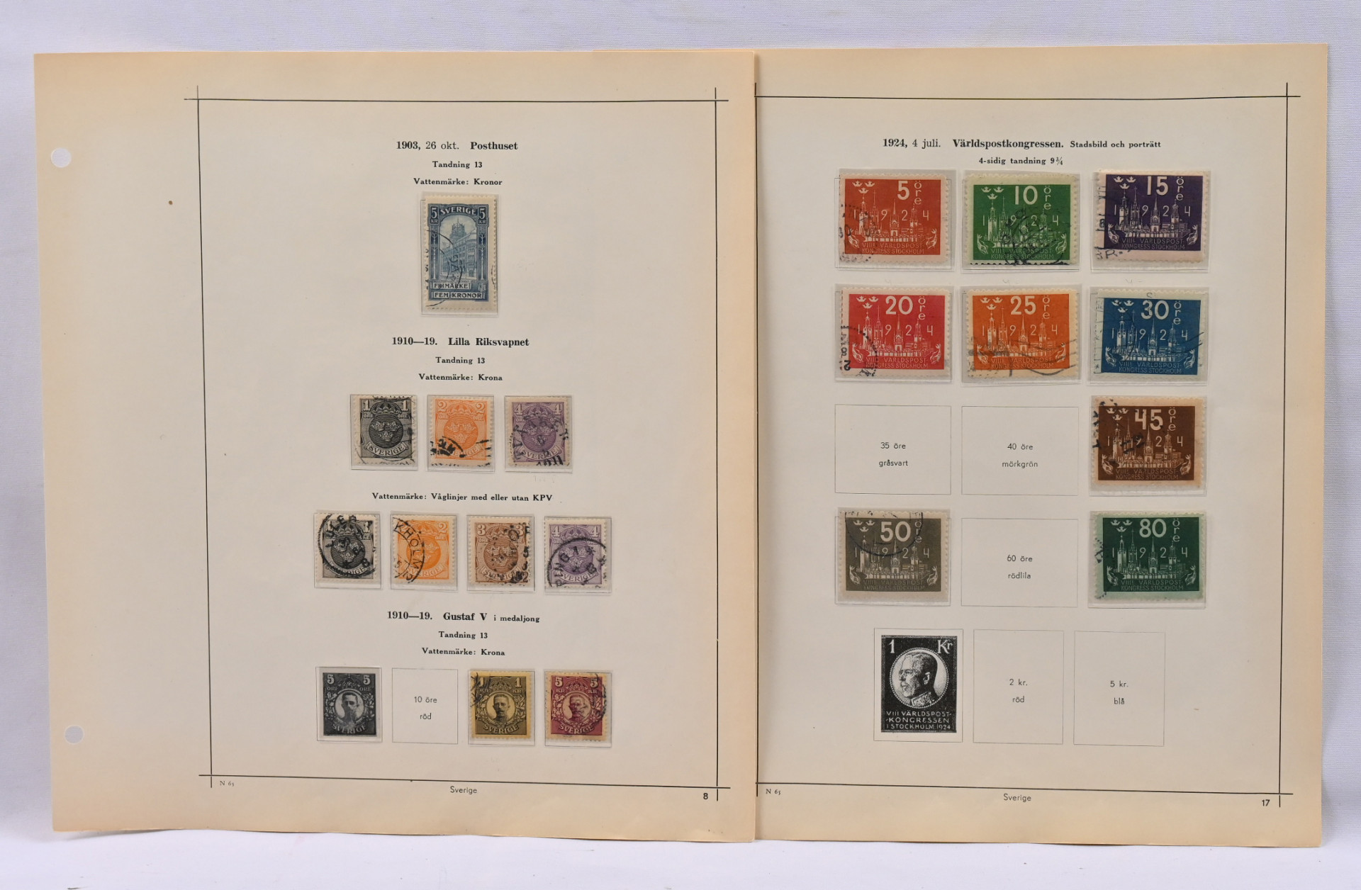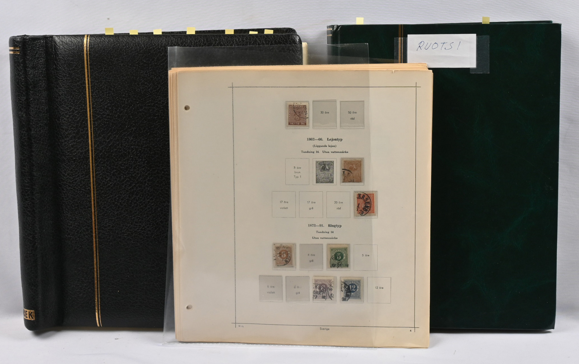 Viro ja Latvia 1918 - n. 1938 kokoelmat albumissa, Ruotsi 1858 - 1952 kokoelma lehdillä sekä isompi varastoerä säiliökirjassa 1858 - 1955 sisältäen mm. 1924 Postikongressimerkkejä