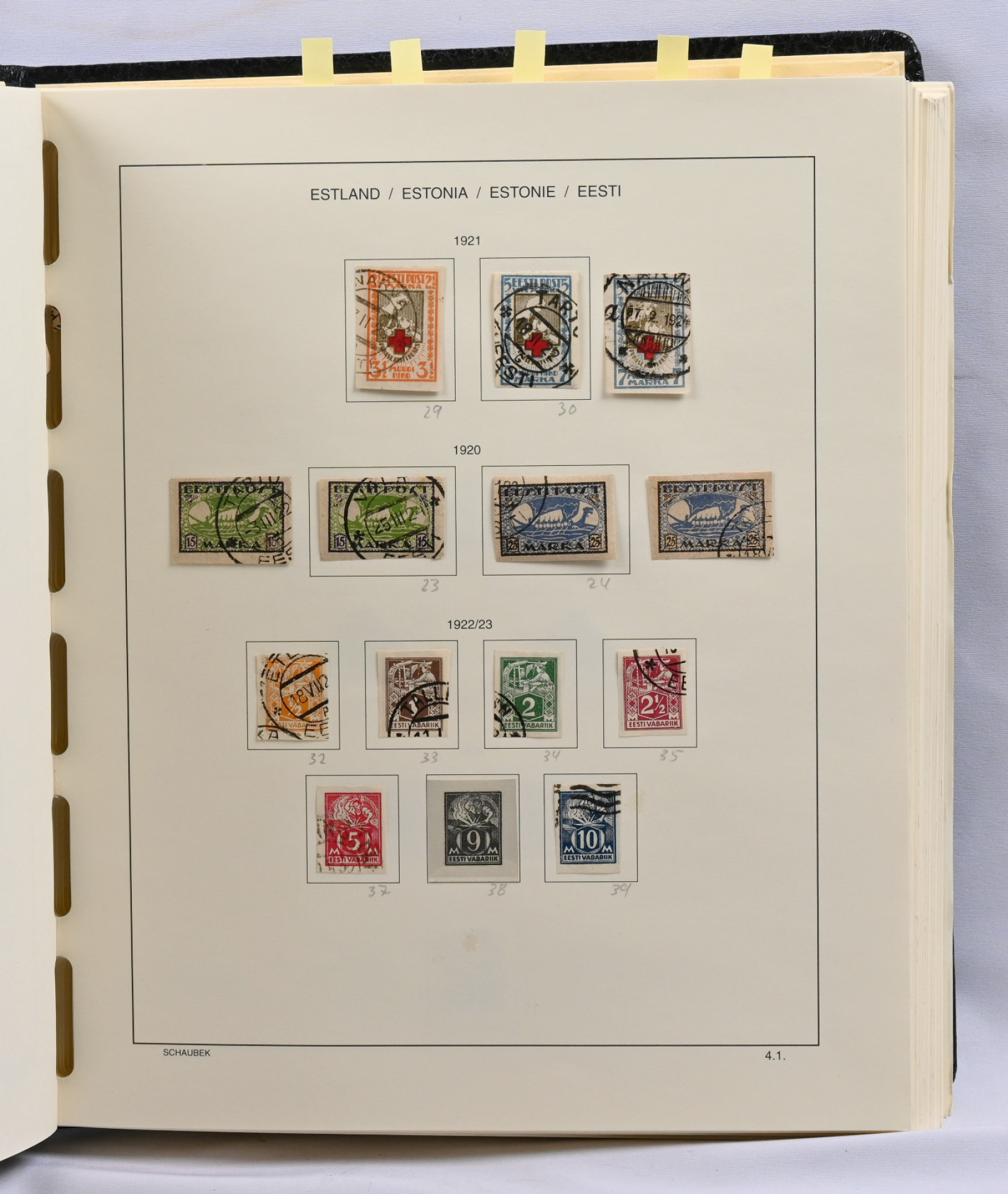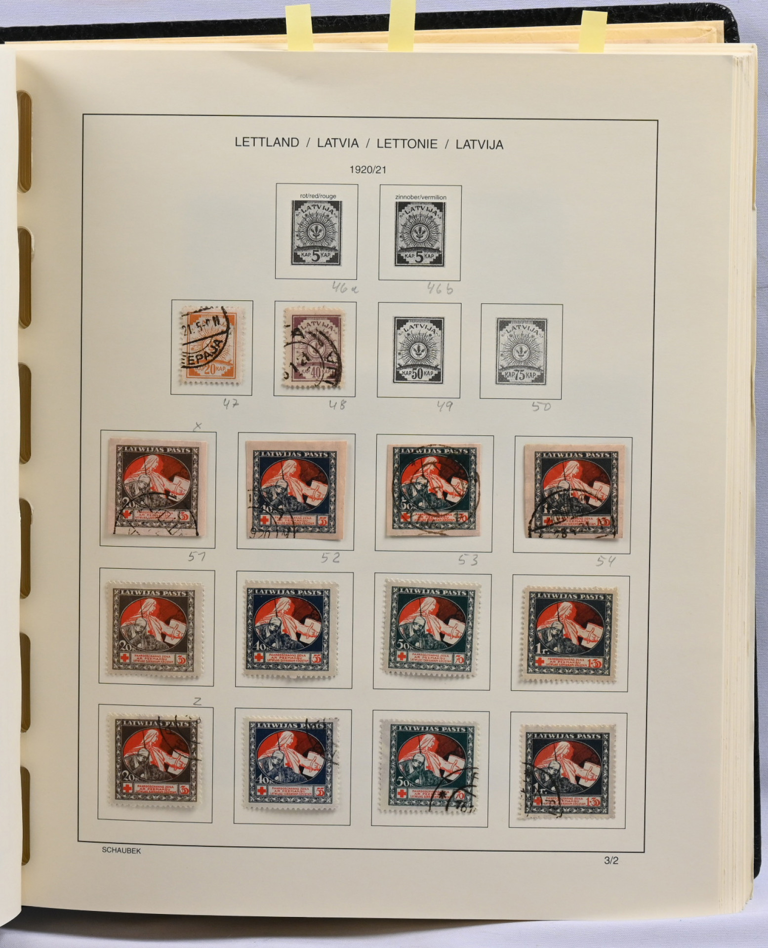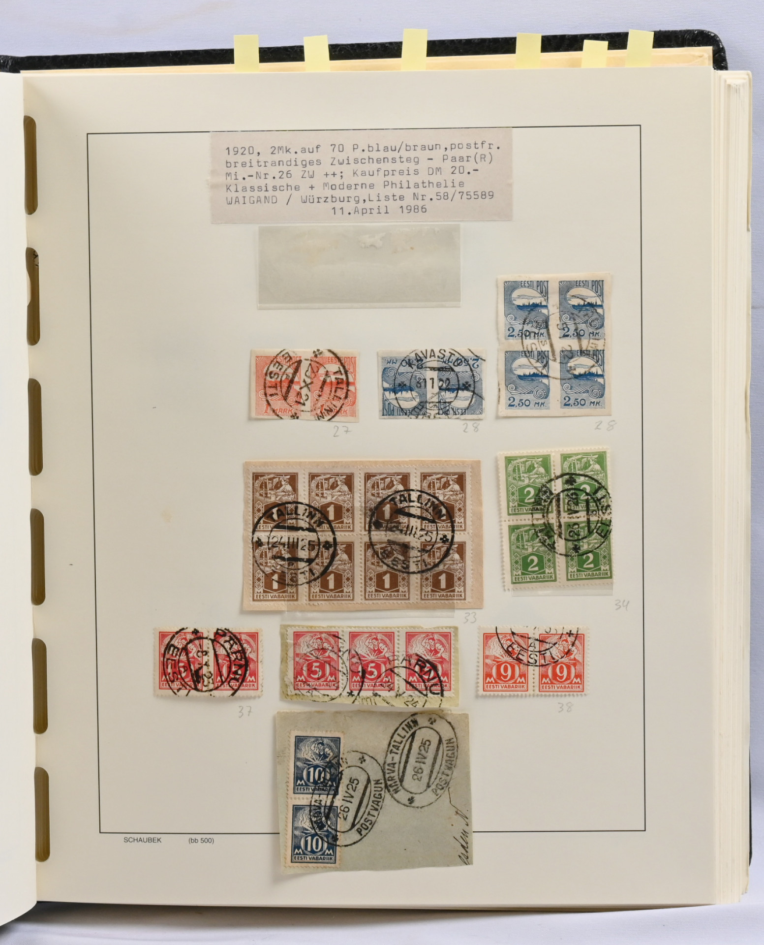 Viro ja Latvia 1918 - n. 1938 kokoelmat albumissa, Ruotsi 1858 - 1952 kokoelma lehdillä sekä isompi varastoerä säiliökirjassa 1858 - 1955 sisältäen mm. 1924 Postikongressimerkkejä